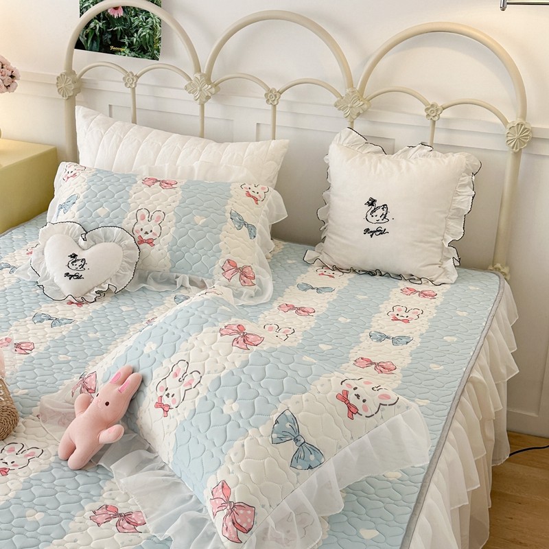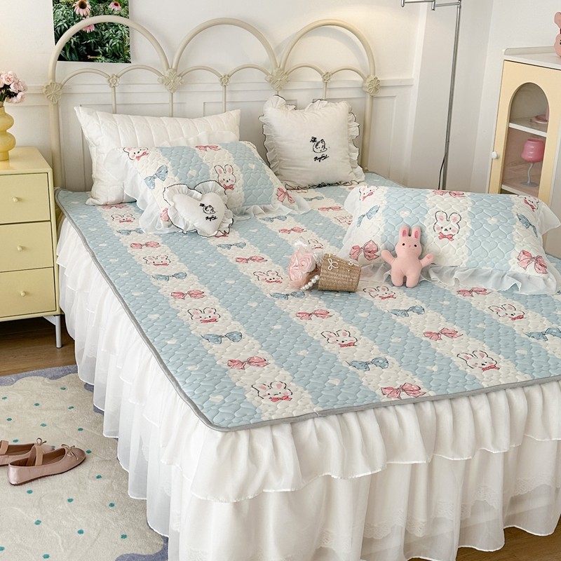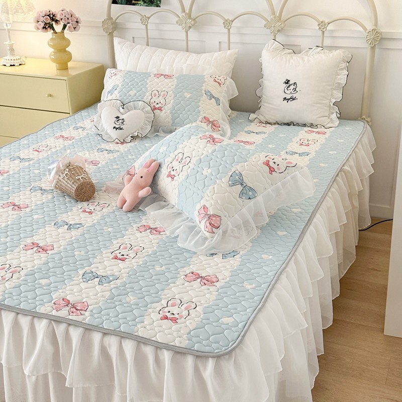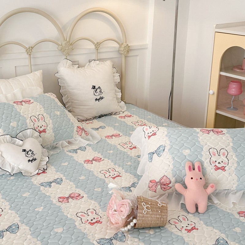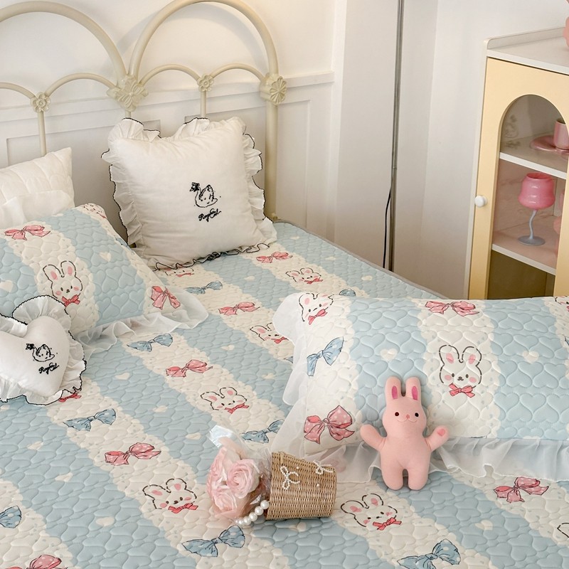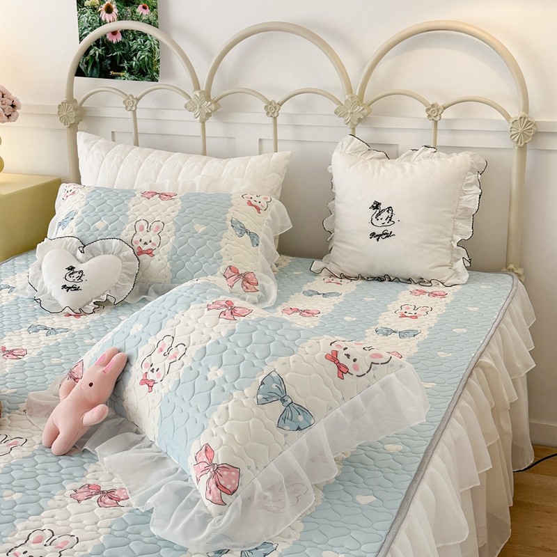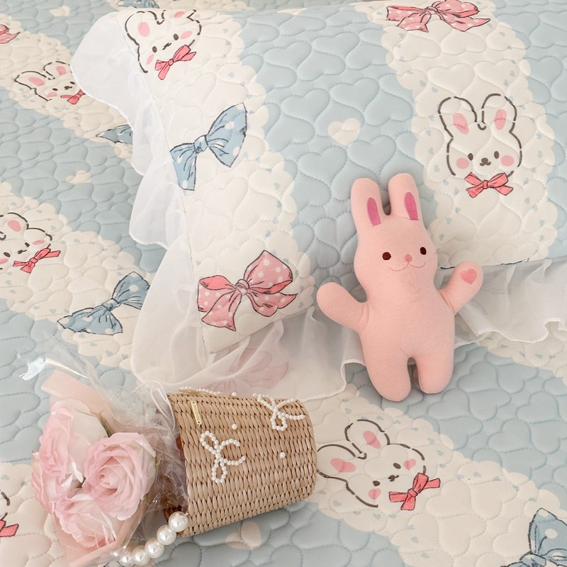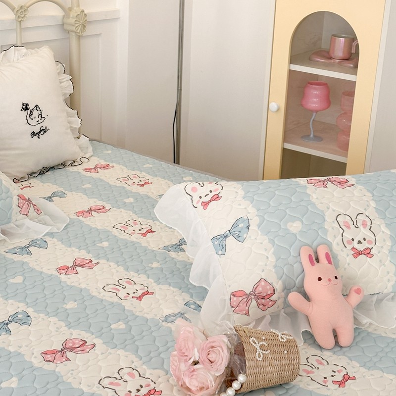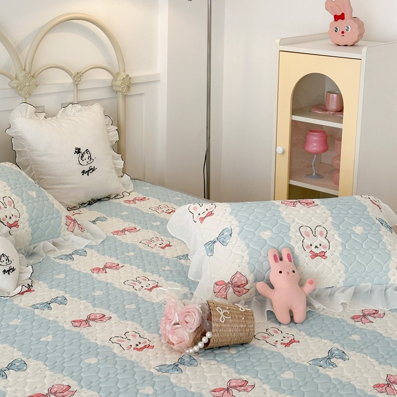 昔可 2023新款第二批双层床裙乳胶三件套 可爱小清新风 爱心蝴蝶结兔