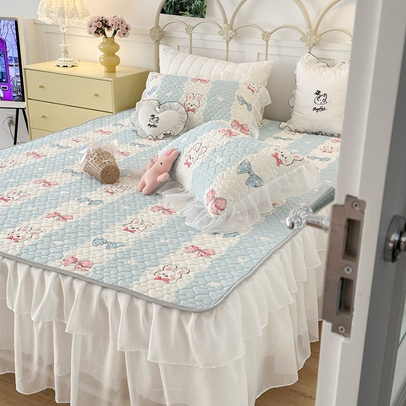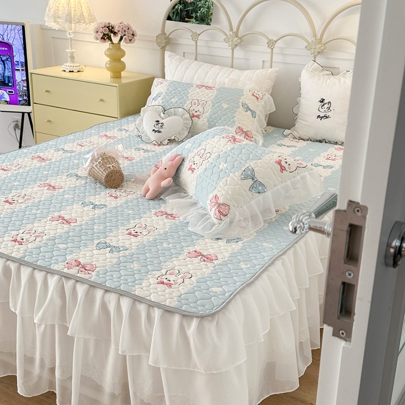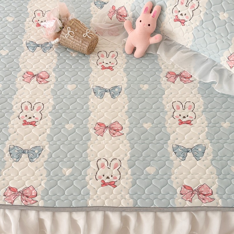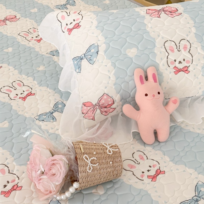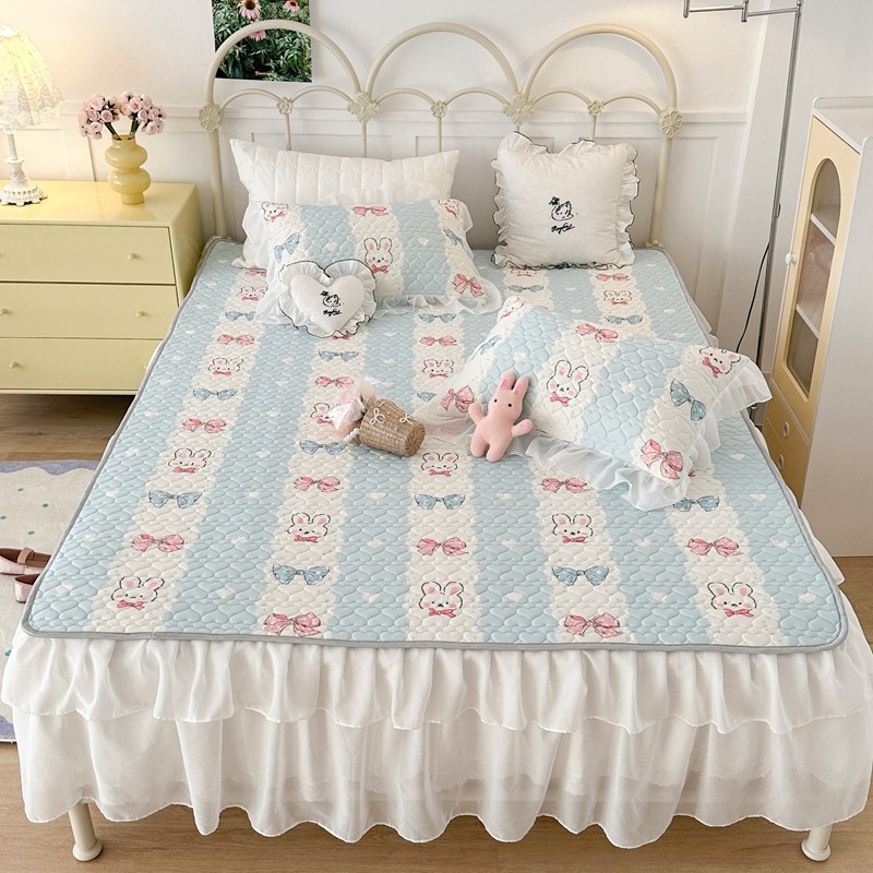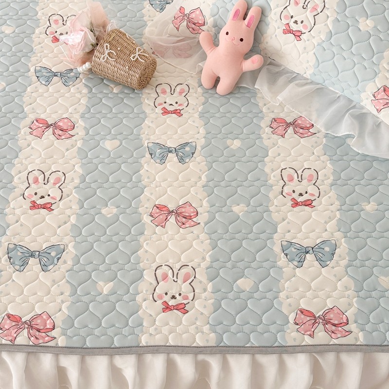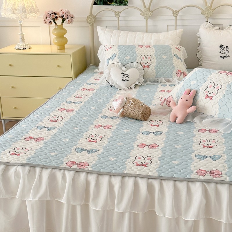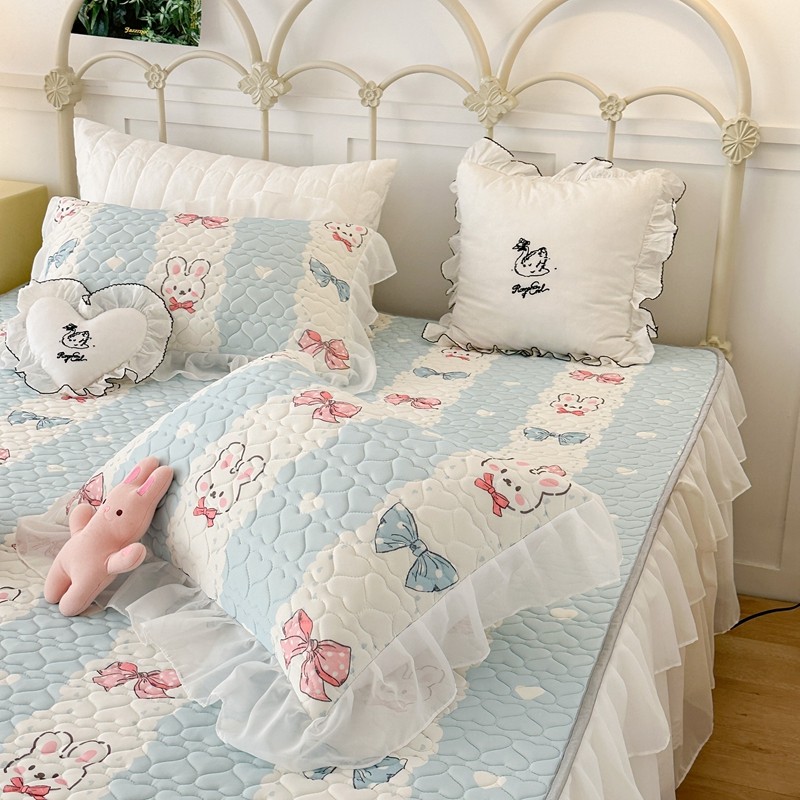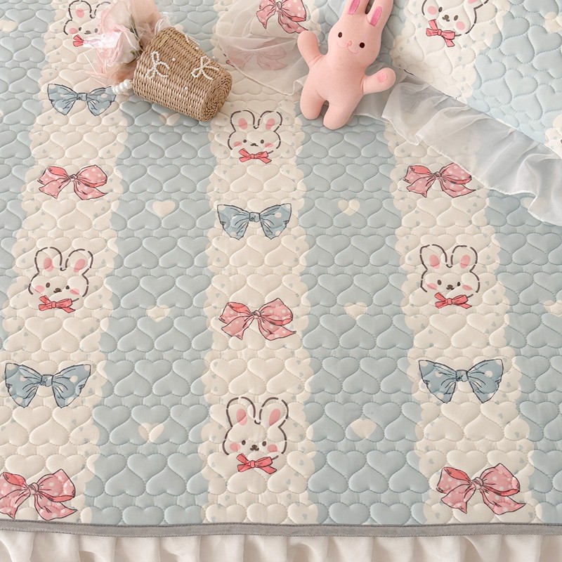 昔可 2023新款第二批双层床裙乳胶三件套 可爱小清新风 爱心蝴蝶结兔