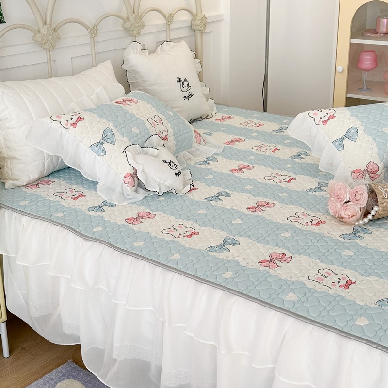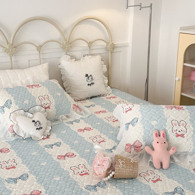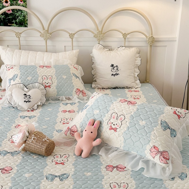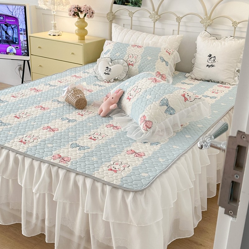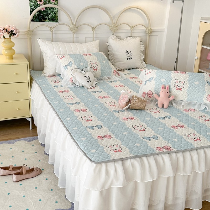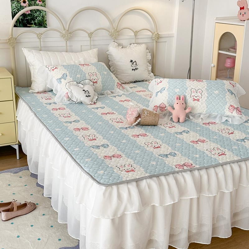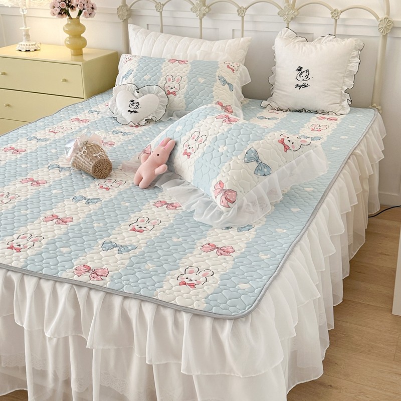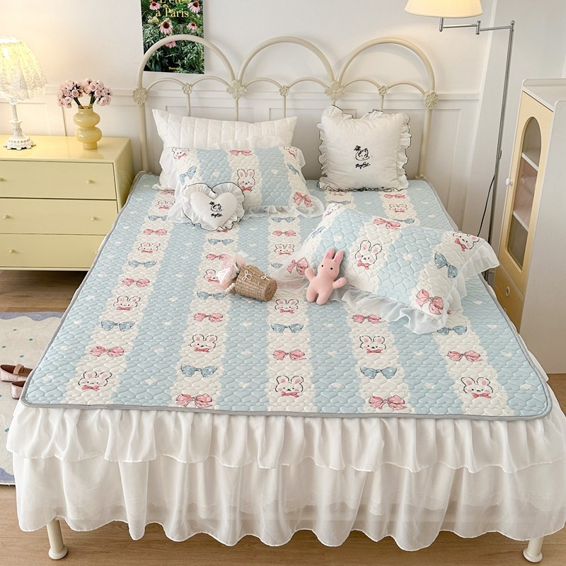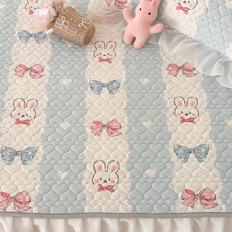 昔可 2023新款第二批双层床裙乳胶三件套 可爱小清新风 爱心蝴蝶结兔