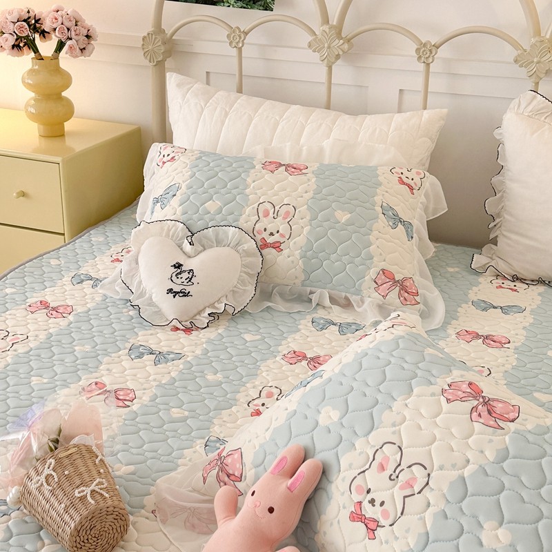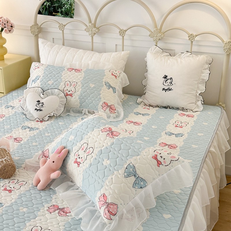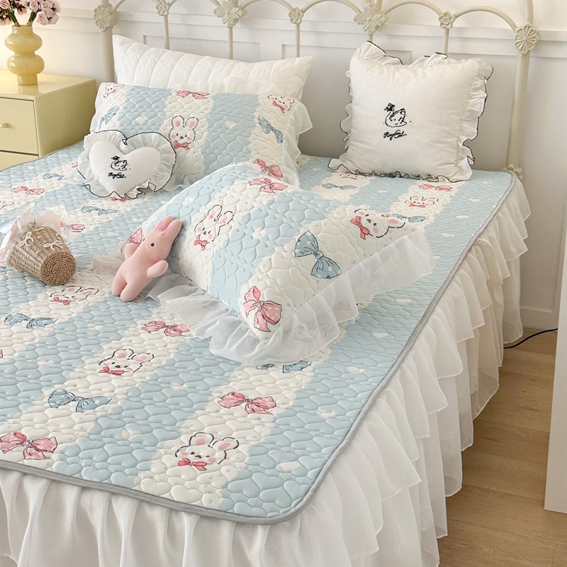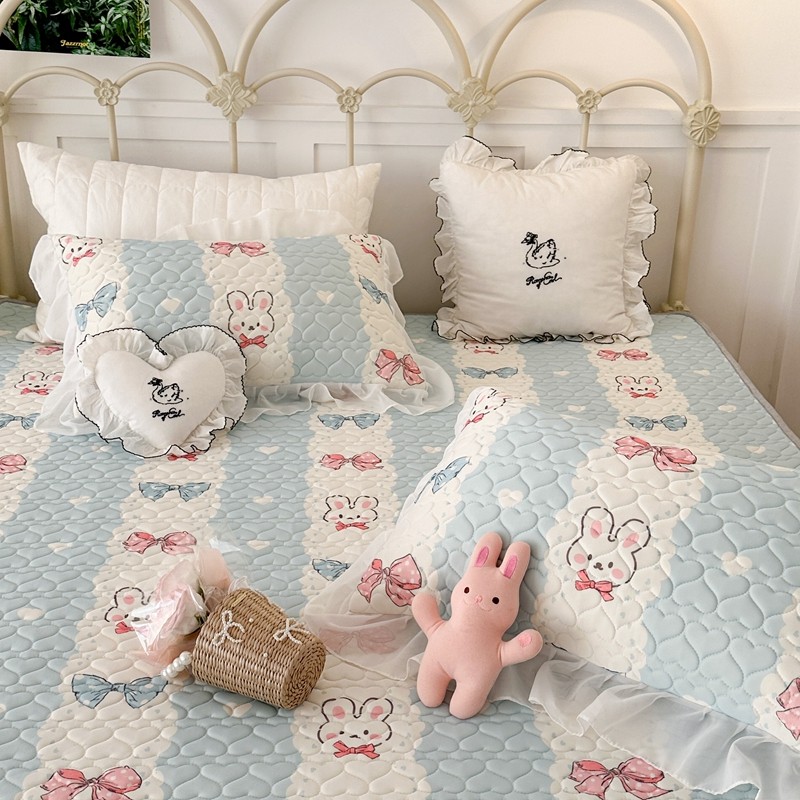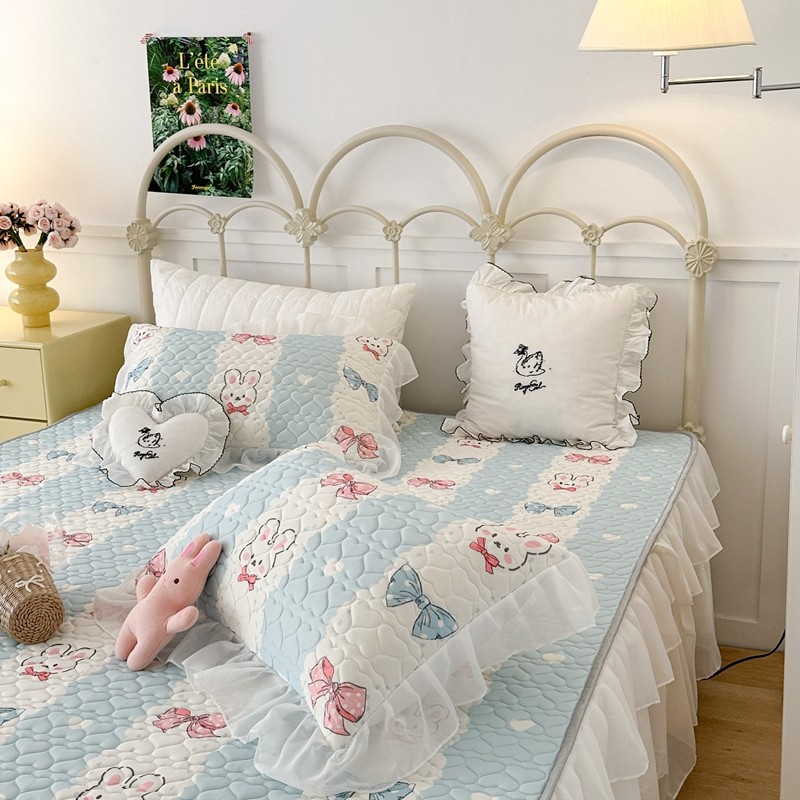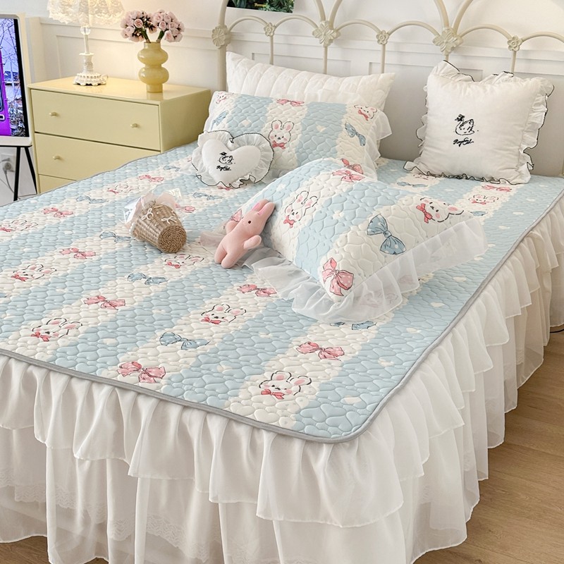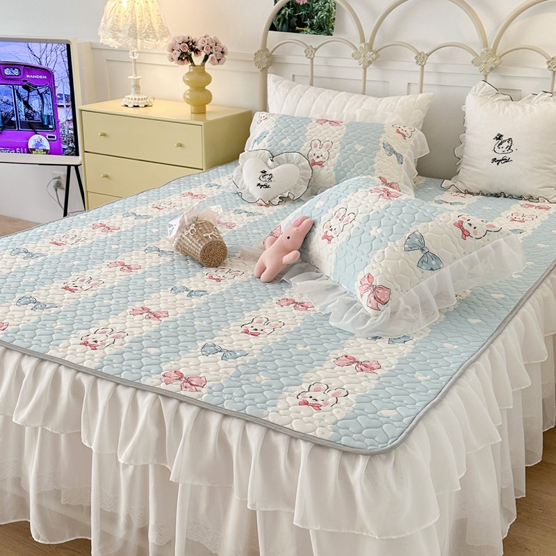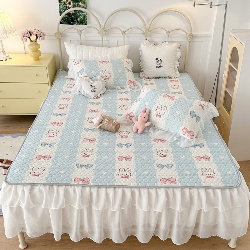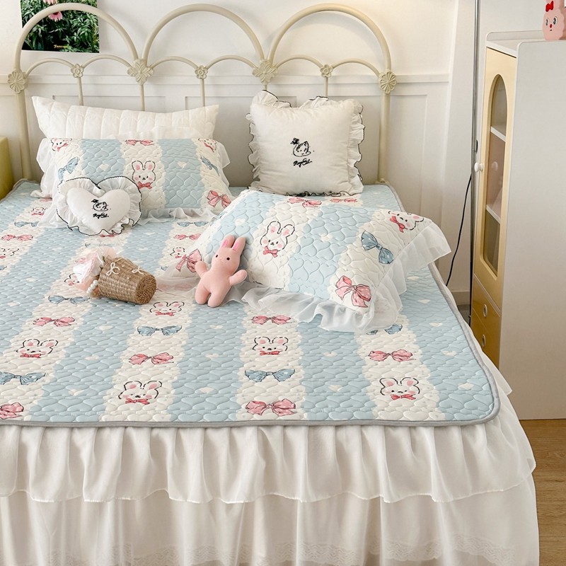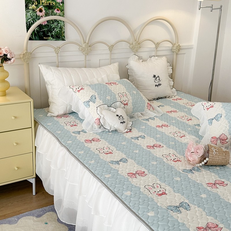 昔可 2023新款第二批双层床裙乳胶三件套 可爱小清新风 爱心蝴蝶结兔