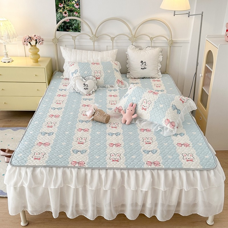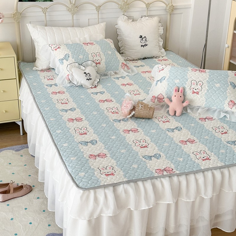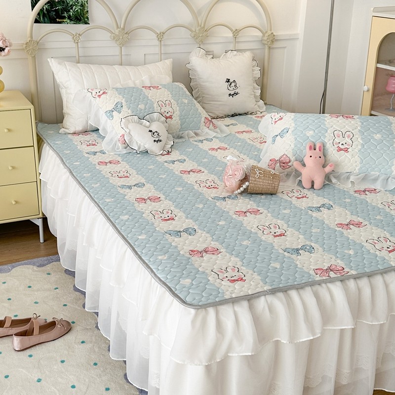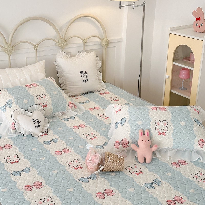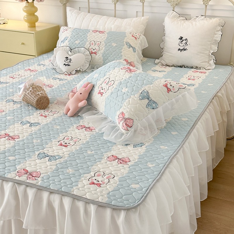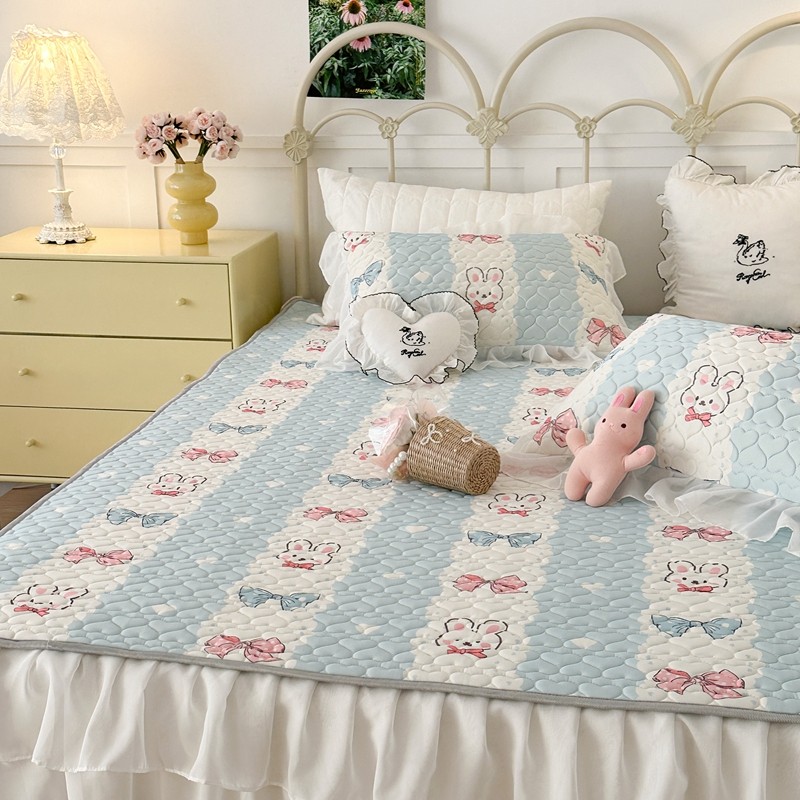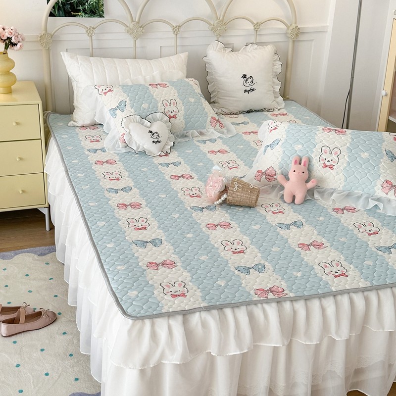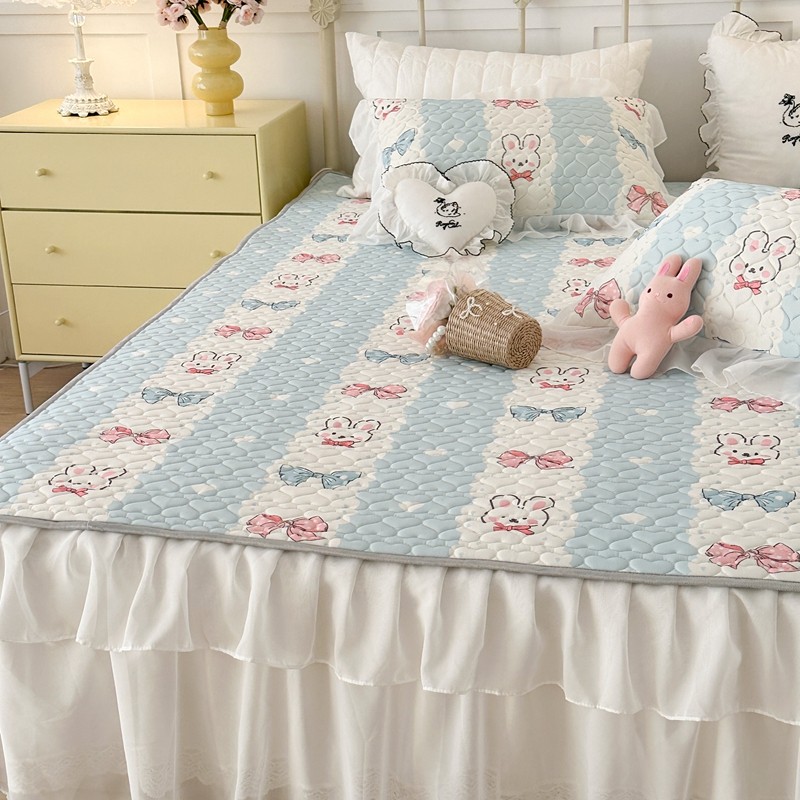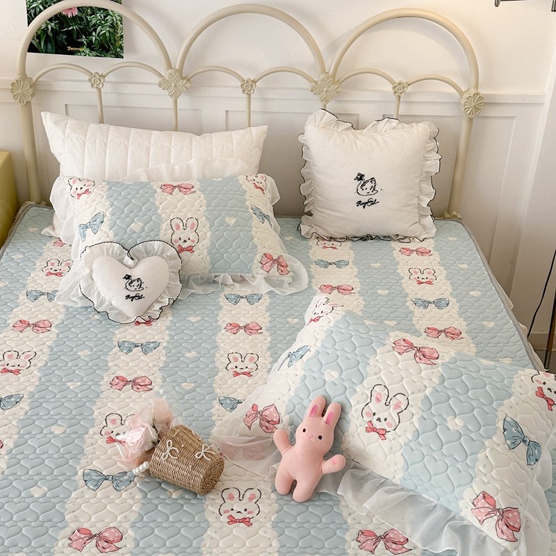 昔可 2023新款第二批双层床裙乳胶三件套 可爱小清新风 爱心蝴蝶结兔