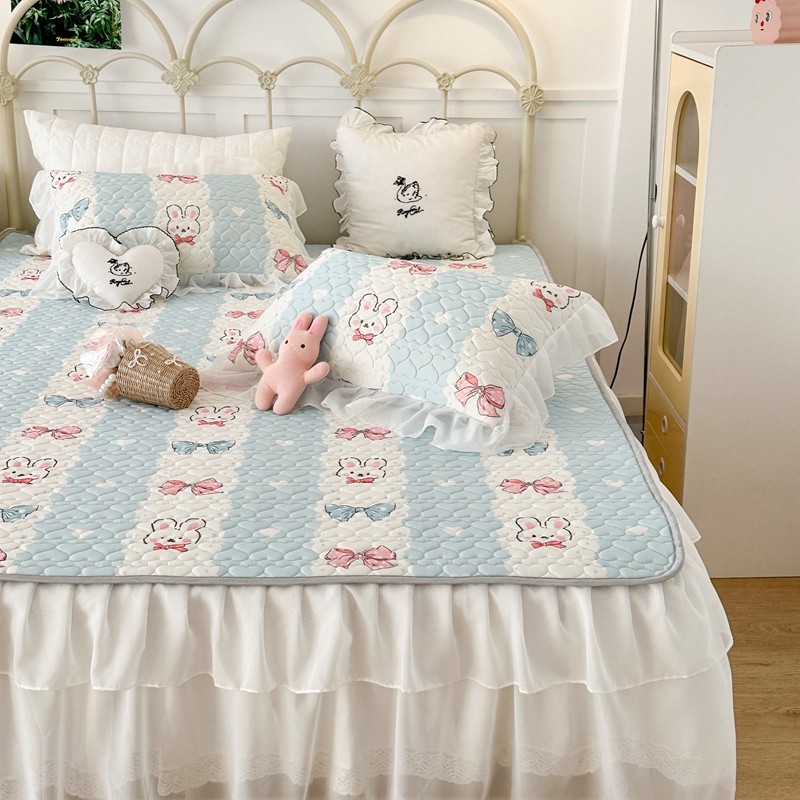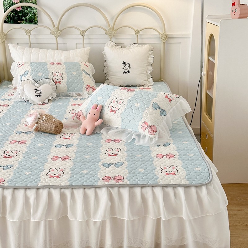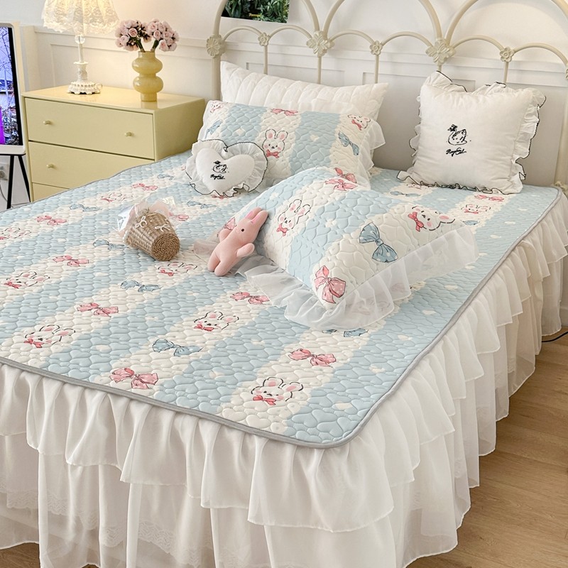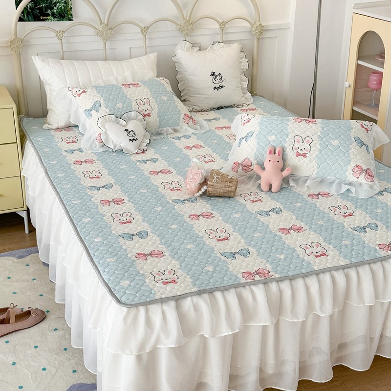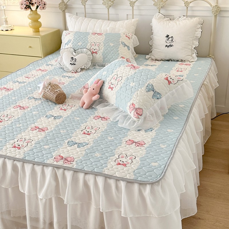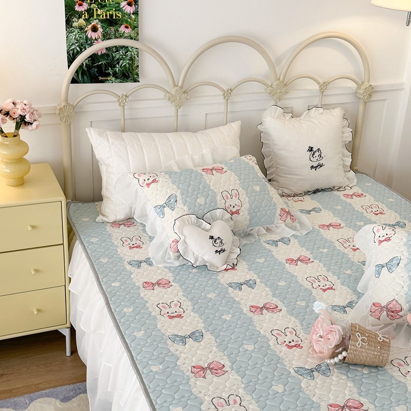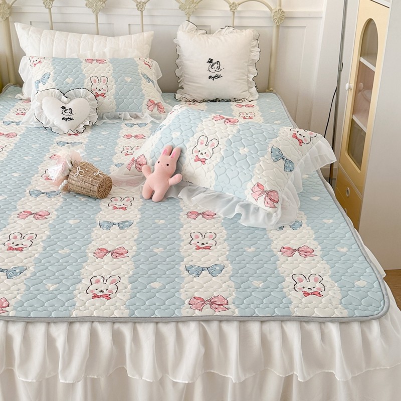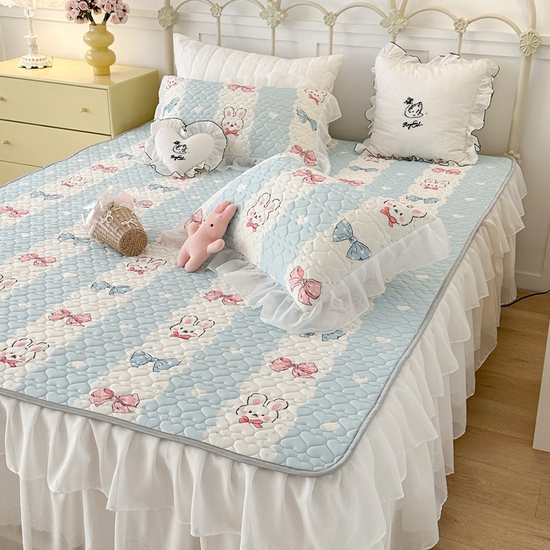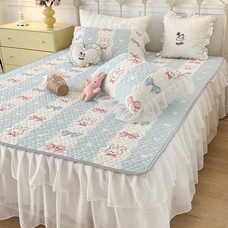 昔可 2023新款第二批双层床裙乳胶三件套 可爱小清新风 爱心蝴蝶结兔