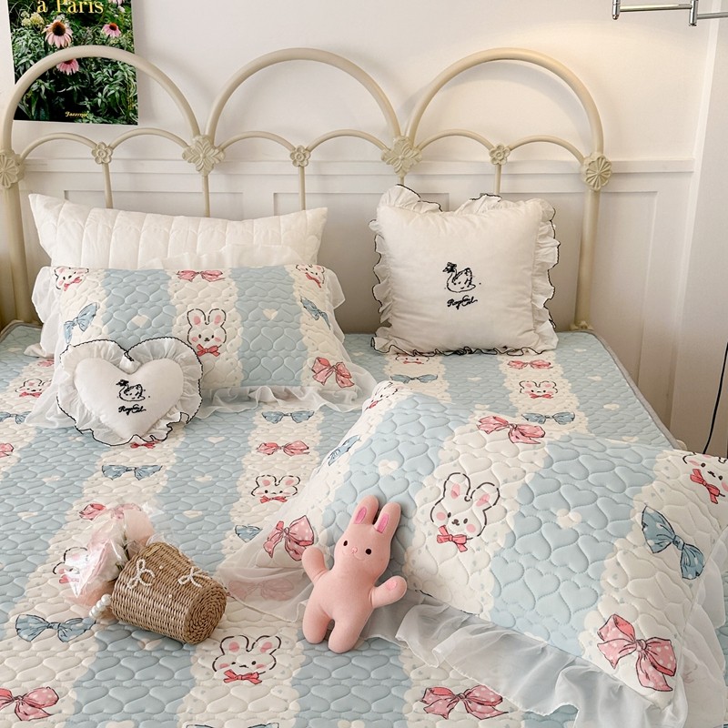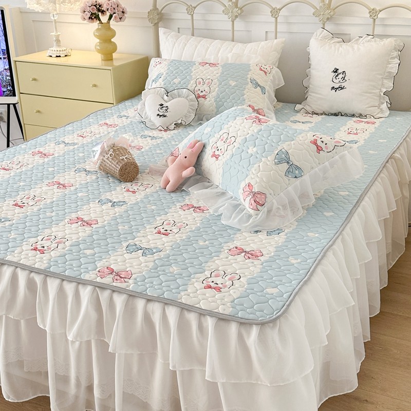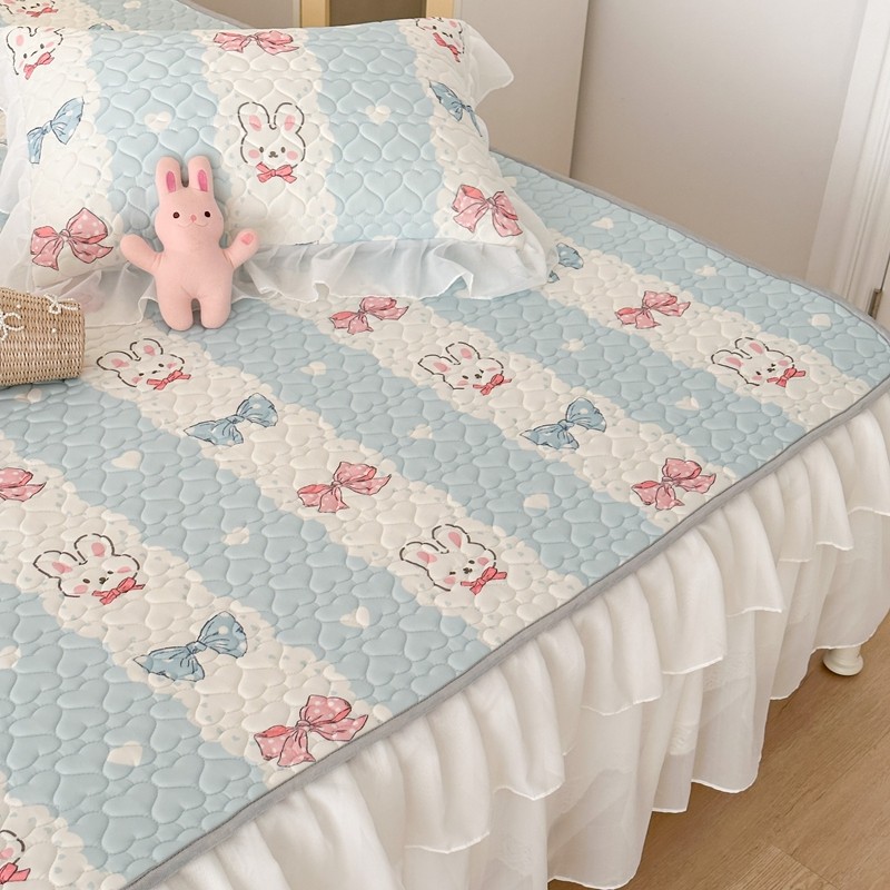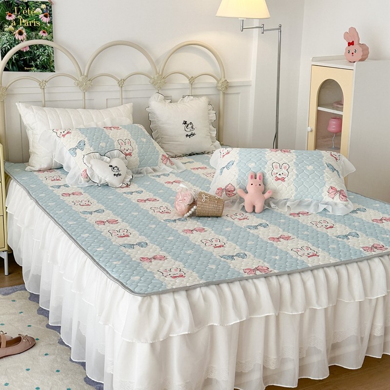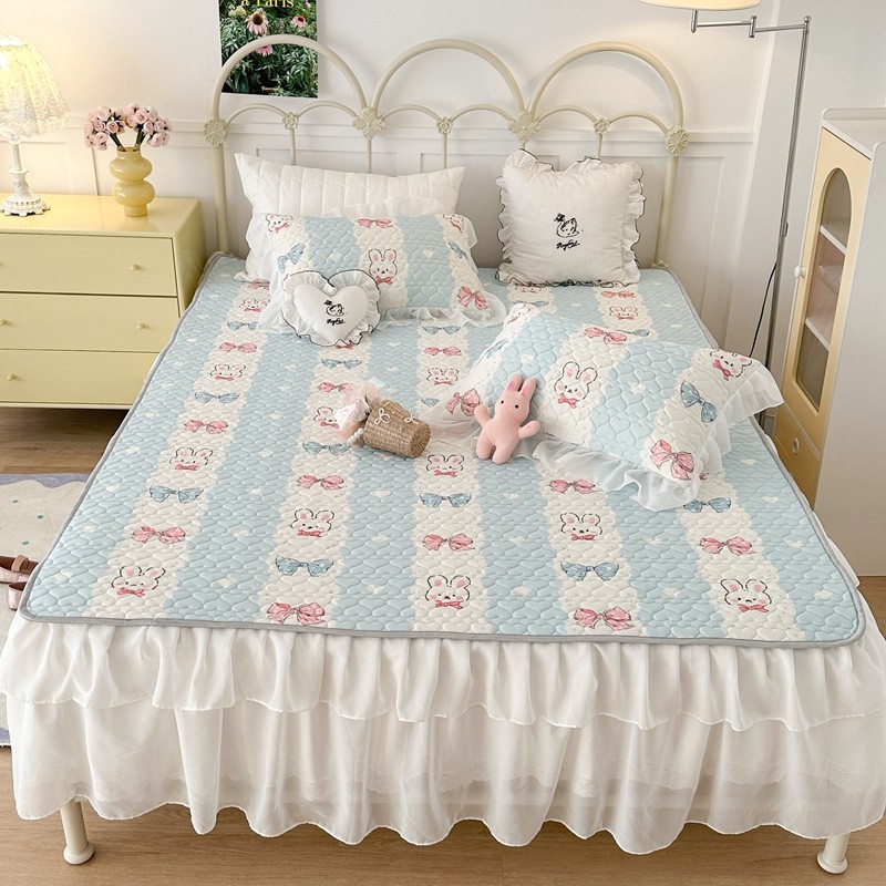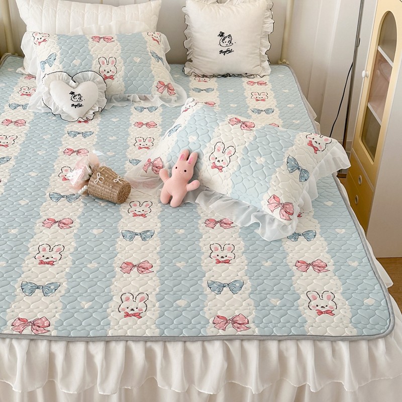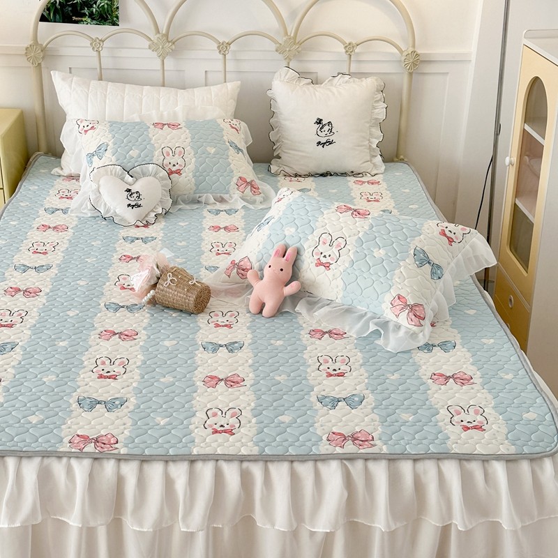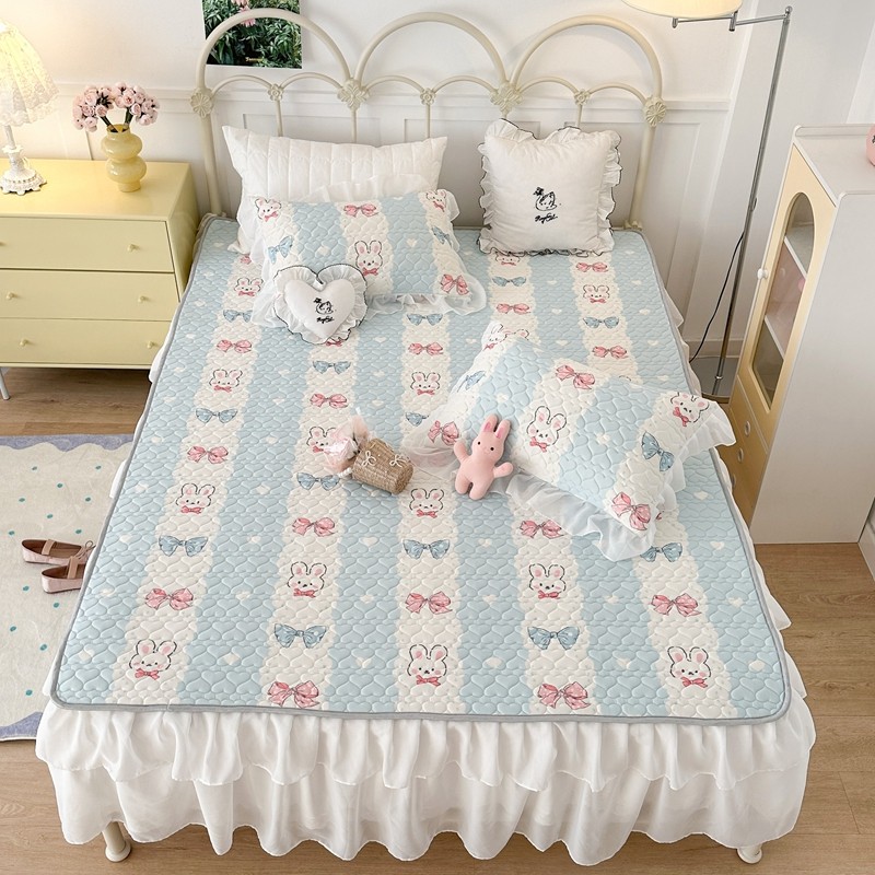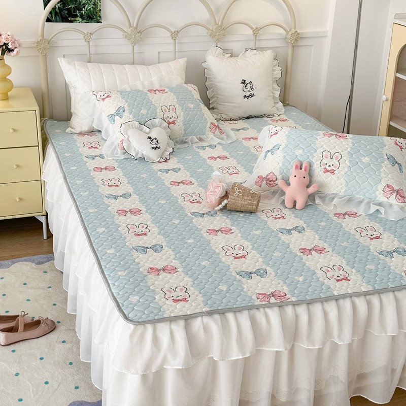 昔可 2023新款第二批双层床裙乳胶三件套 可爱小清新风 爱心蝴蝶结兔