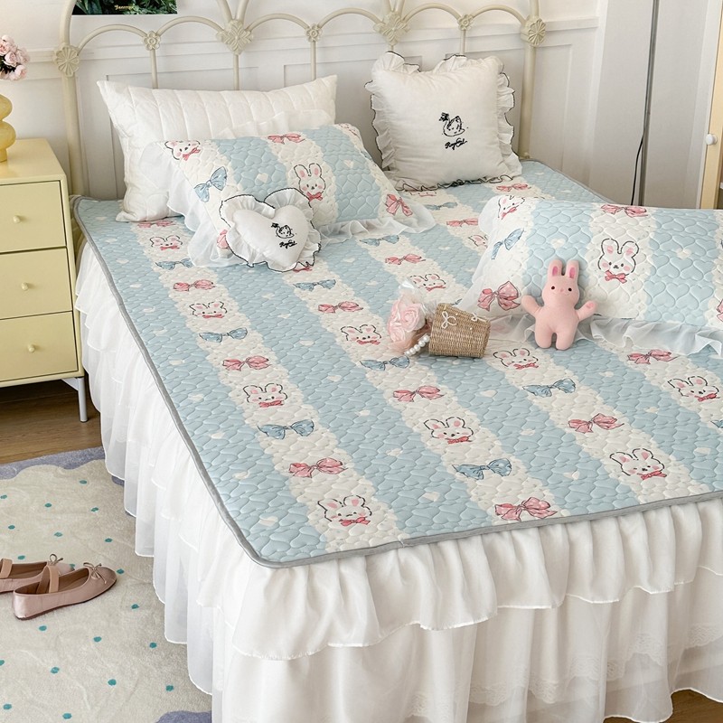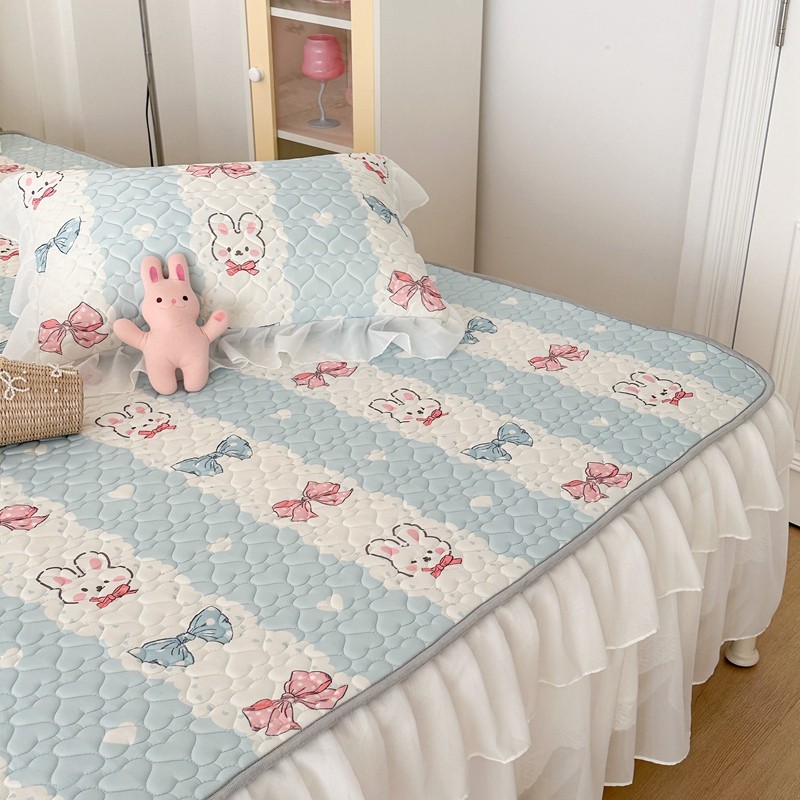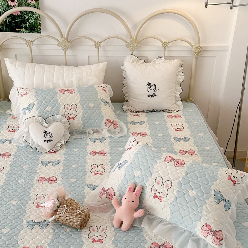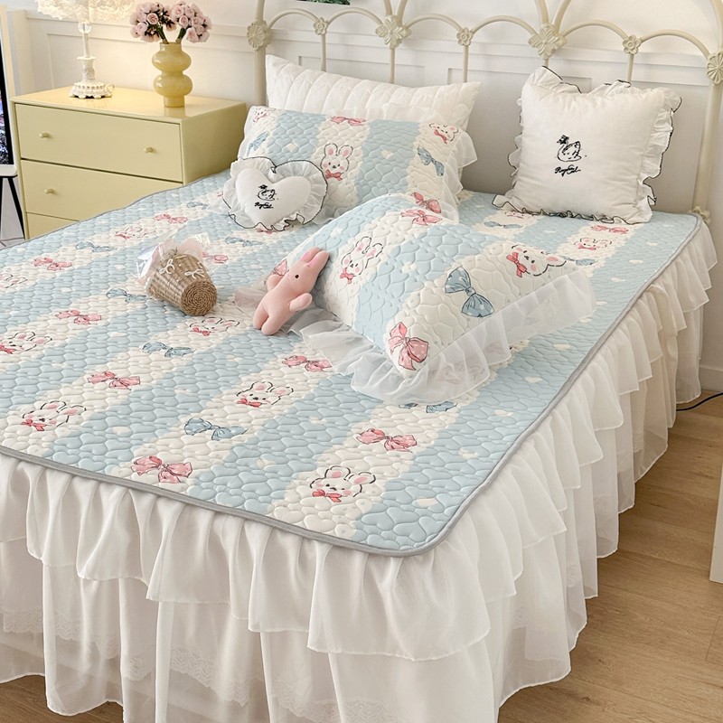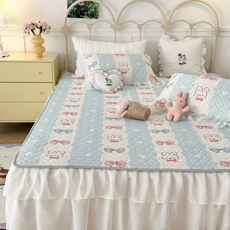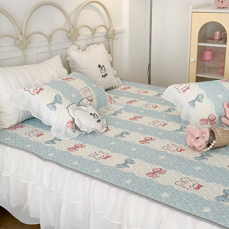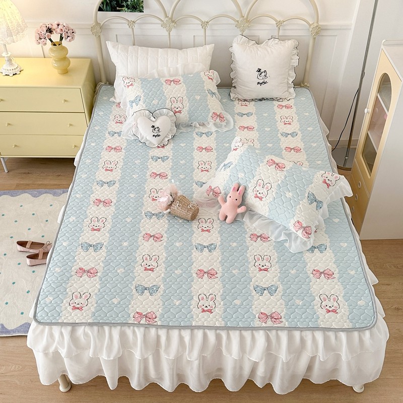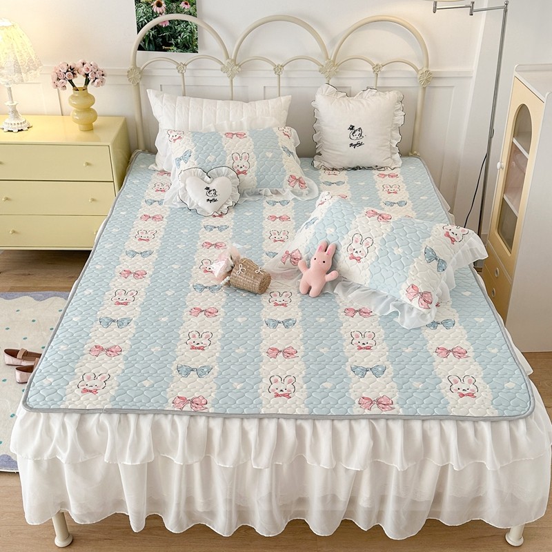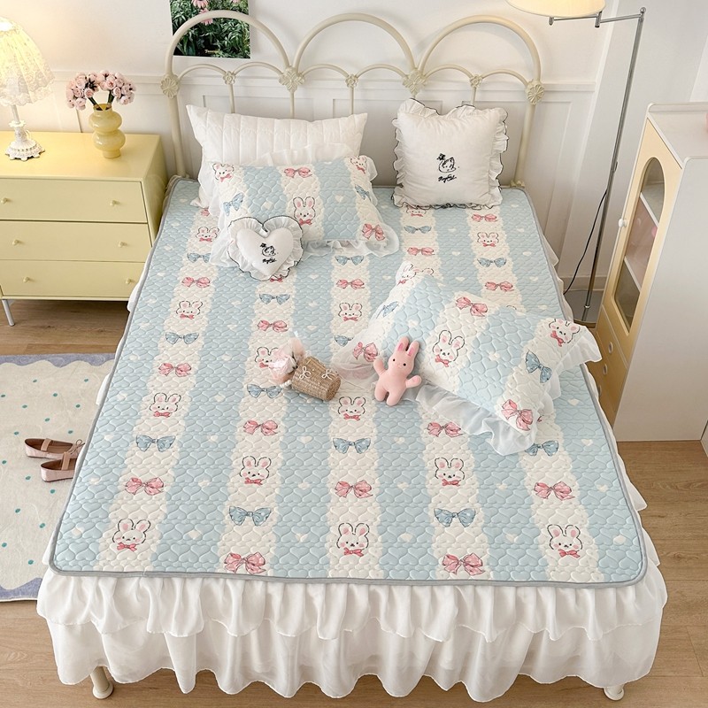 昔可 2023新款第二批双层床裙乳胶三件套 可爱小清新风 爱心蝴蝶结兔