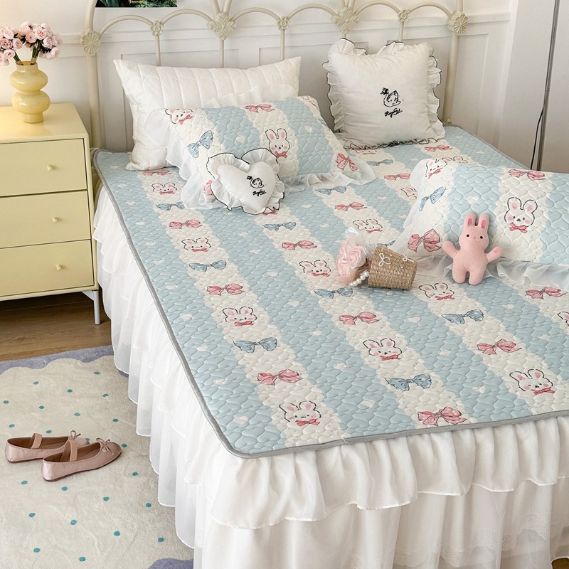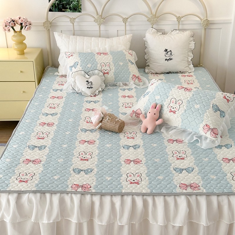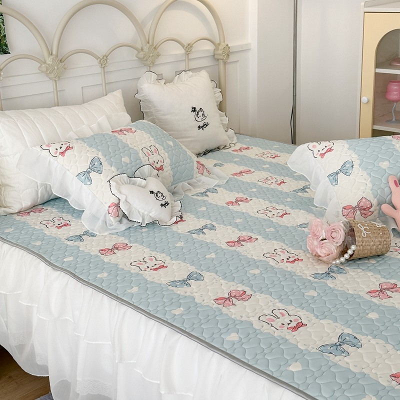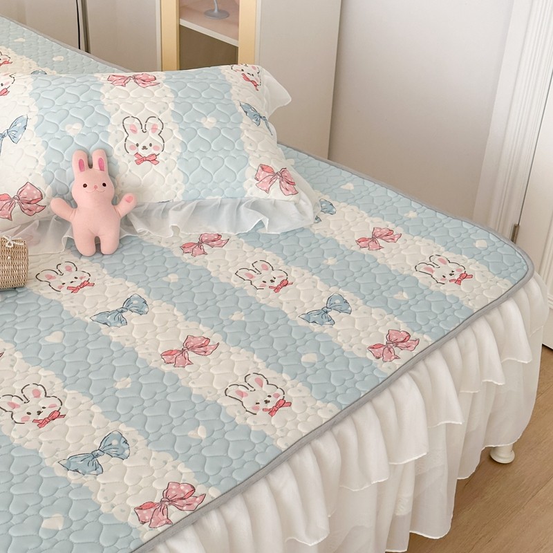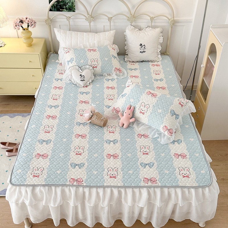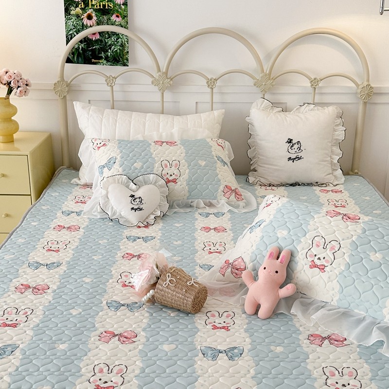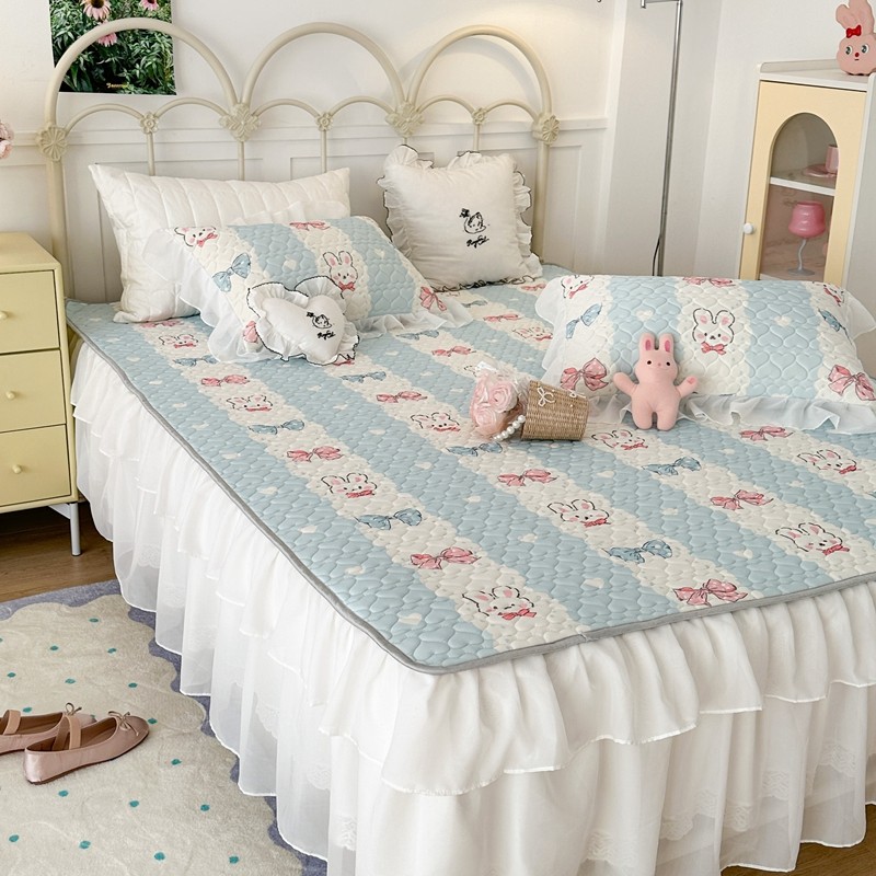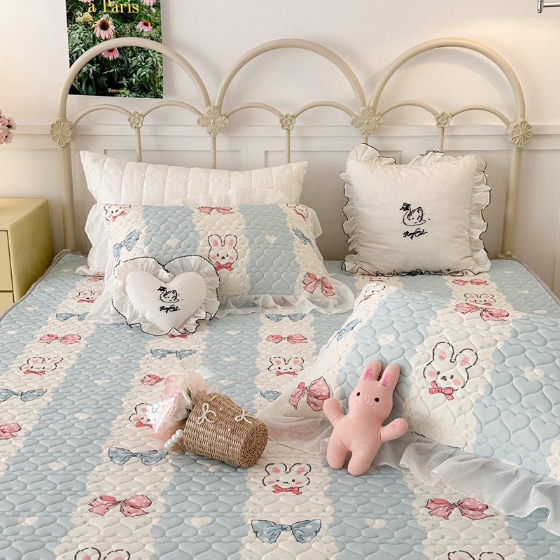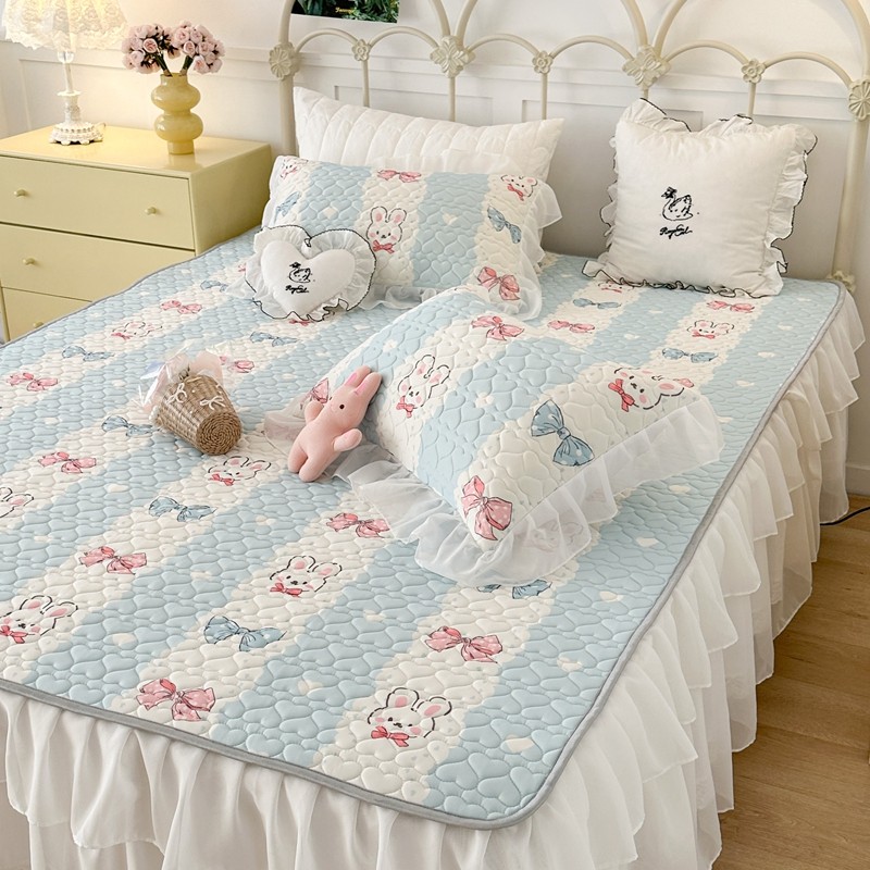昔可 2023新款第二批双层床裙乳胶三件套 可爱小清新风 爱心蝴蝶结兔