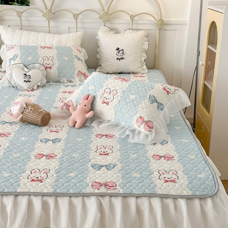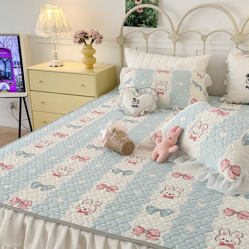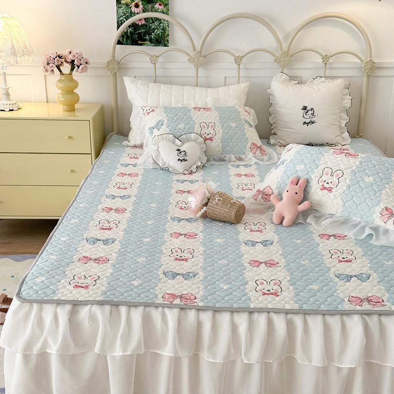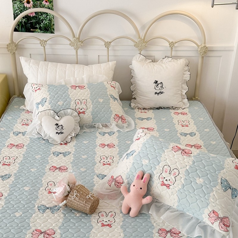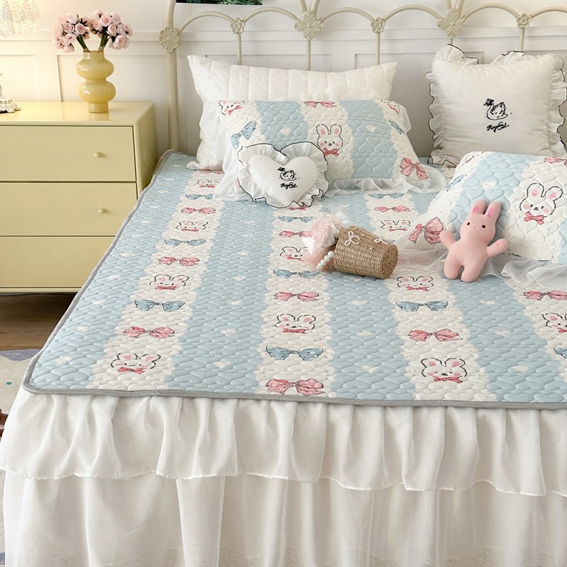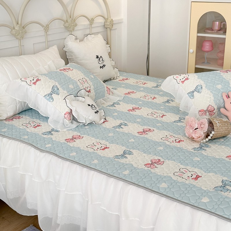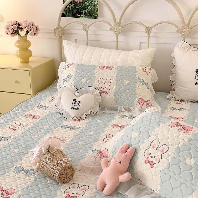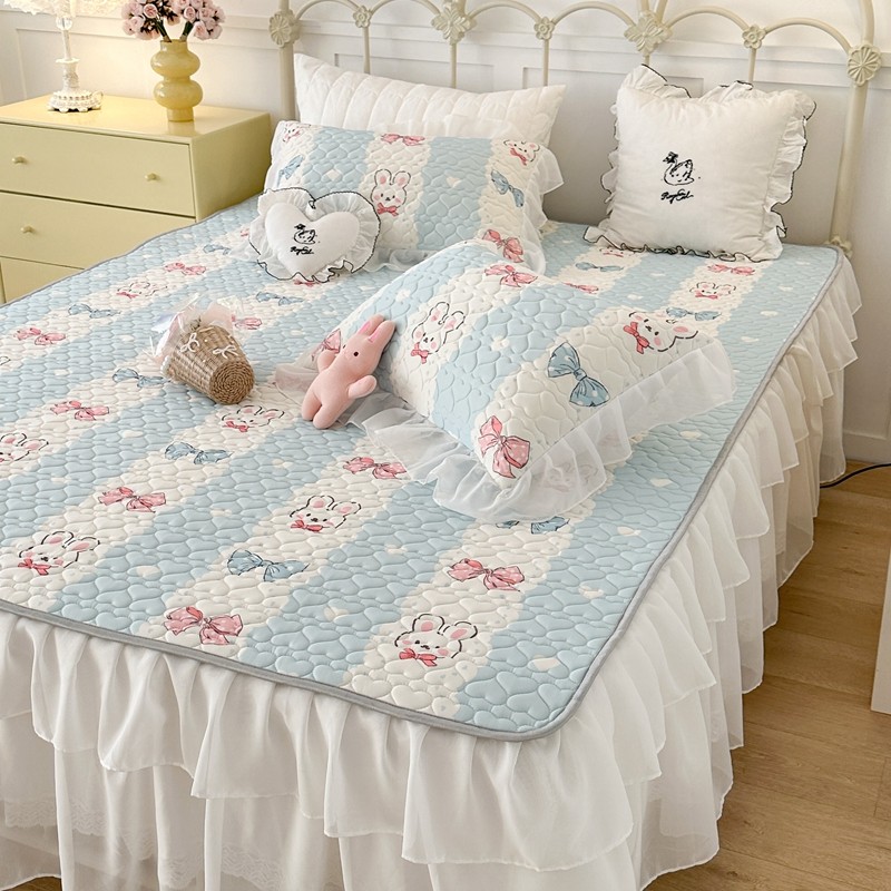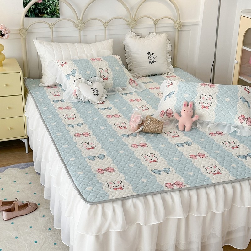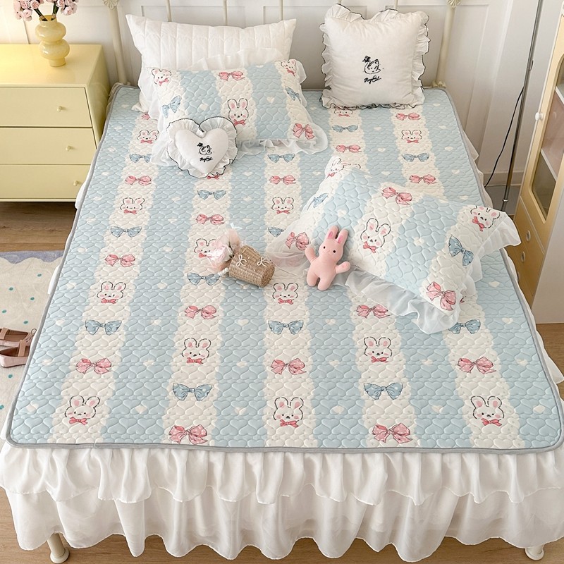 昔可 2023新款第二批双层床裙乳胶三件套 可爱小清新风 爱心蝴蝶结兔