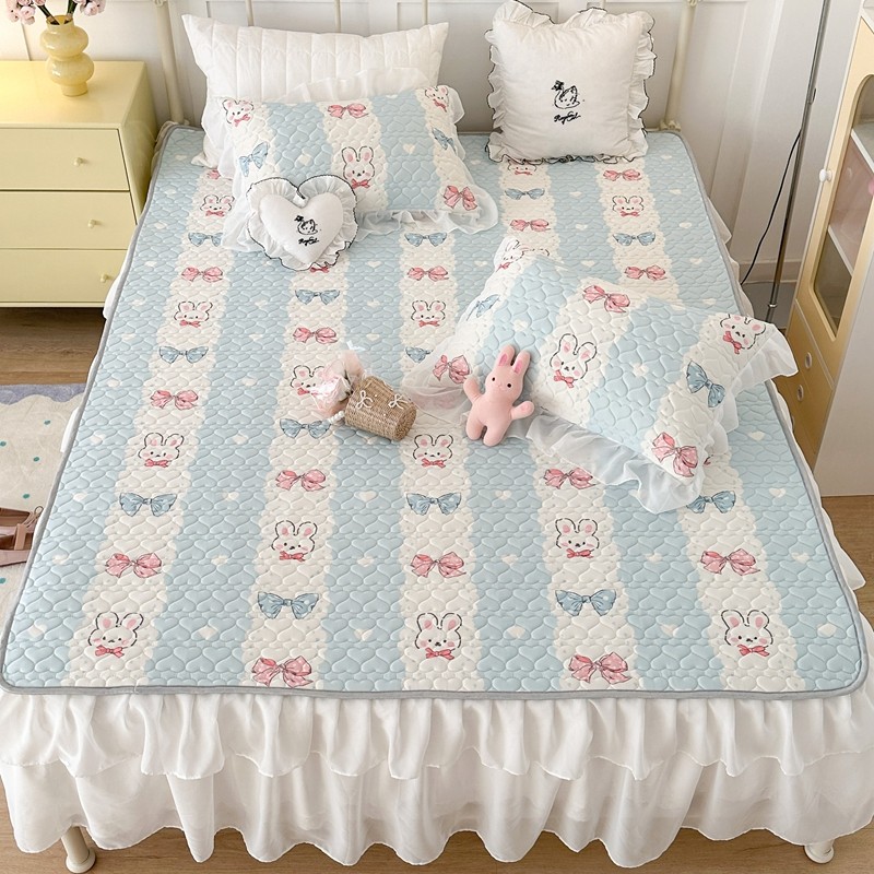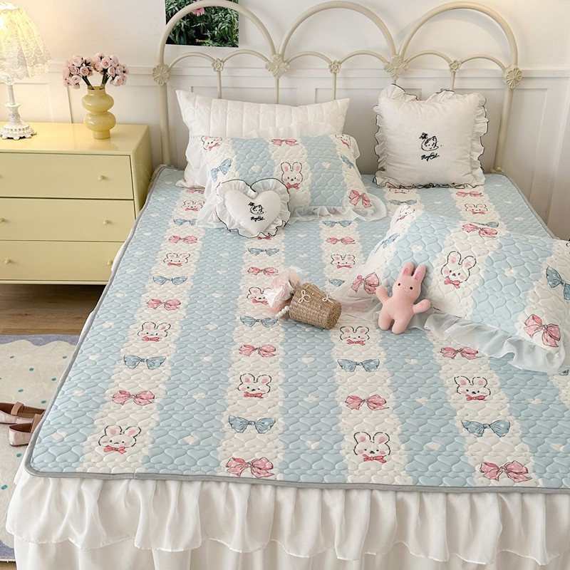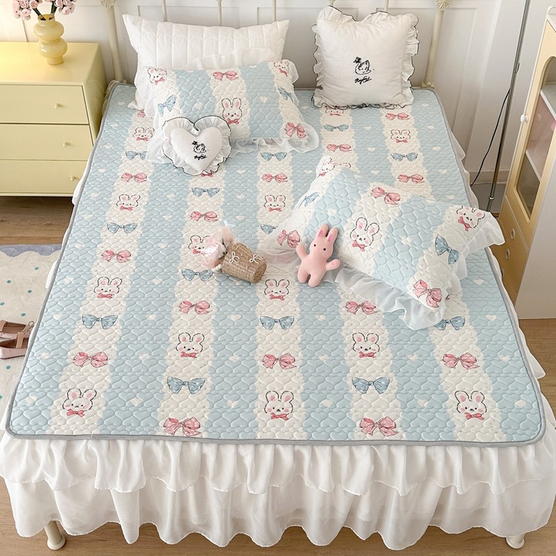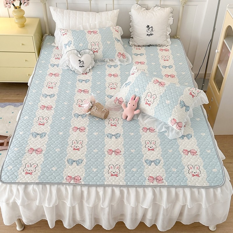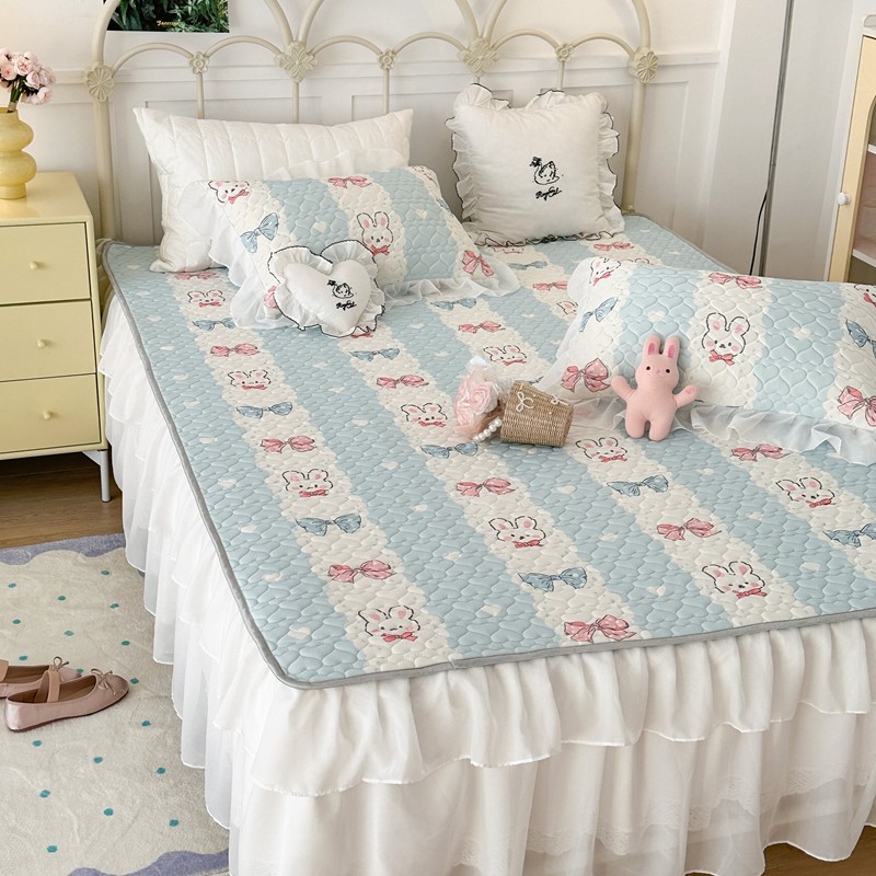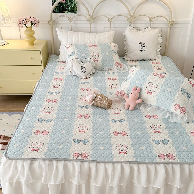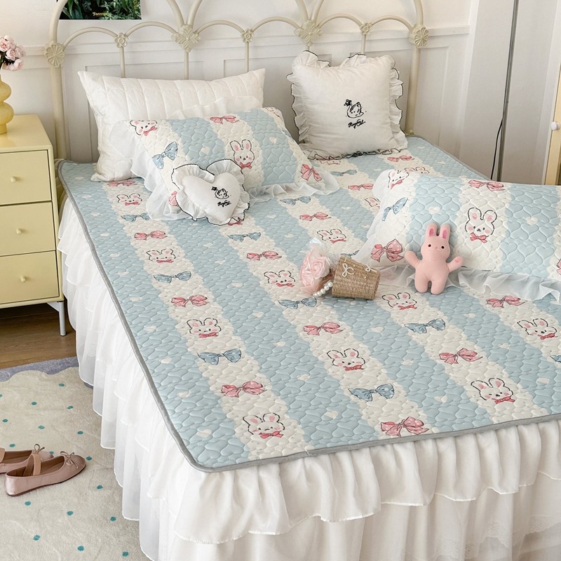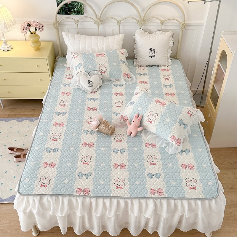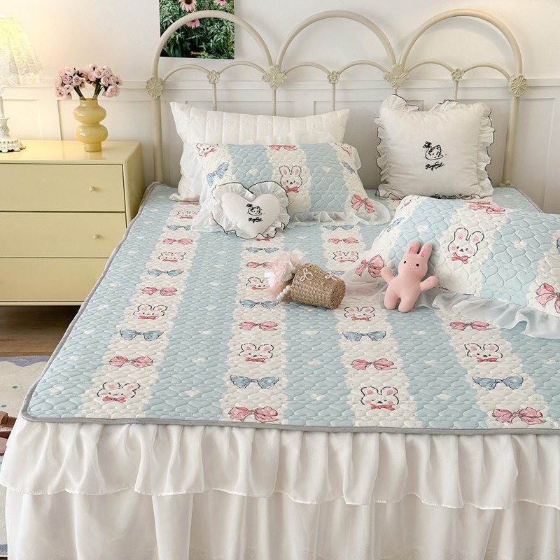 昔可 2023新款第二批双层床裙乳胶三件套 可爱小清新风 爱心蝴蝶结兔