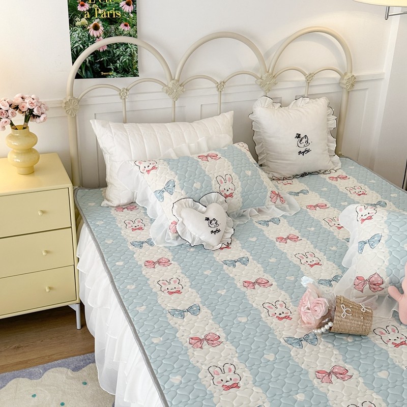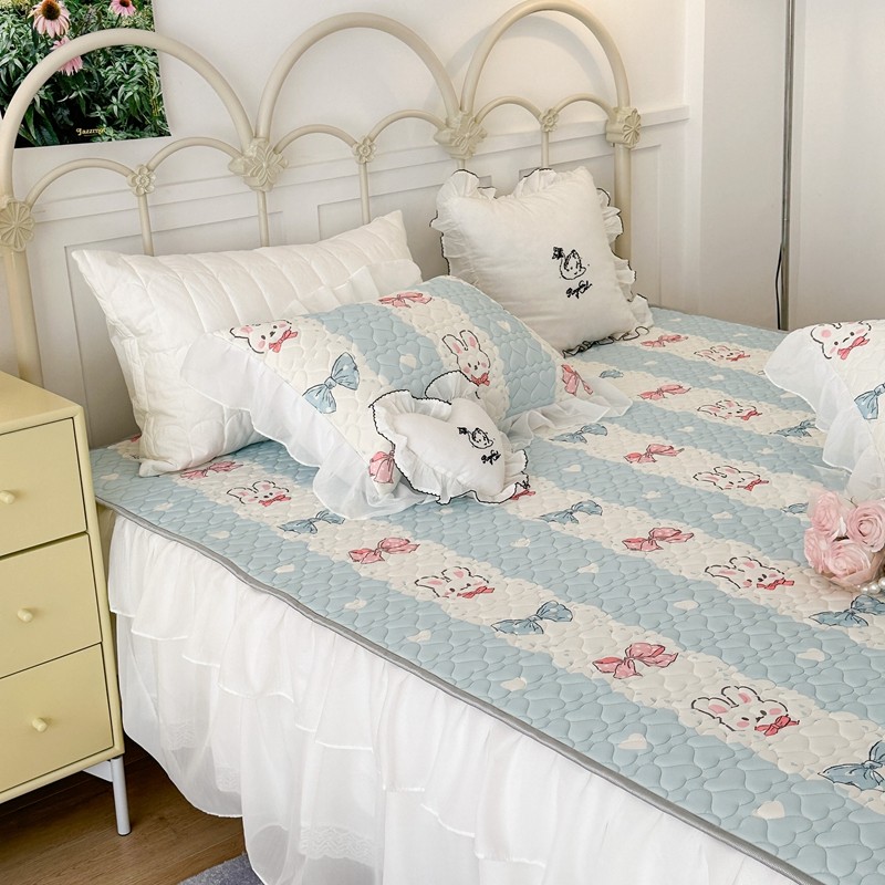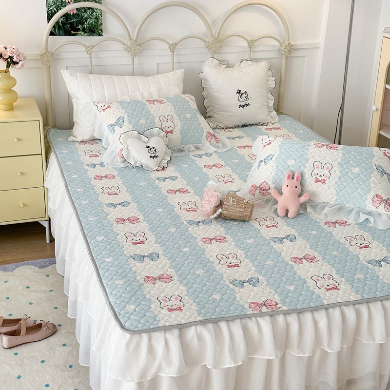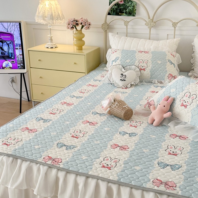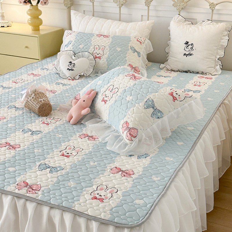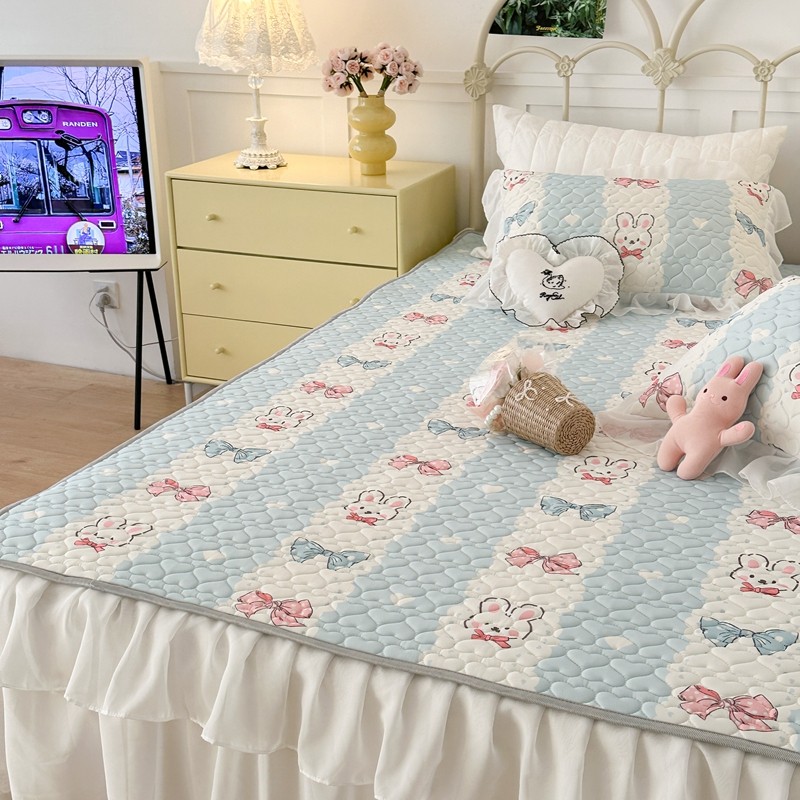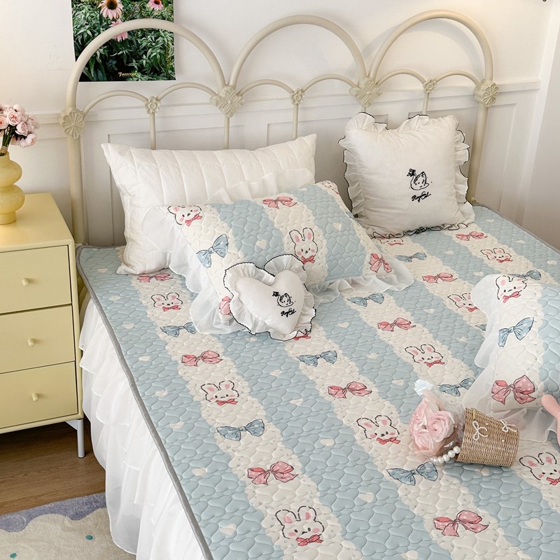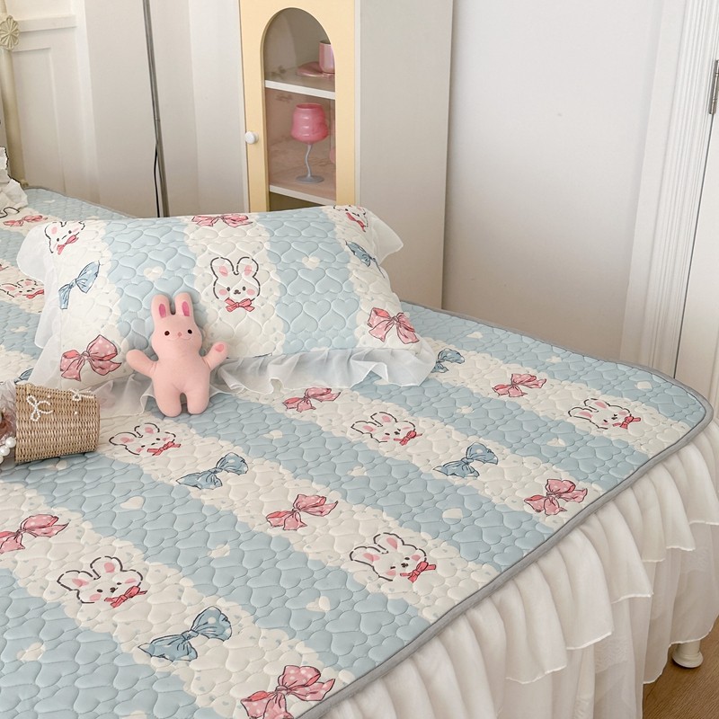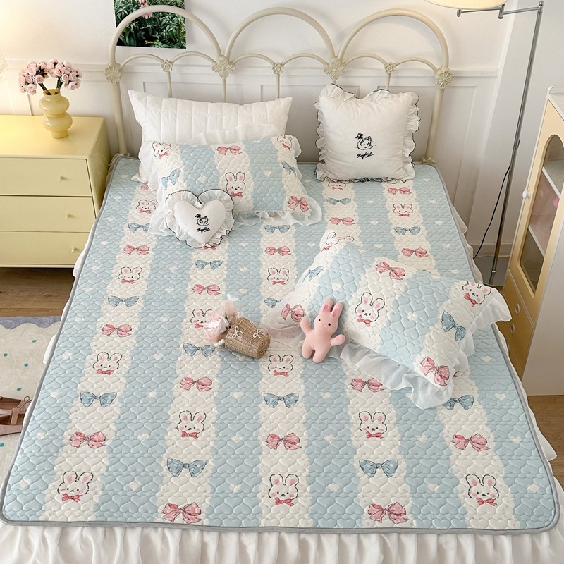 昔可 2023新款第二批双层床裙乳胶三件套 可爱小清新风 爱心蝴蝶结兔