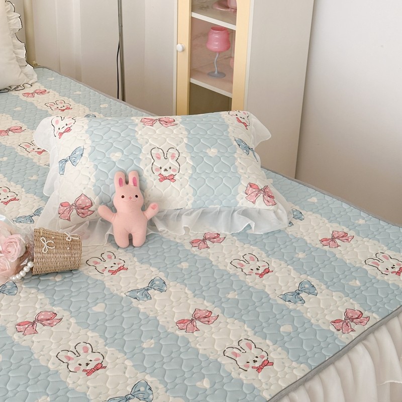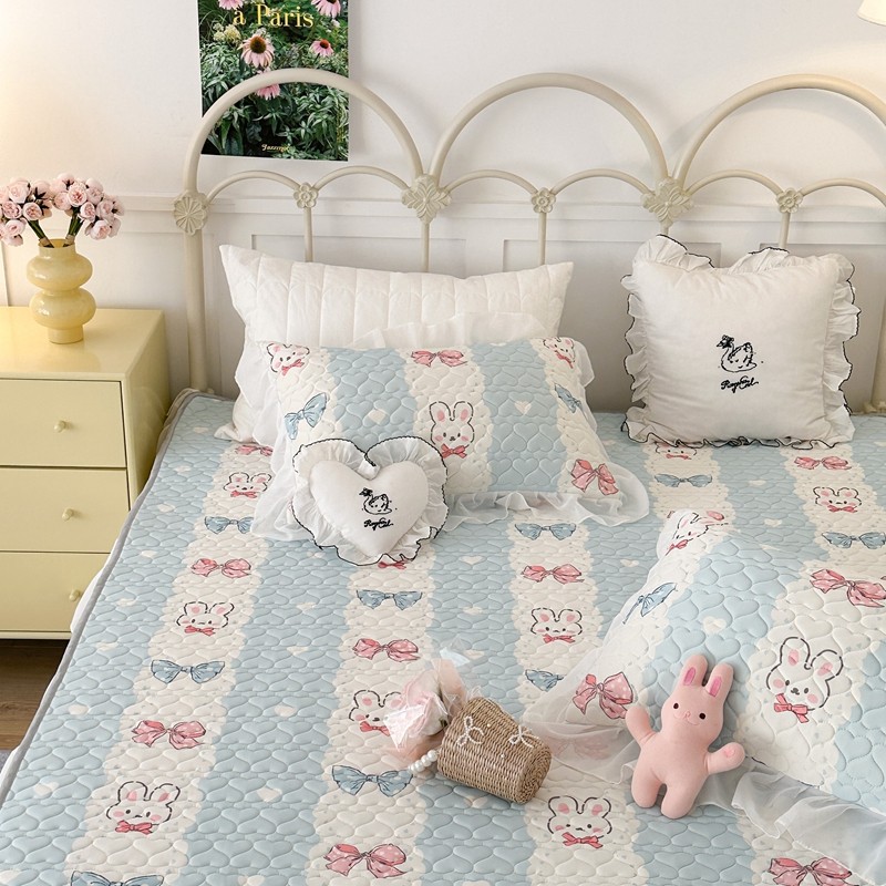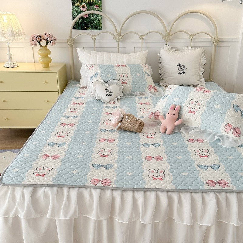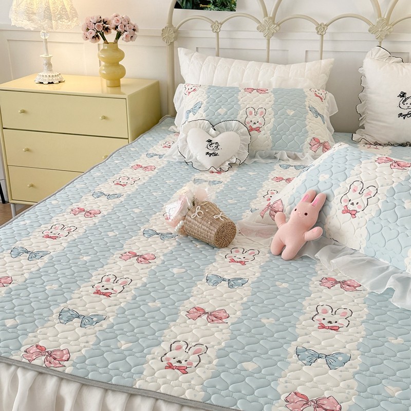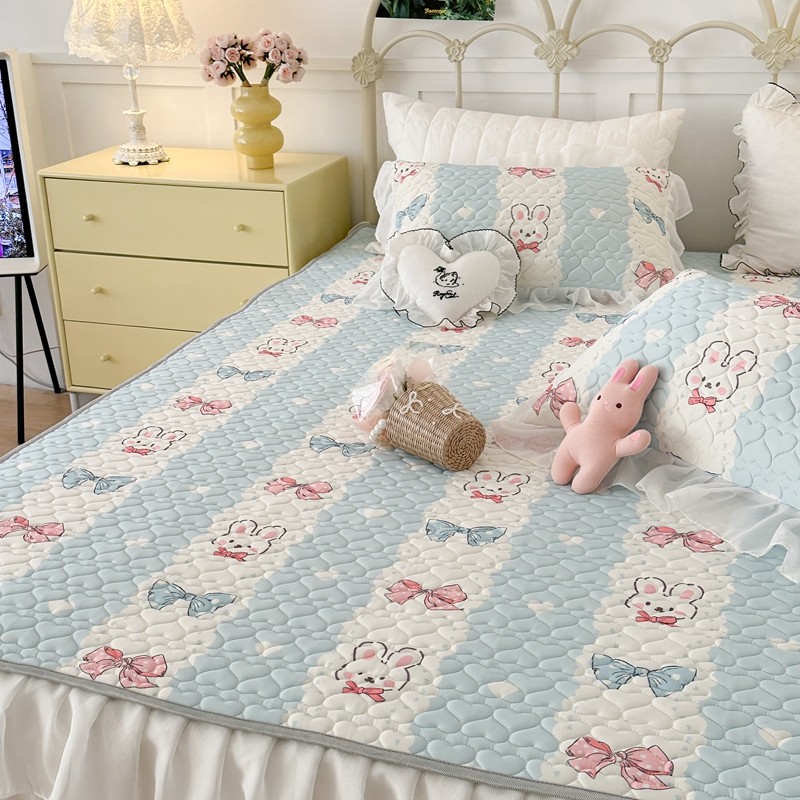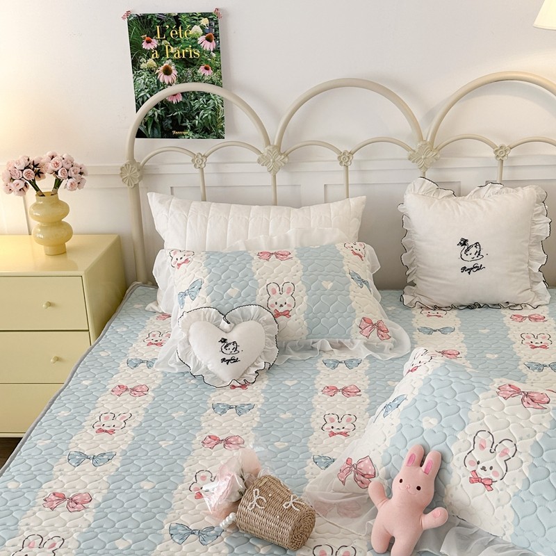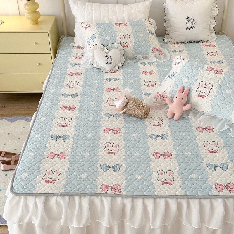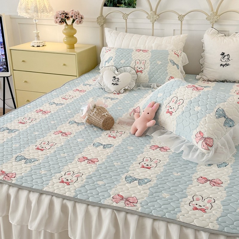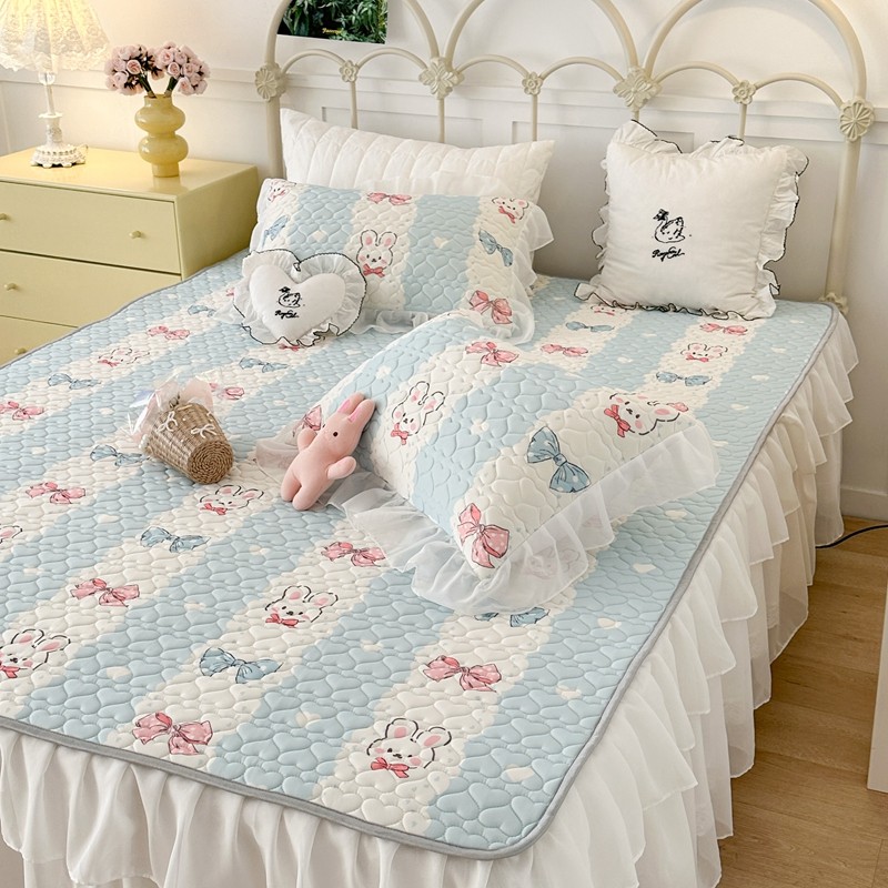 昔可 2023新款第二批双层床裙乳胶三件套 可爱小清新风 爱心蝴蝶结兔