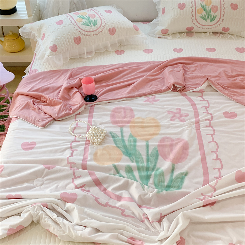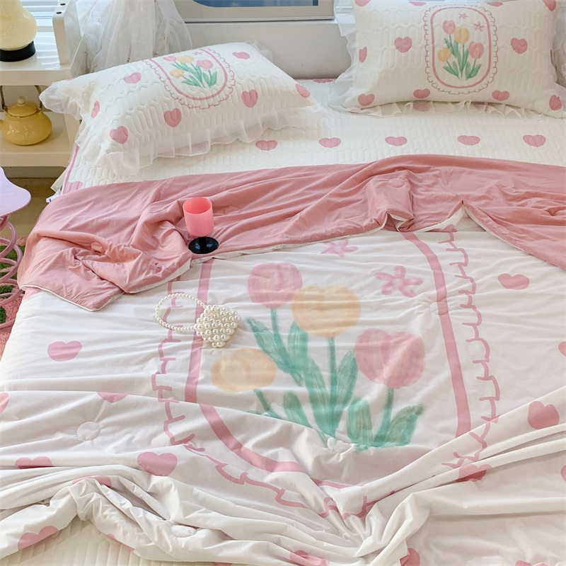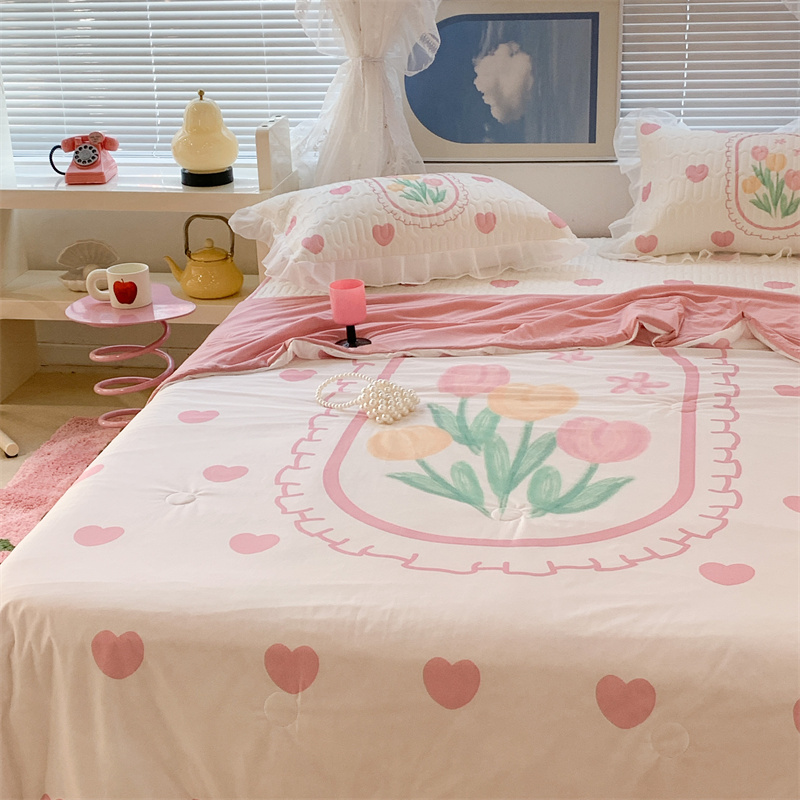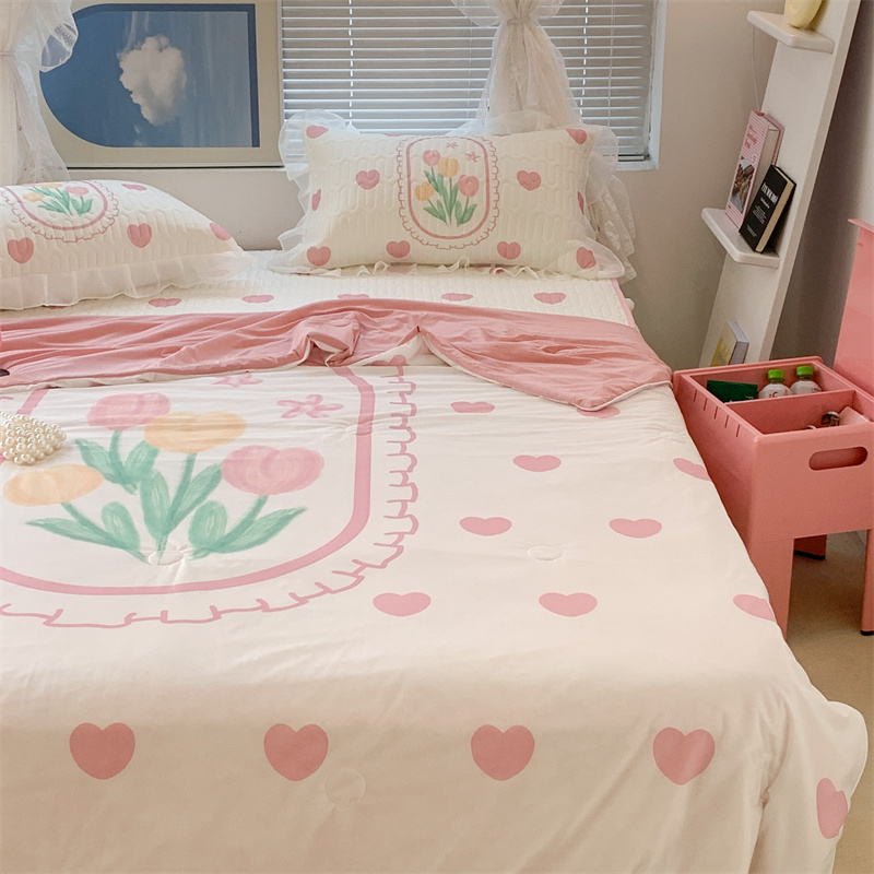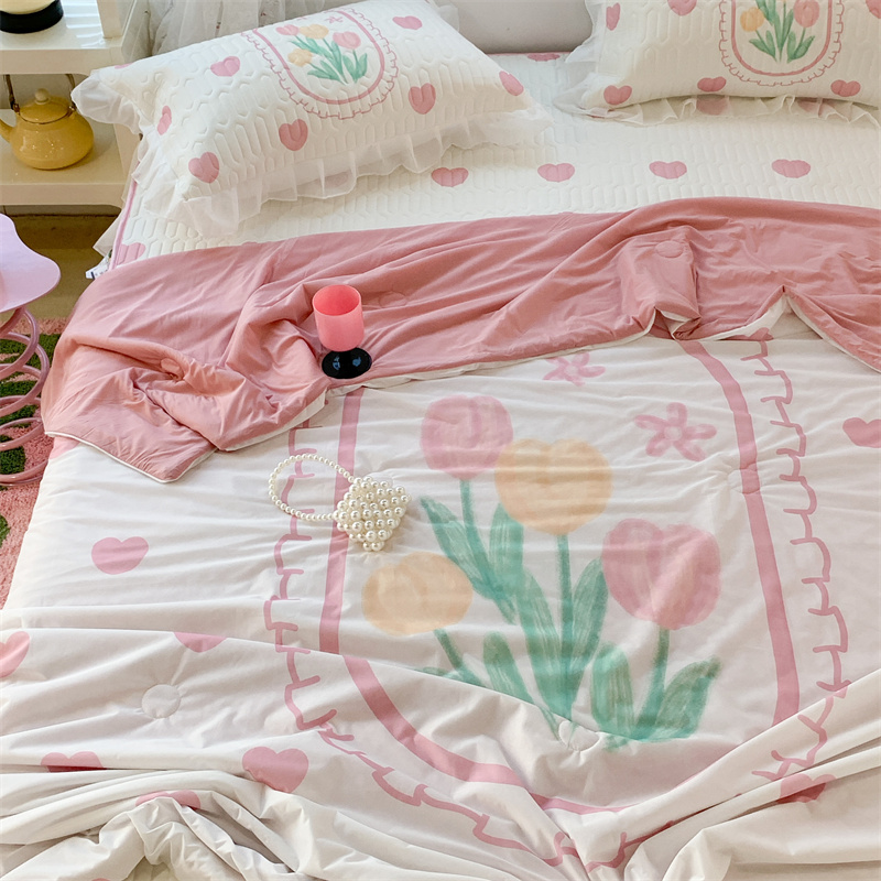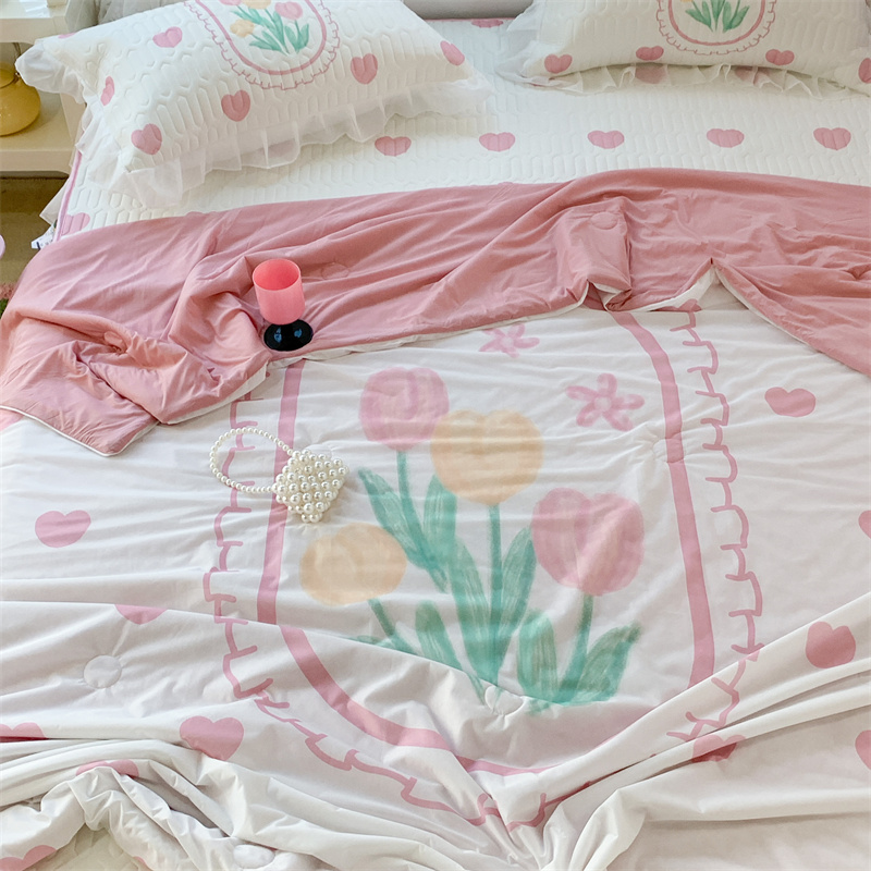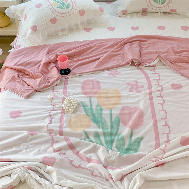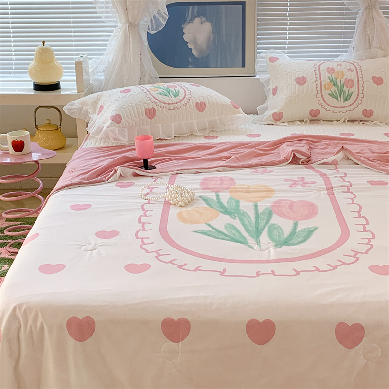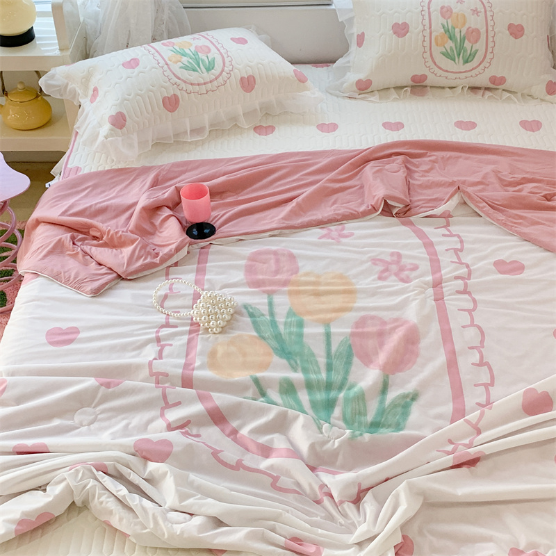 商品名称:昔可 大版数码印花凉感夏被 粉爱心郁金香