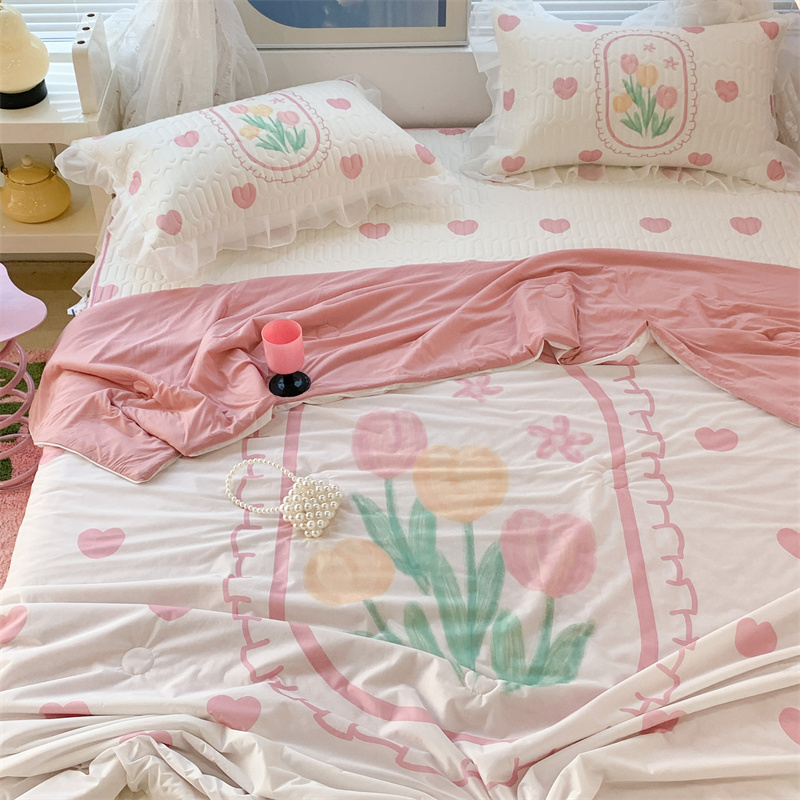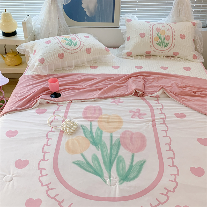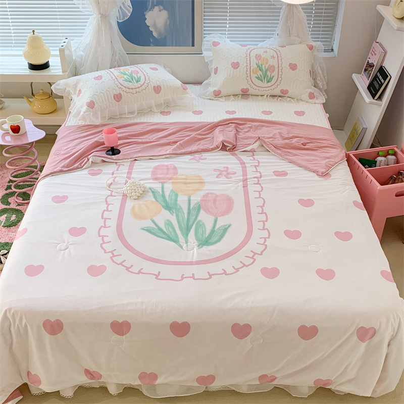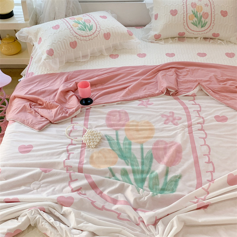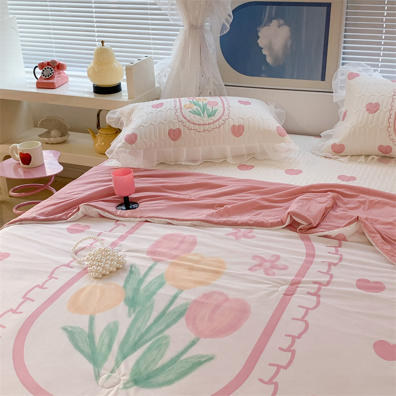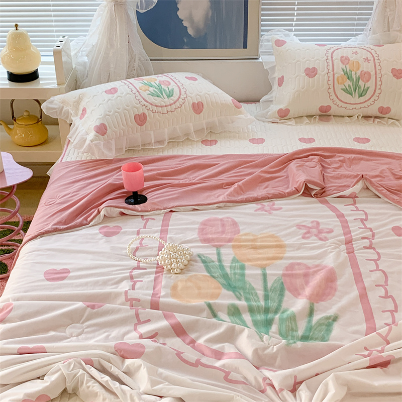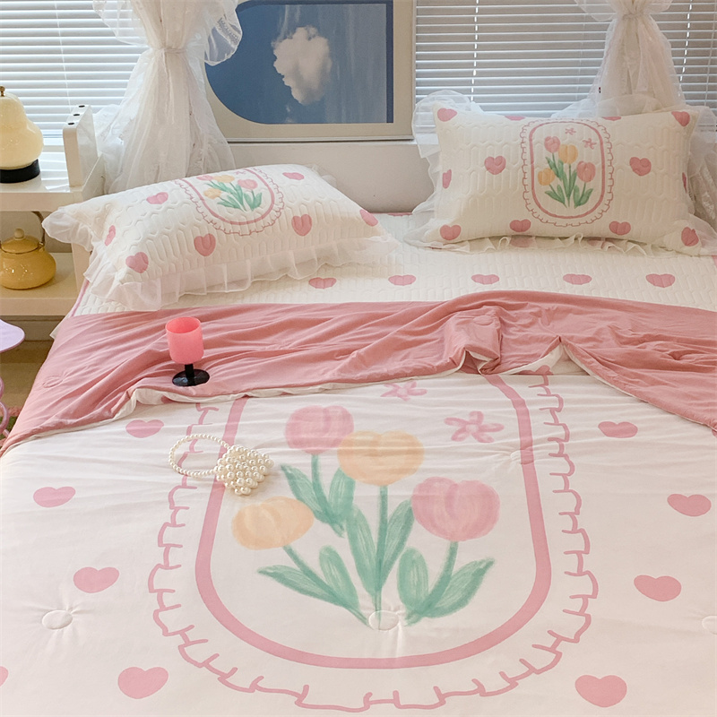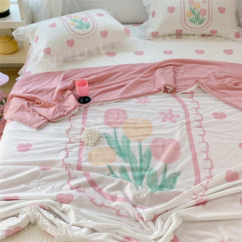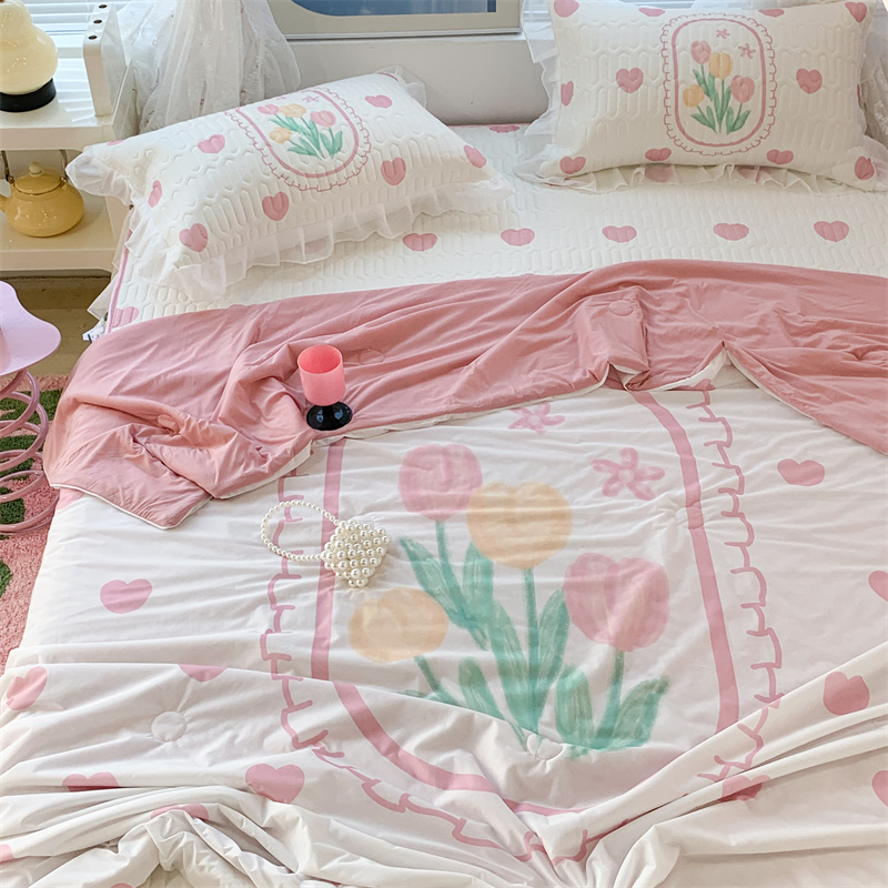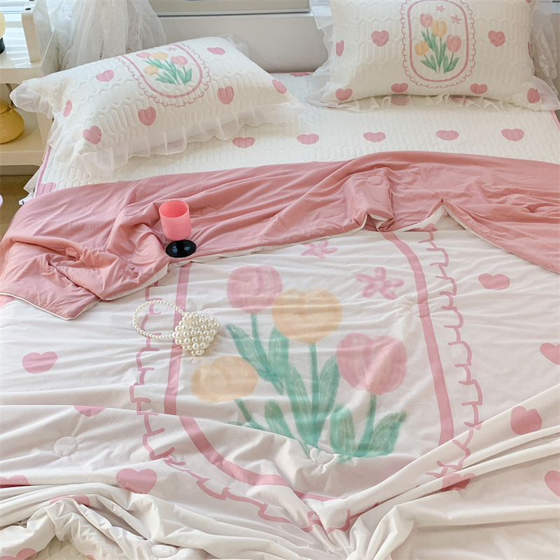 商品名称:昔可 大版数码印花凉感夏被 粉爱心郁金香