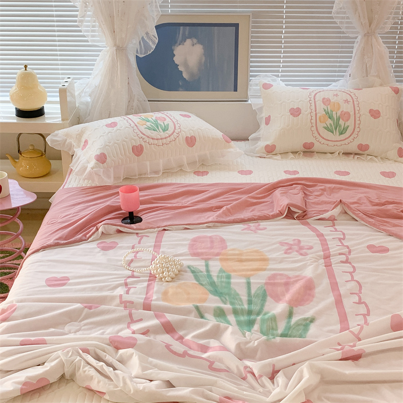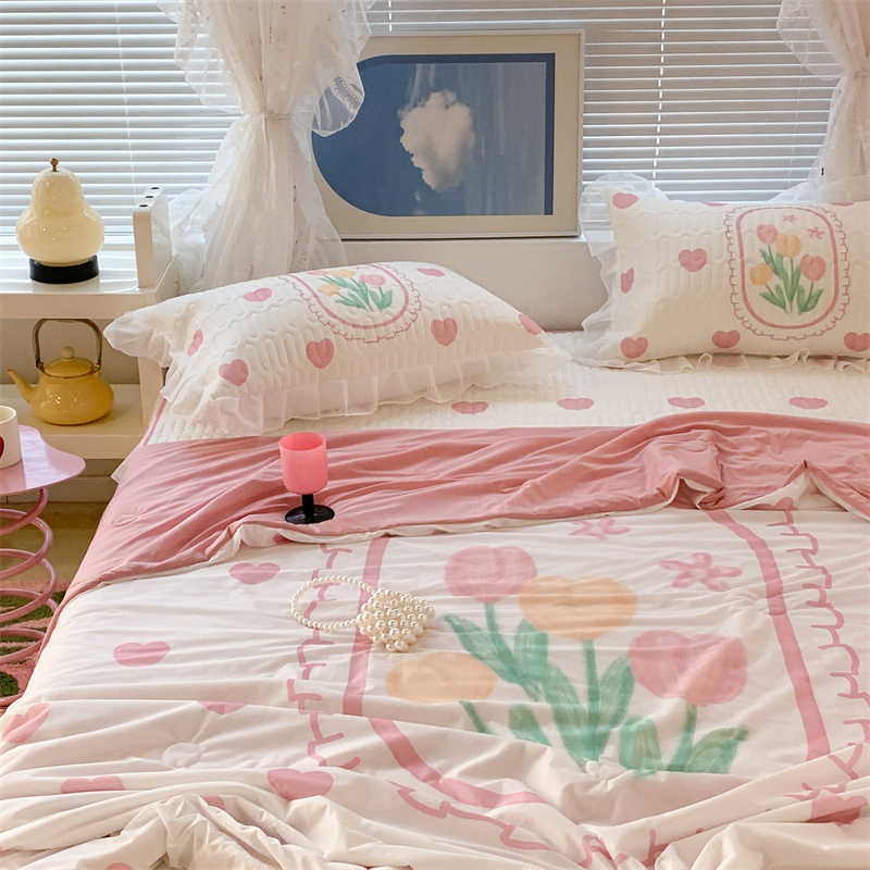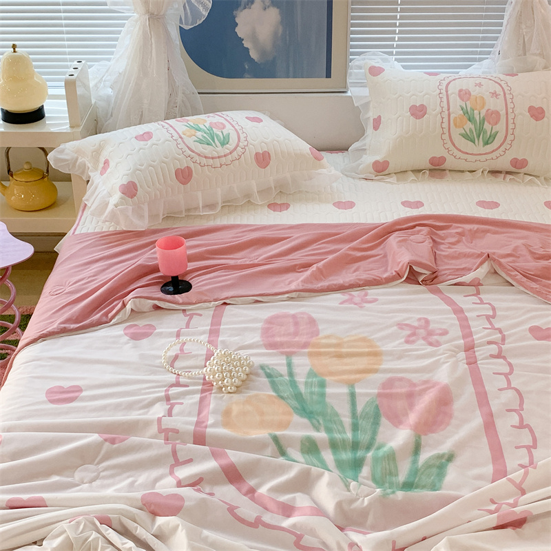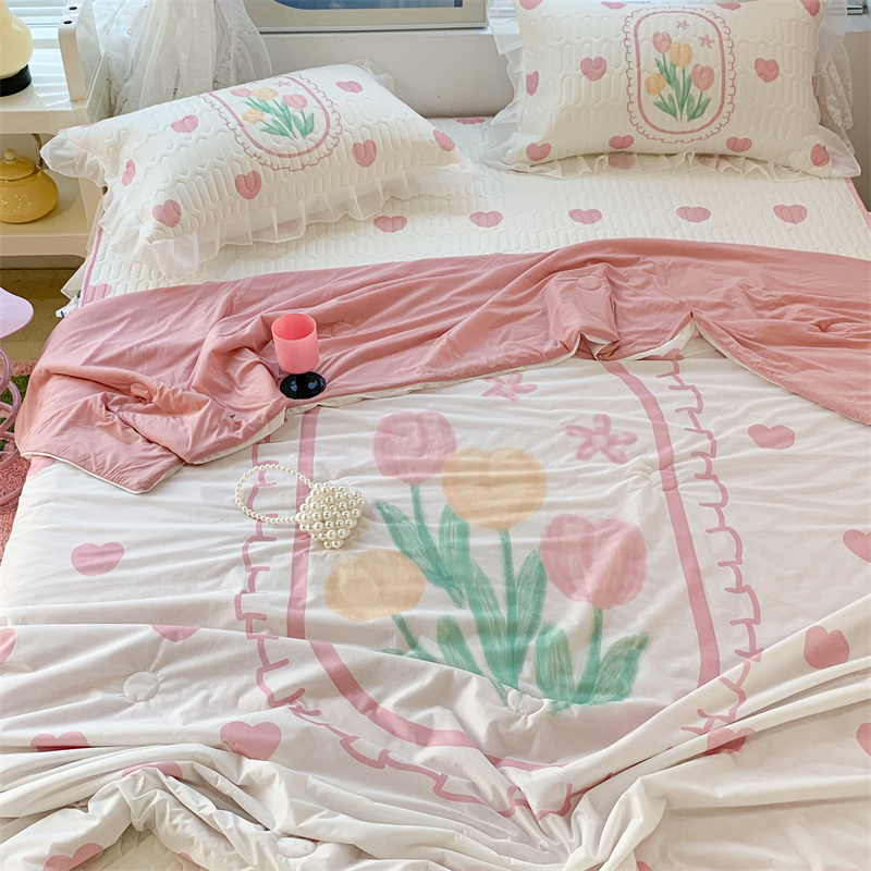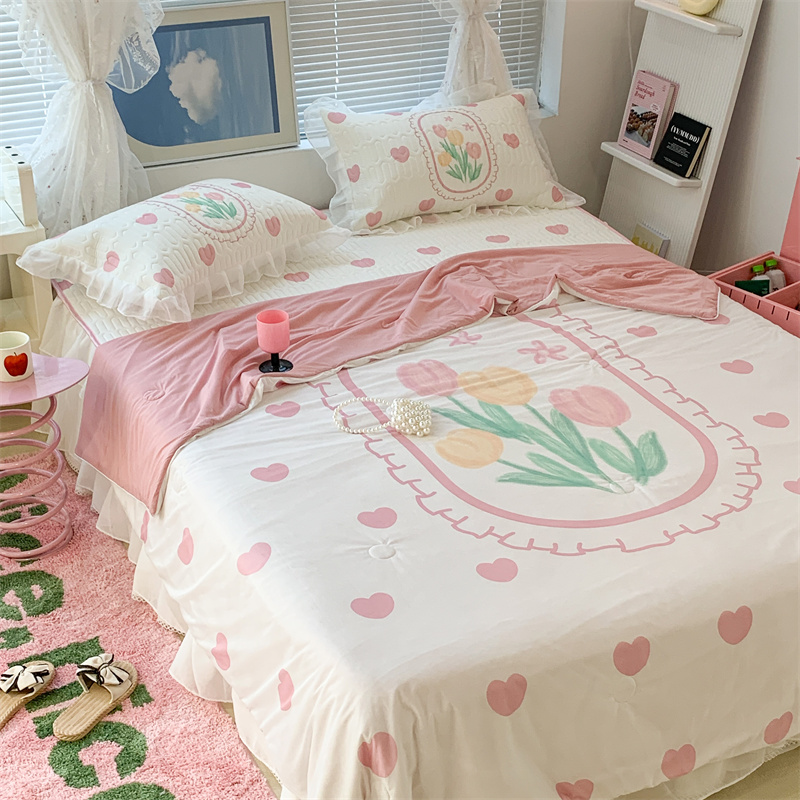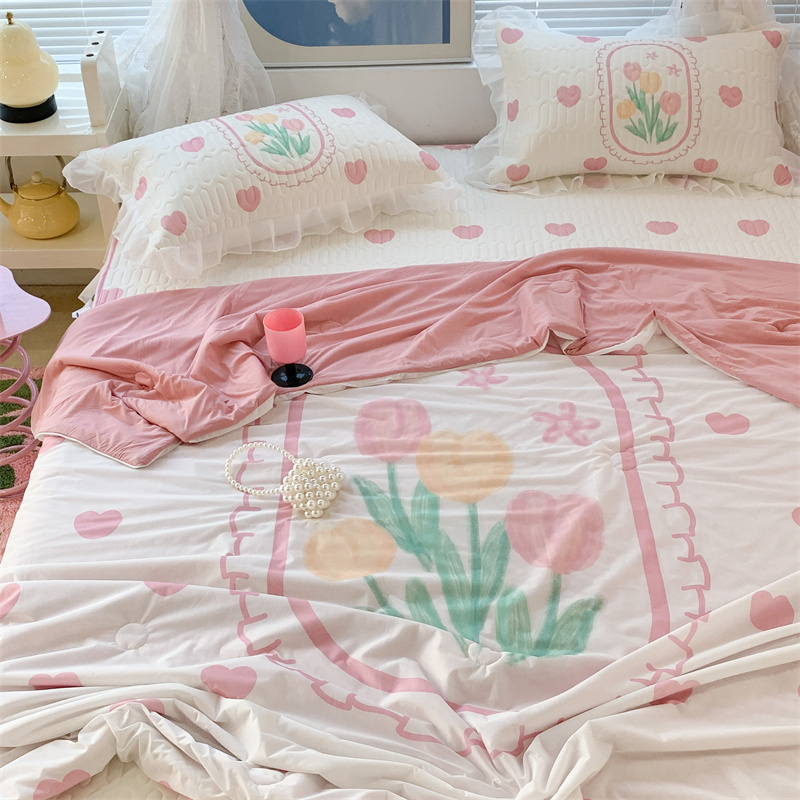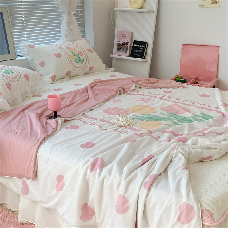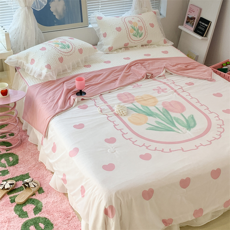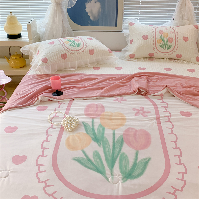 商品名称:昔可 大版数码印花凉感夏被 粉爱心郁金香