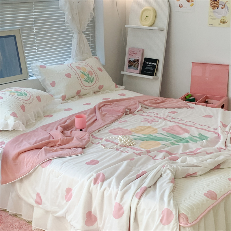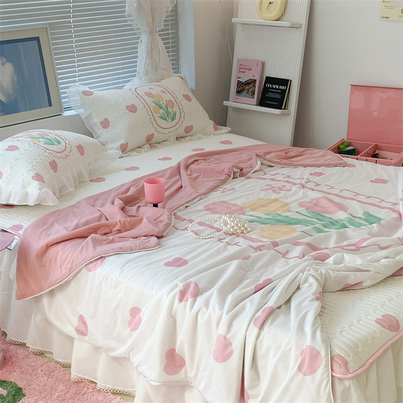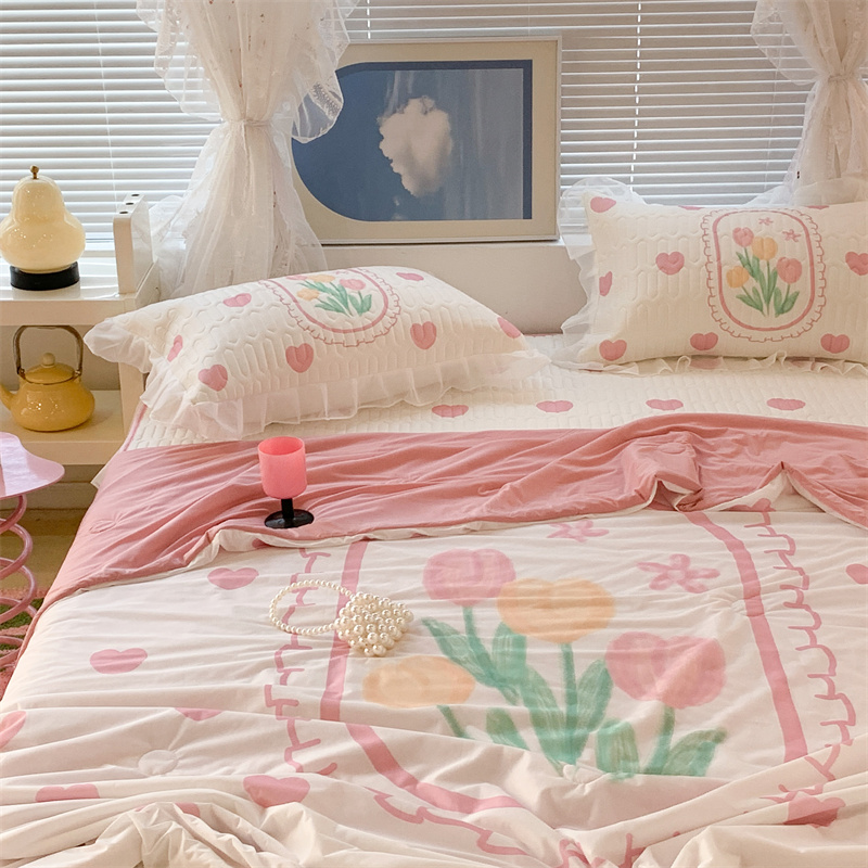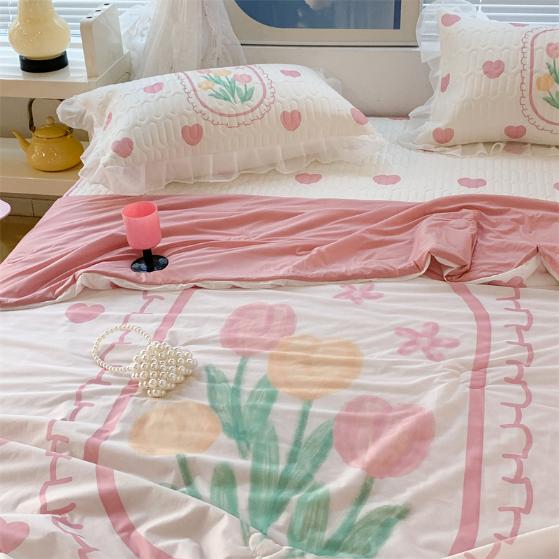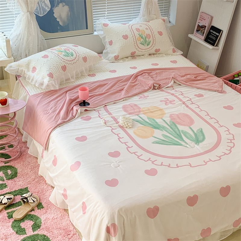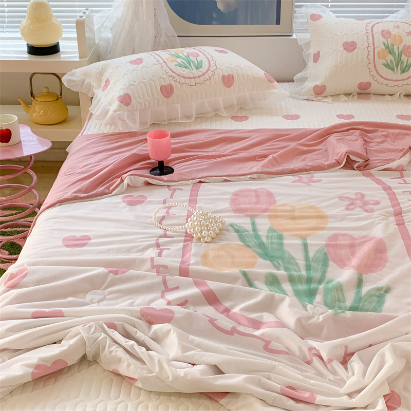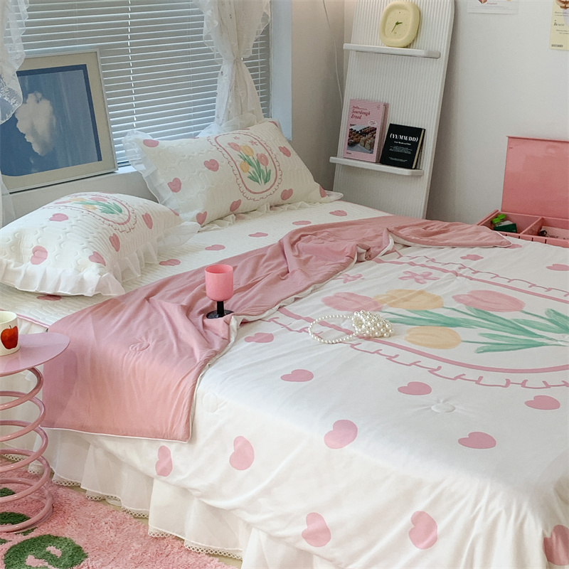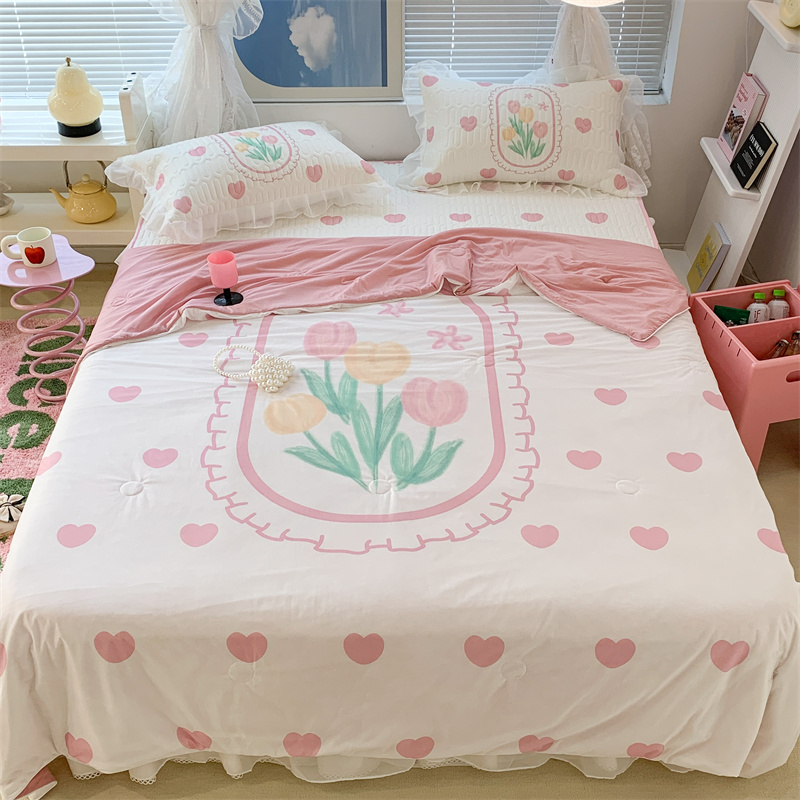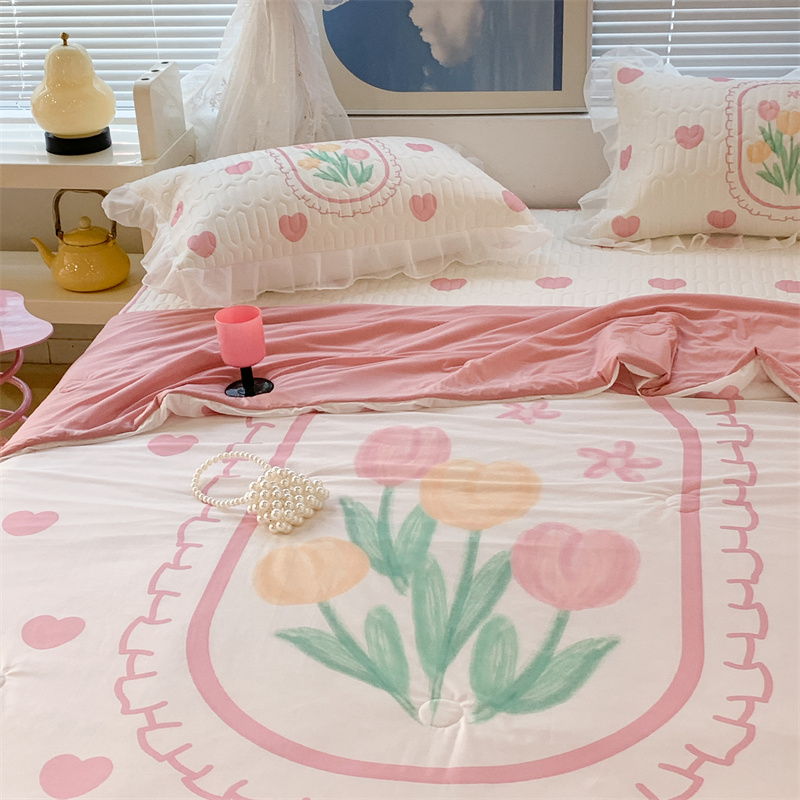 商品名称:昔可 大版数码印花凉感夏被 粉爱心郁金香