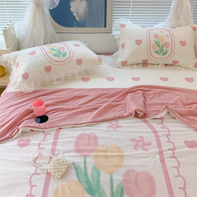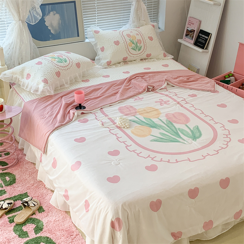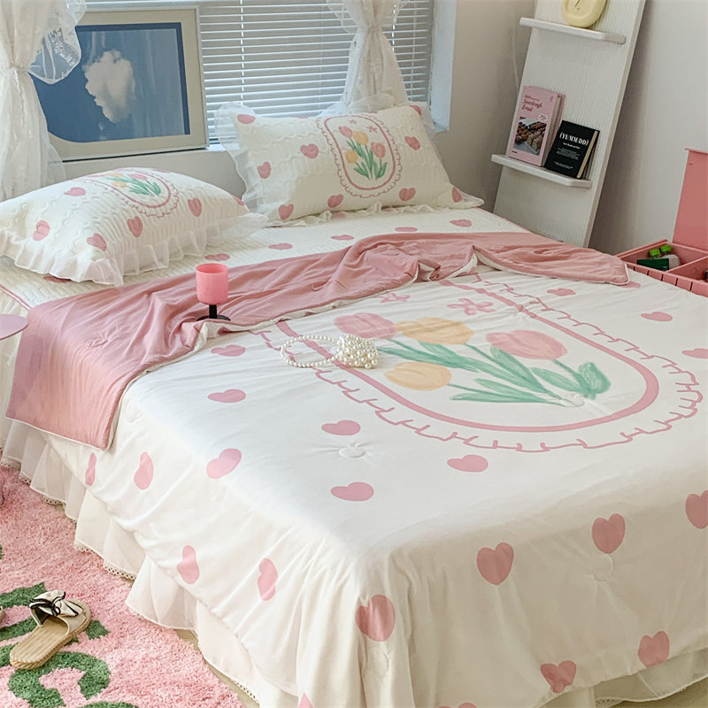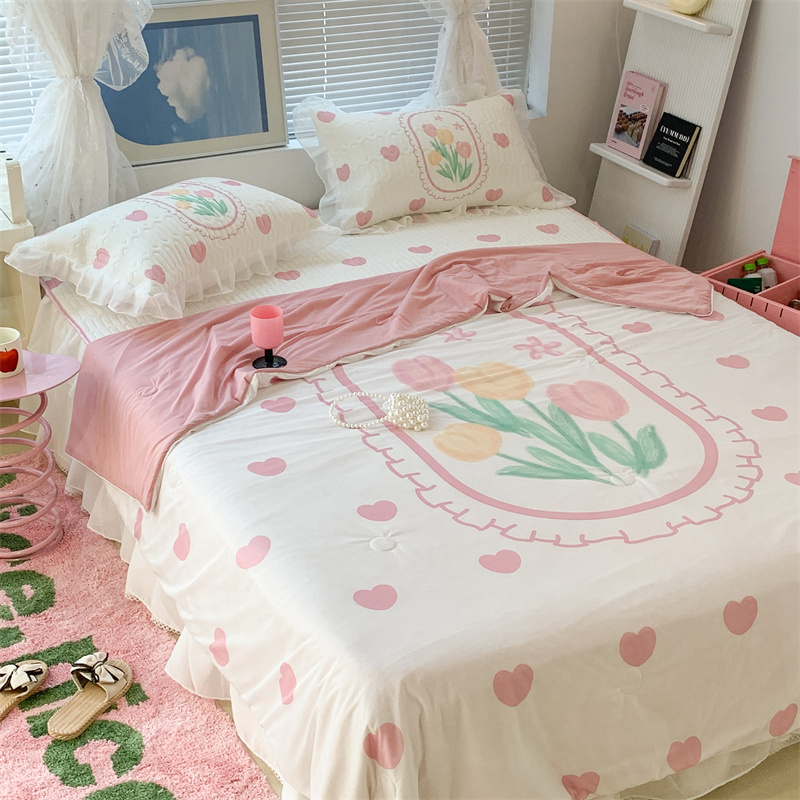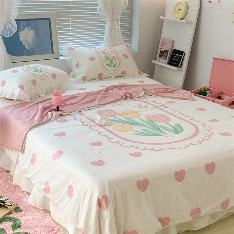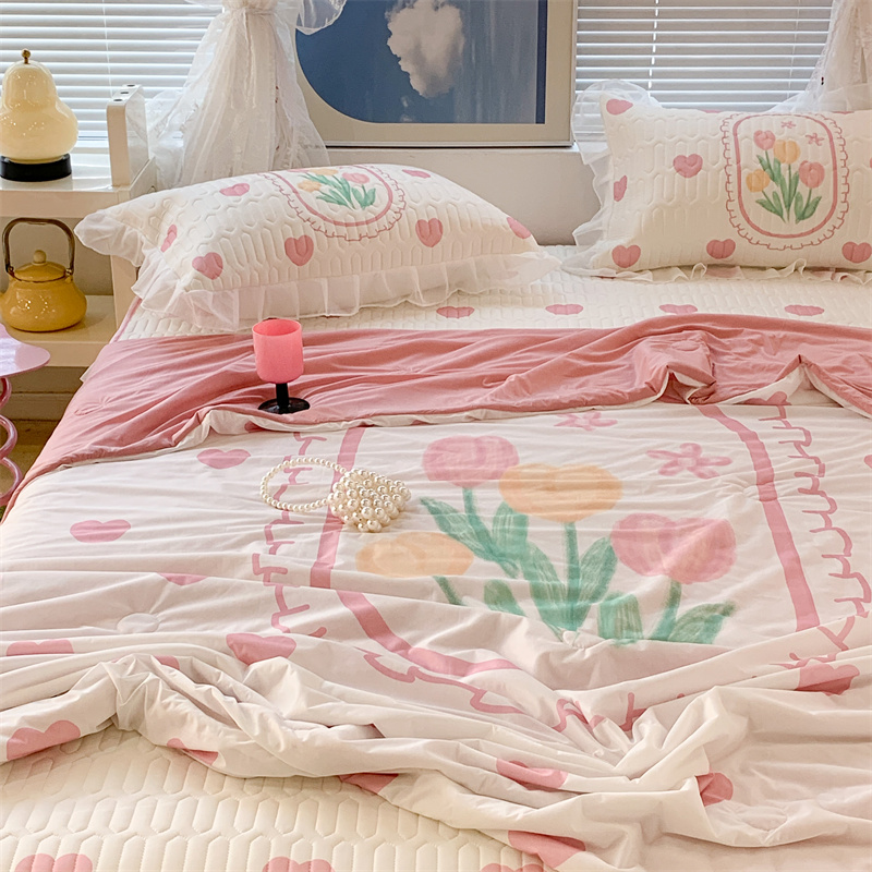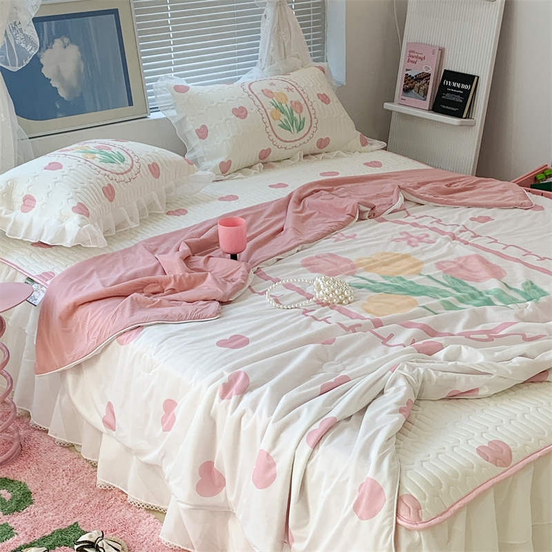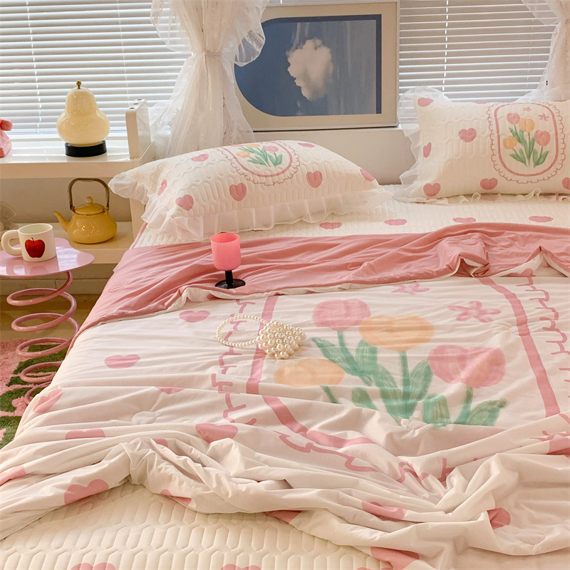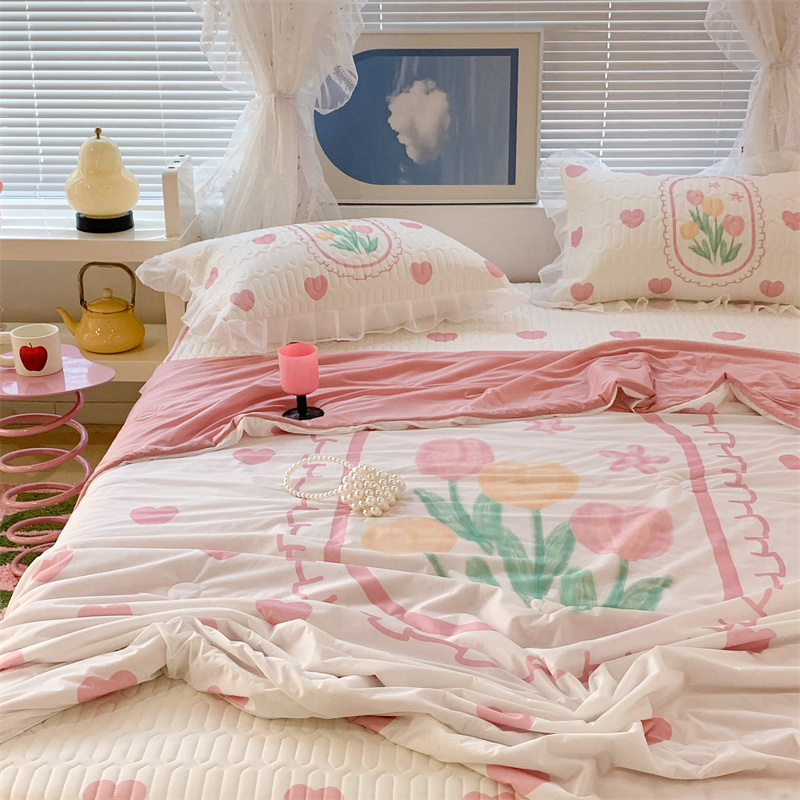 商品名称:昔可 大版数码印花凉感夏被 粉爱心郁金香