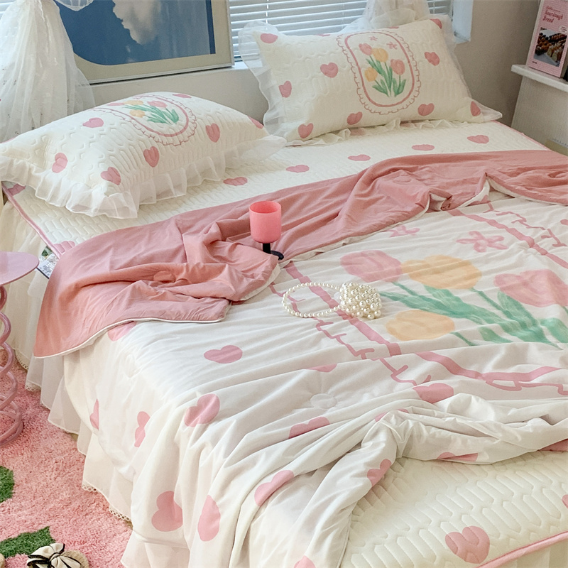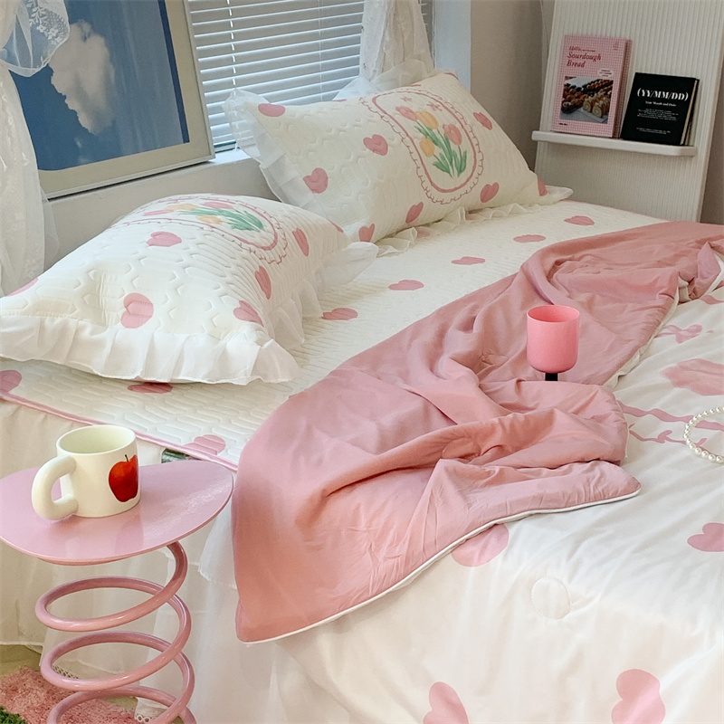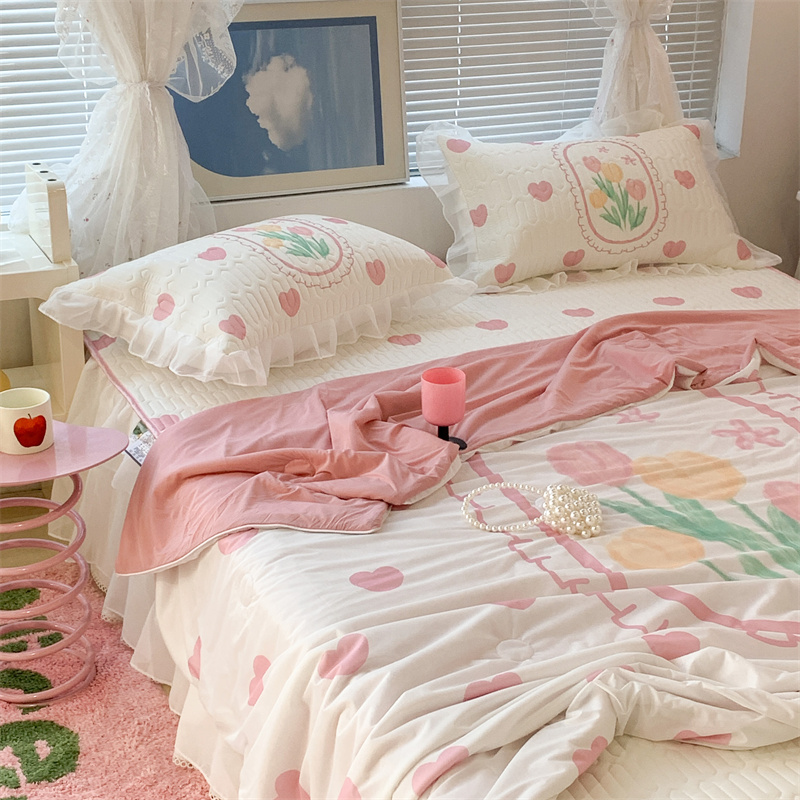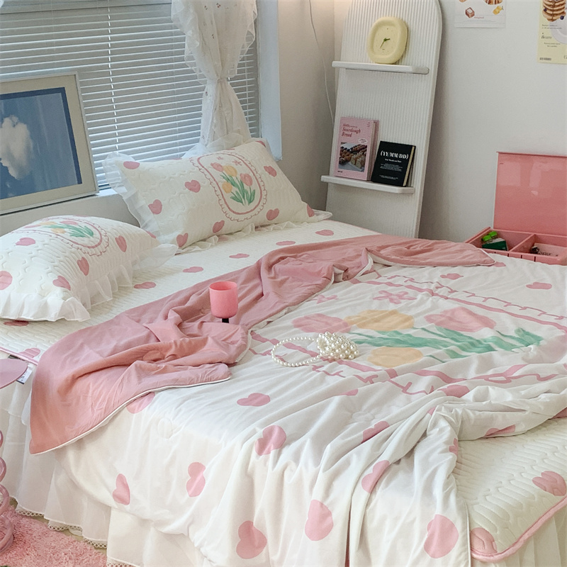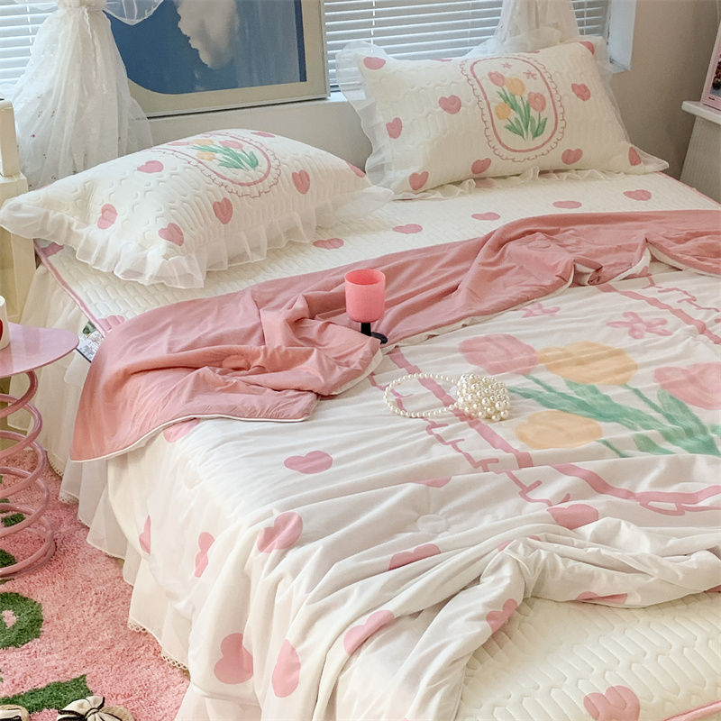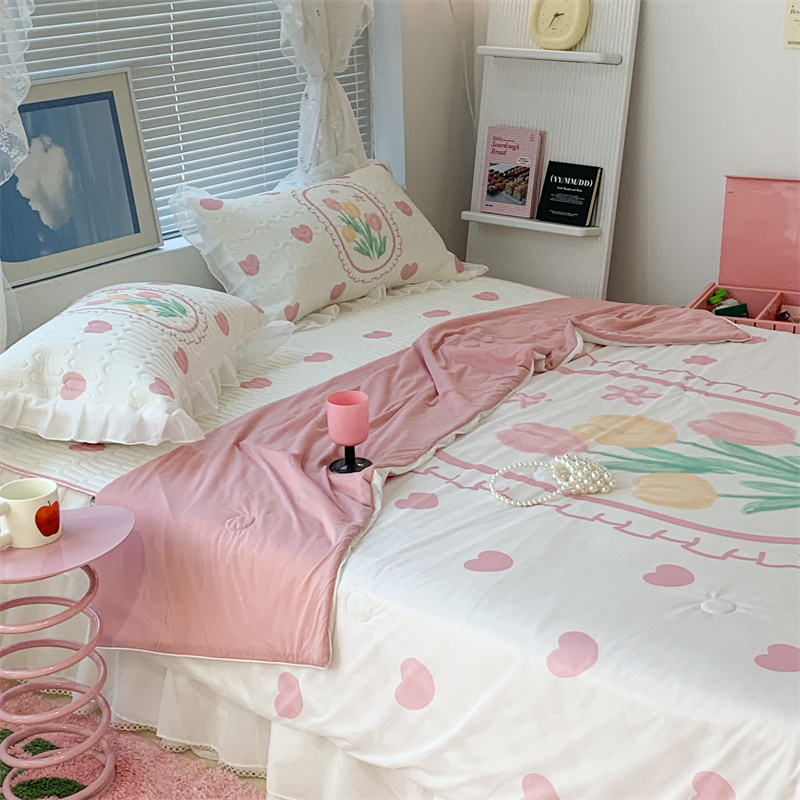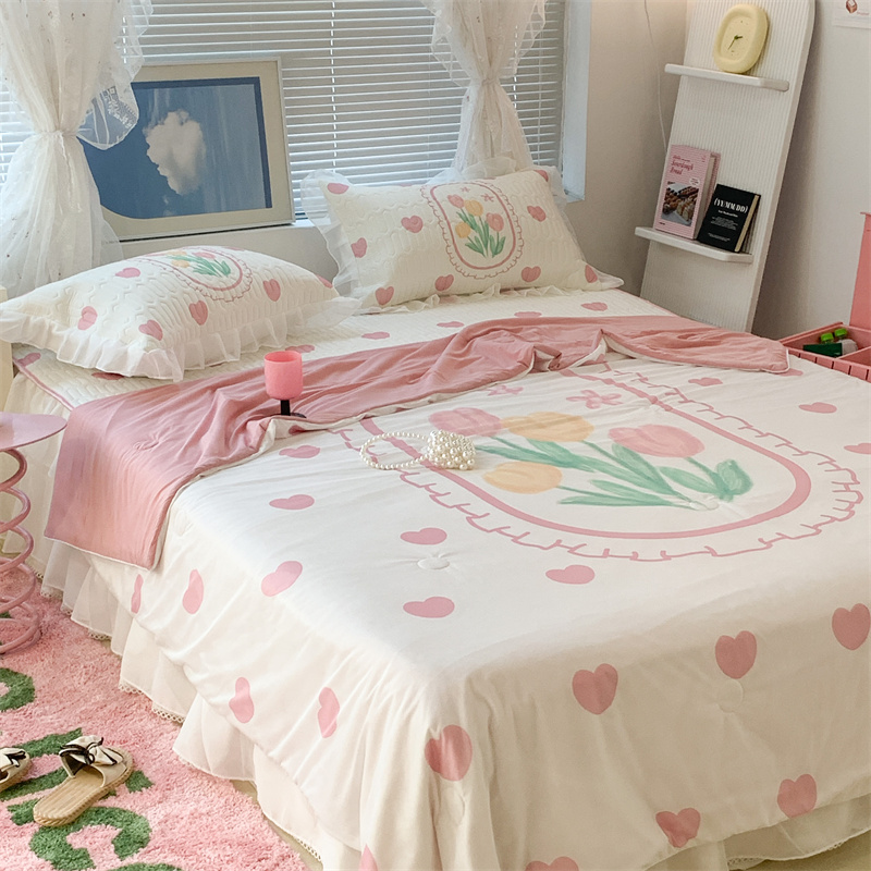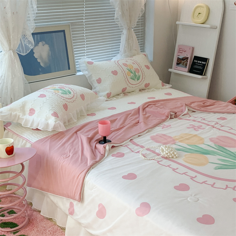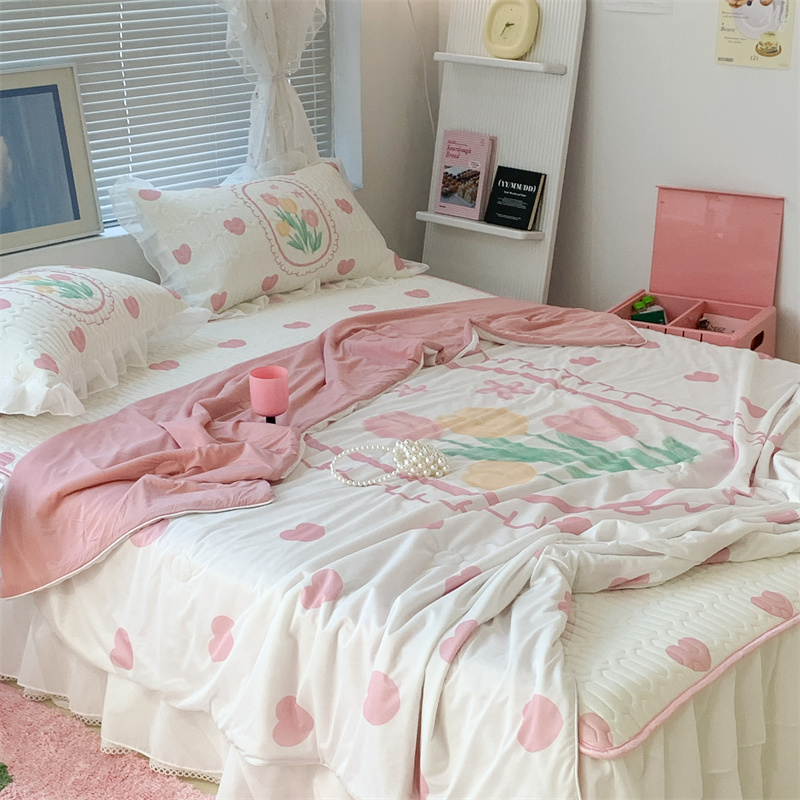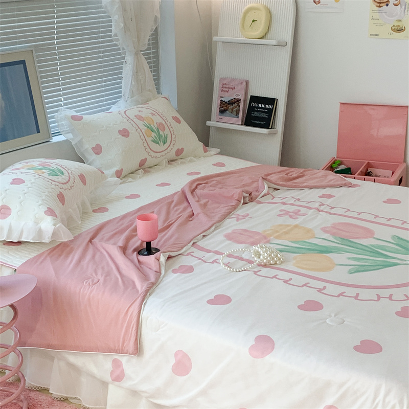 商品名称:昔可 大版数码印花凉感夏被 粉爱心郁金香