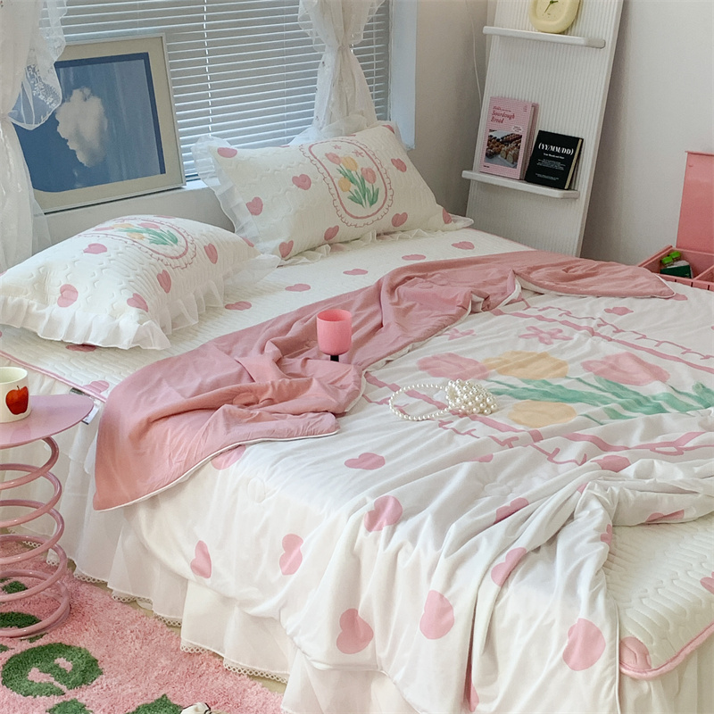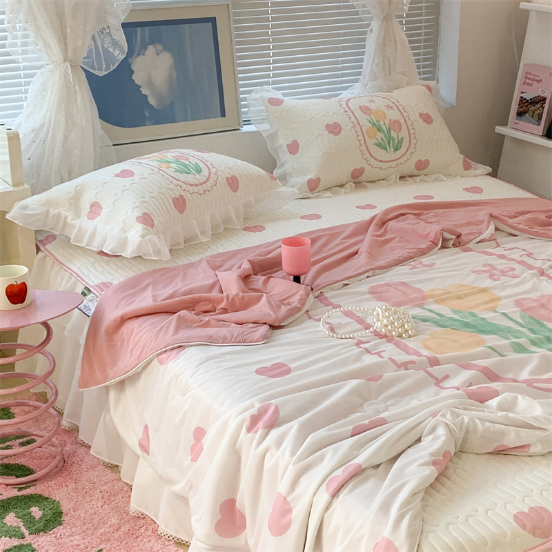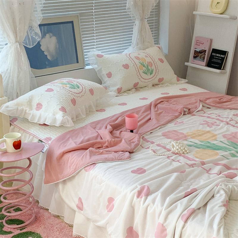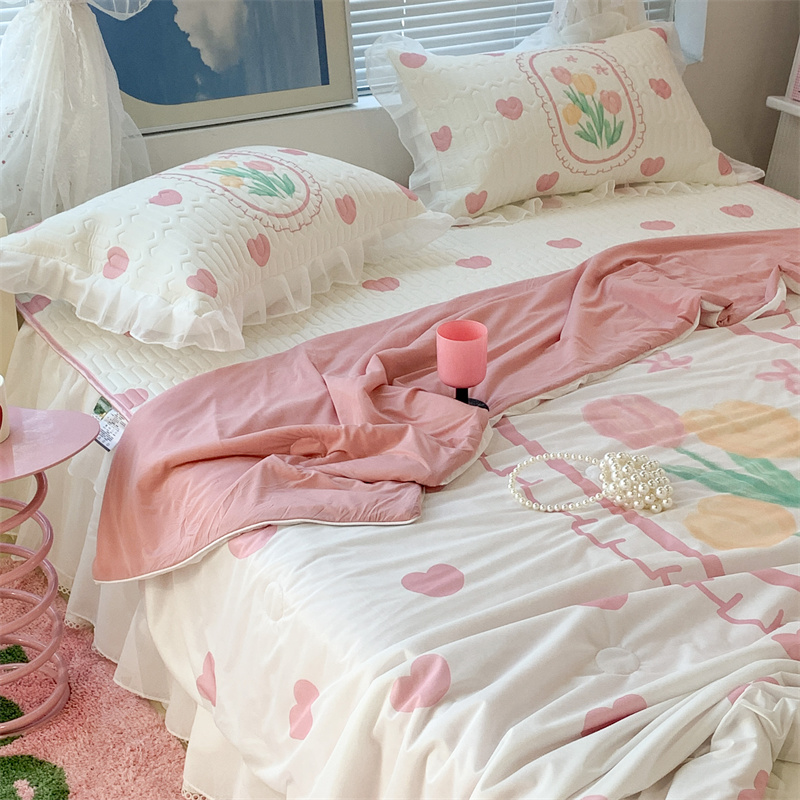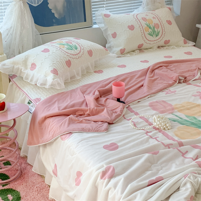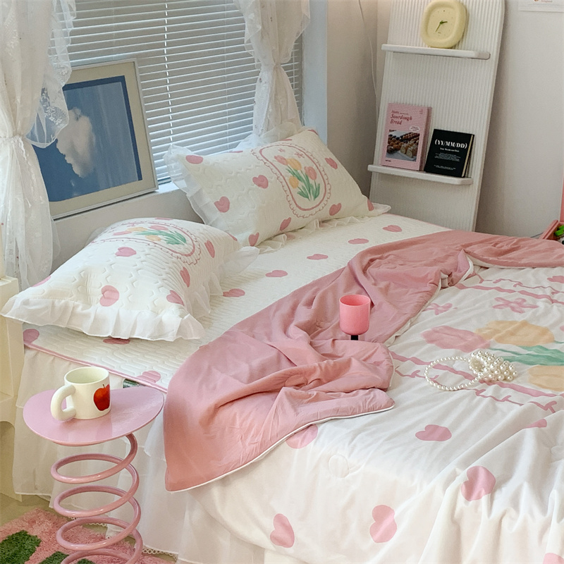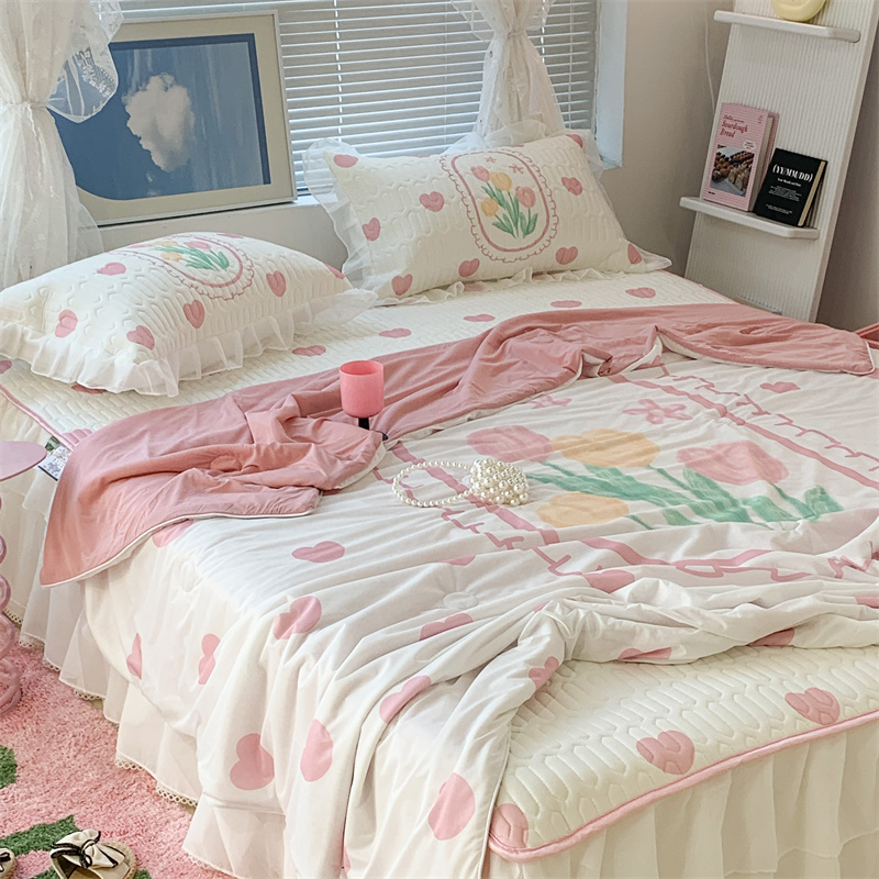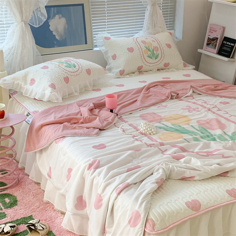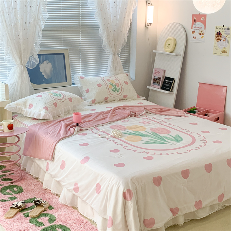 商品名称:昔可 大版数码印花凉感夏被 粉爱心郁金香