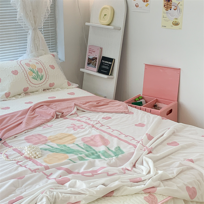 昔可 大版数码印花凉感夏被 粉爱心郁金香