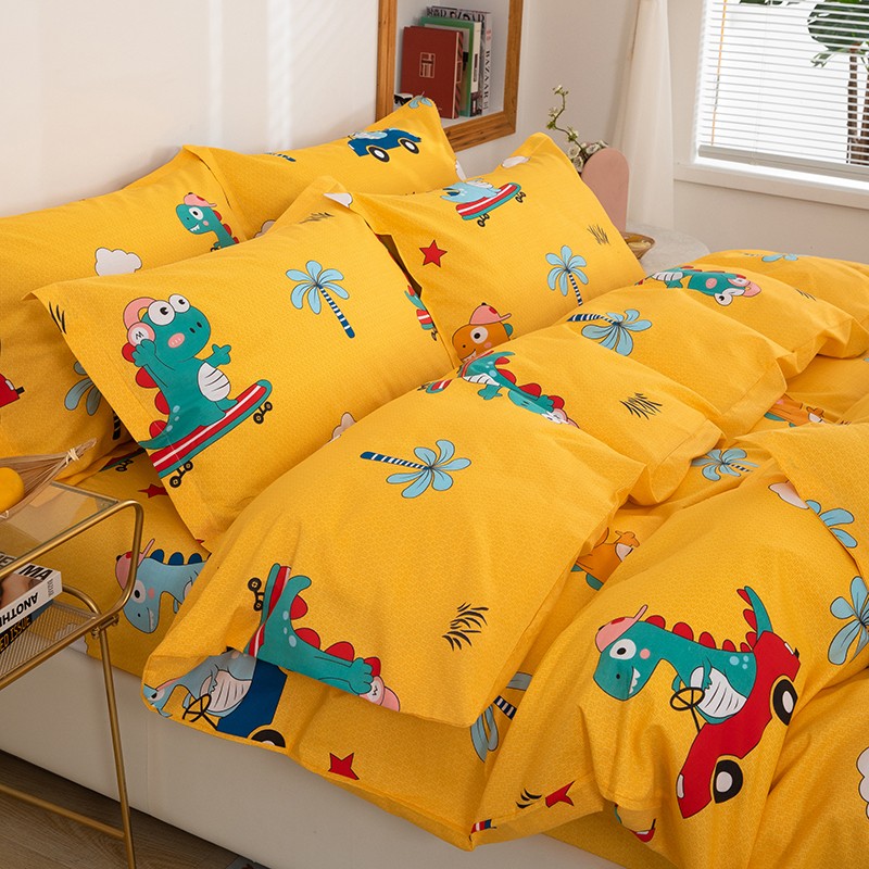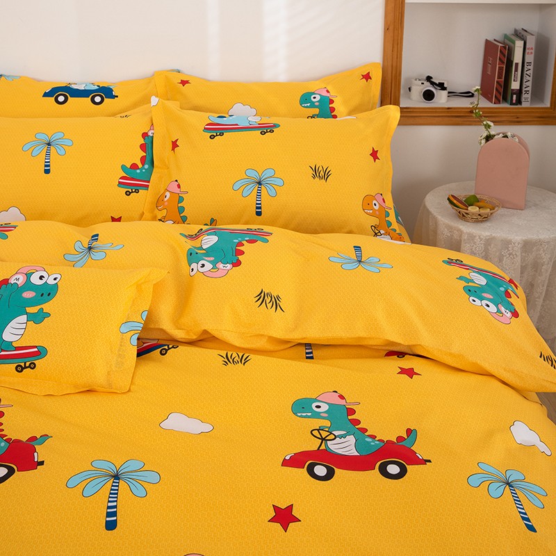 雨萝家纺 2020新款纯棉印花四件套 恐龙秘境-黄