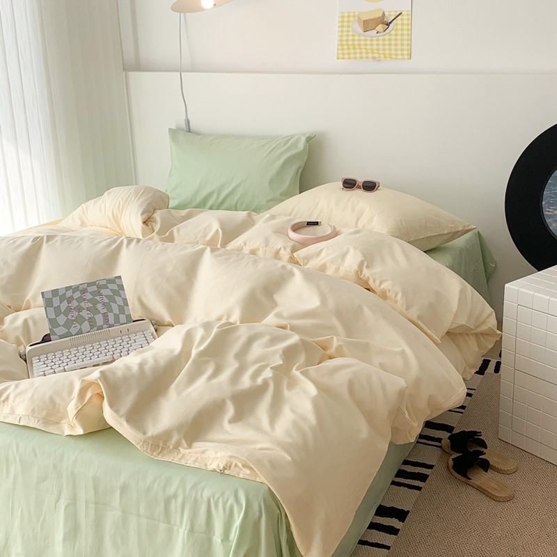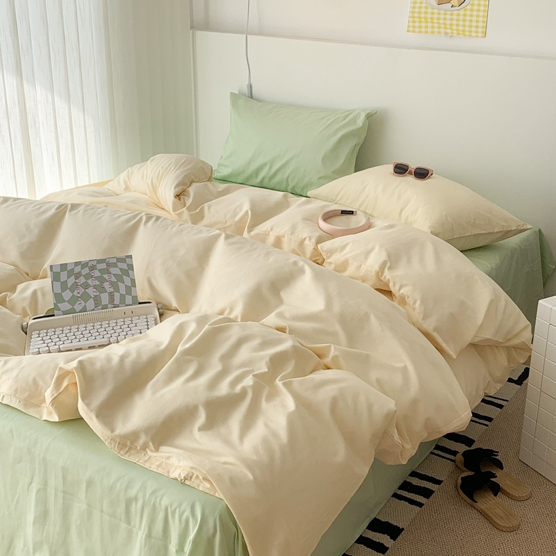 (总)昔可 2023新款全棉ins格子混搭系列四件套,ins简约绿格,粉蓝格,开心果格,学院格纹,粉绿格,海盐兰格,黄绿格,夏日蓝条,芝士黄条,紫芋泥芝士格