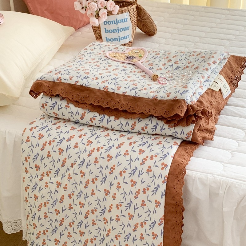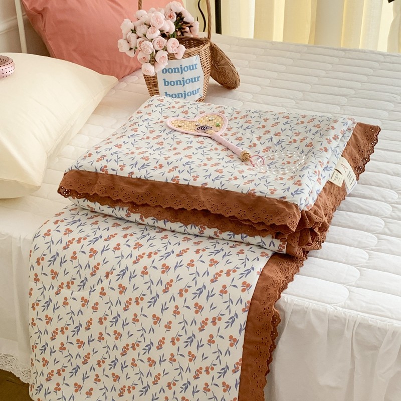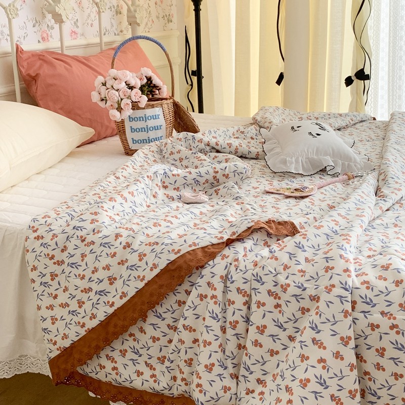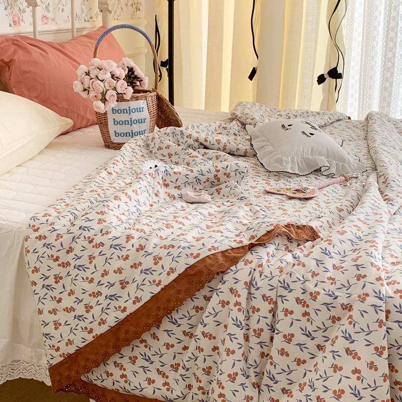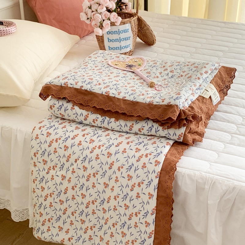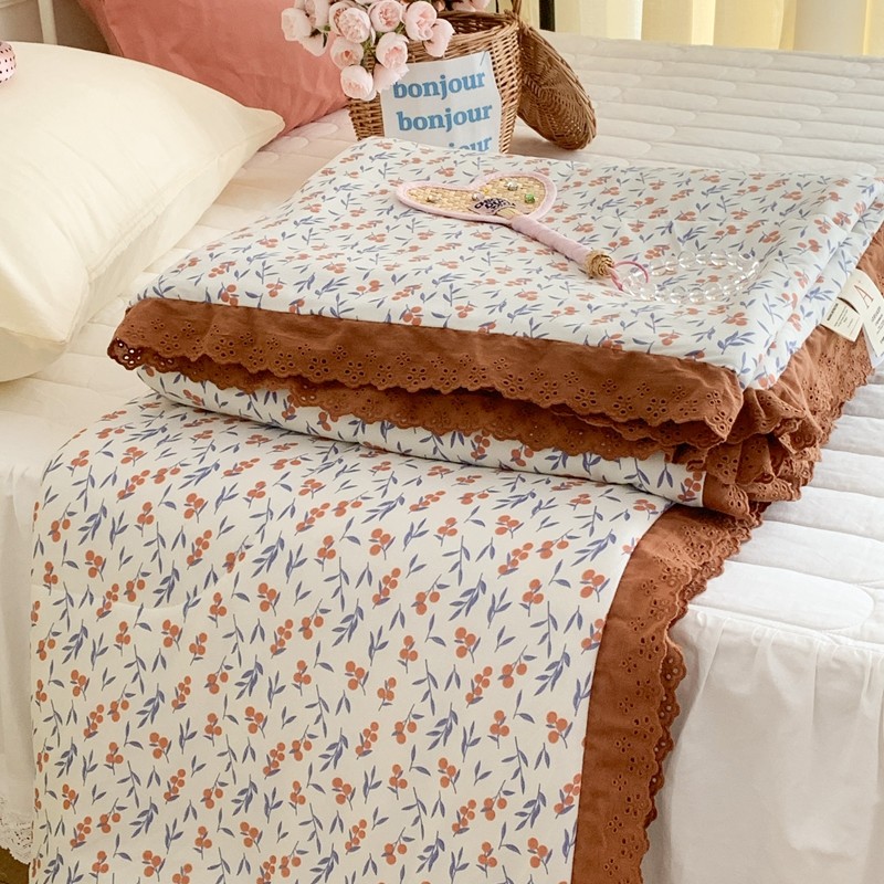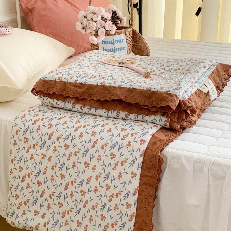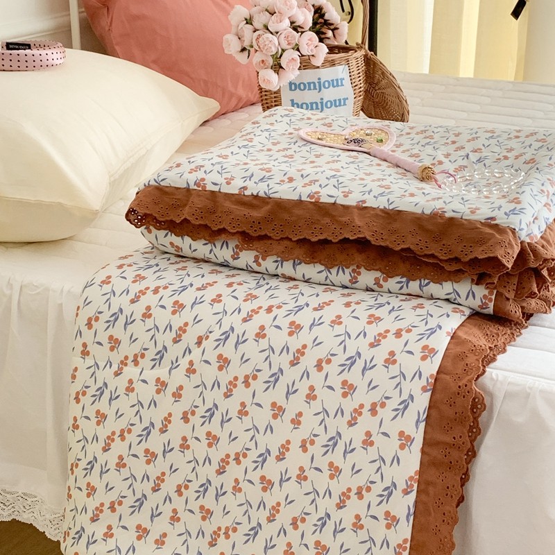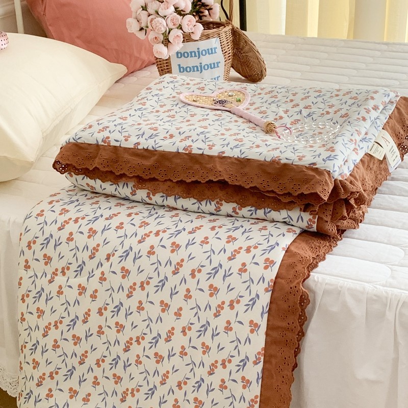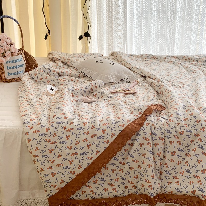 昔可 复古蕾丝花边针织夏被 果园假期