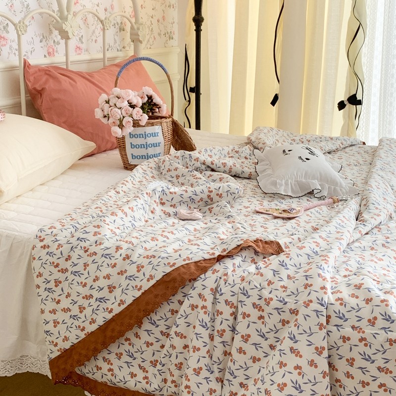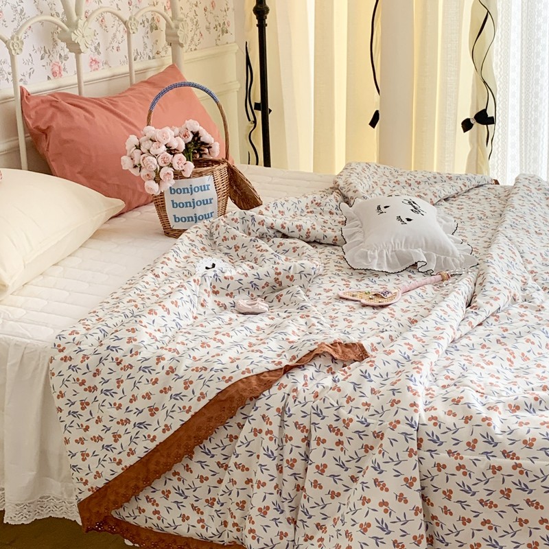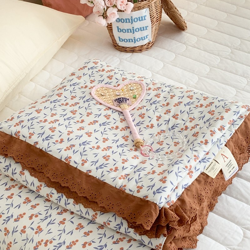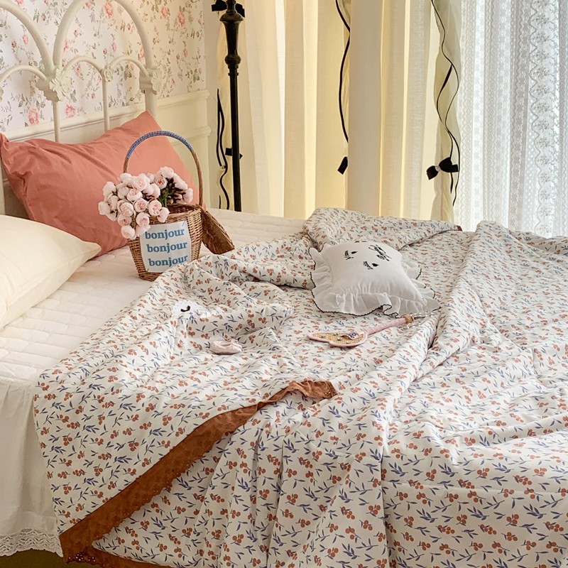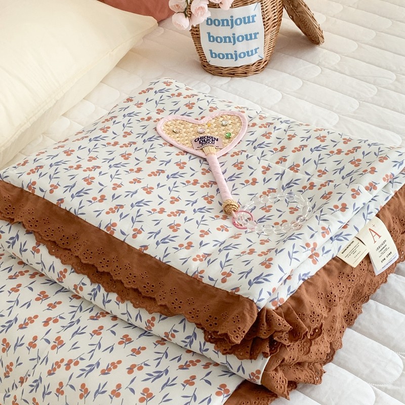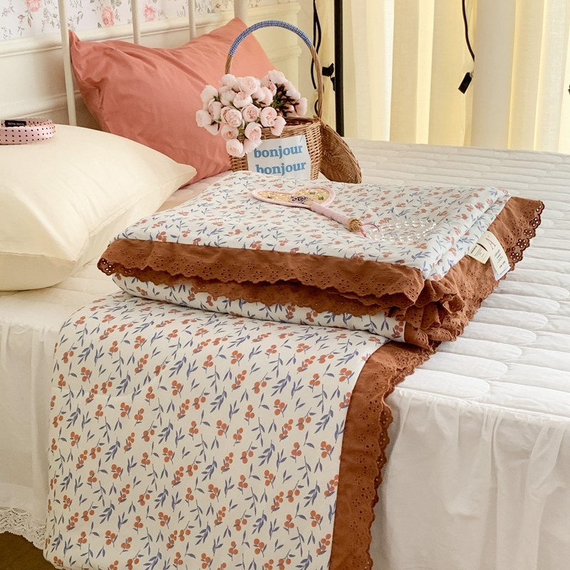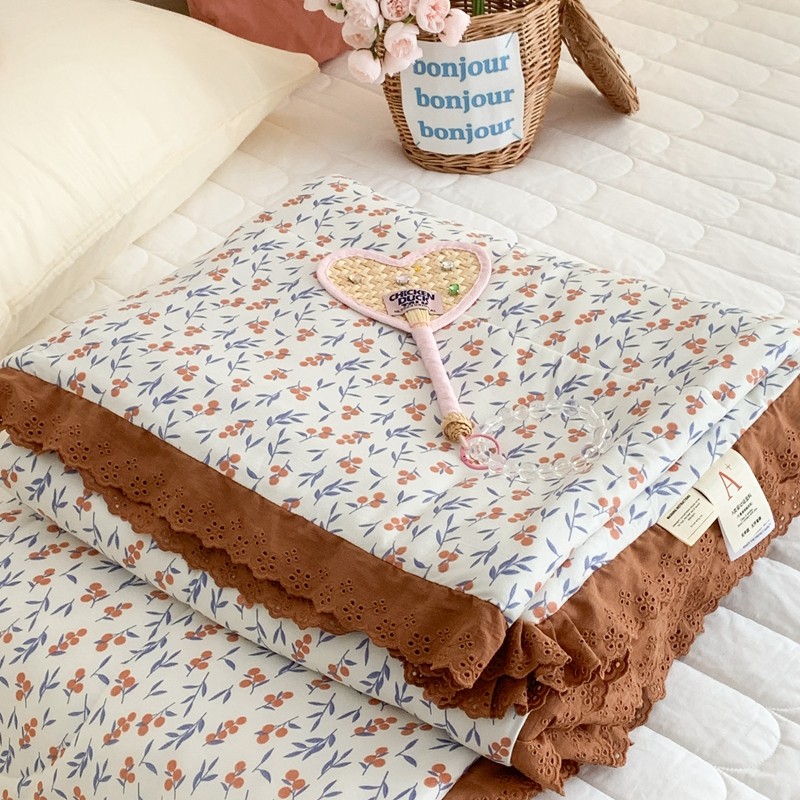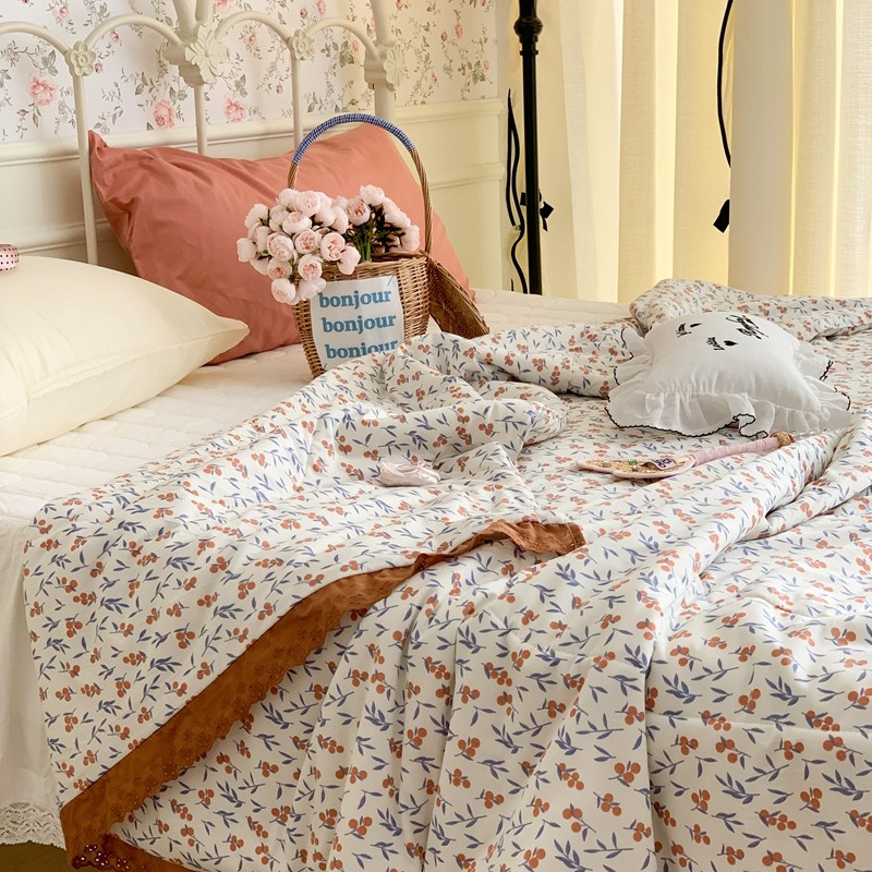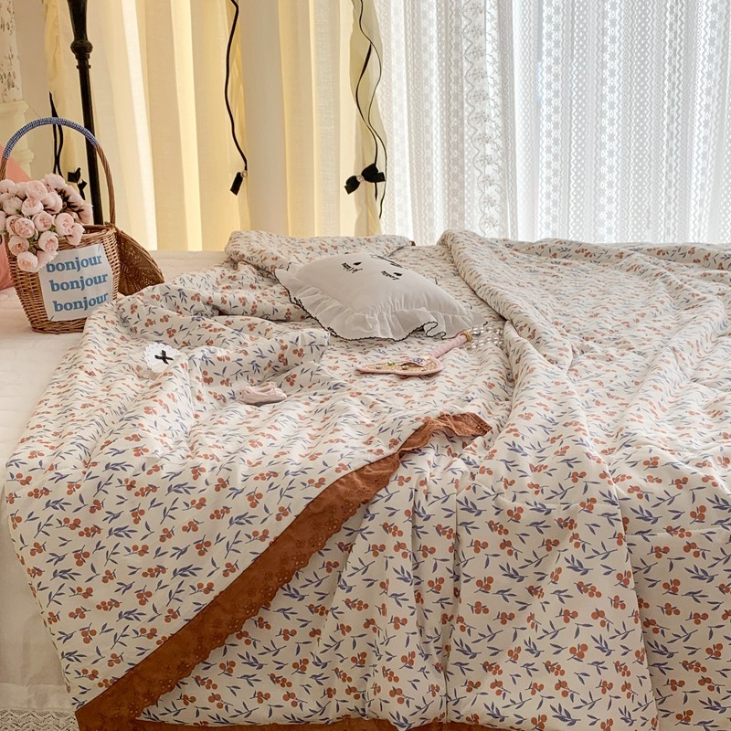昔可 复古蕾丝花边针织夏被 果园假期