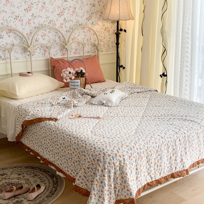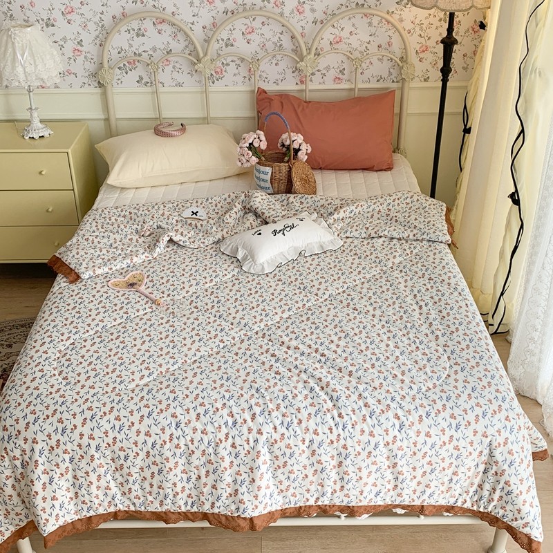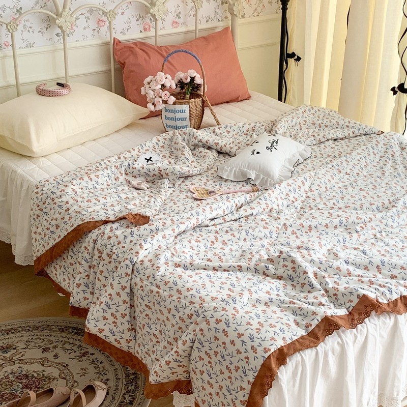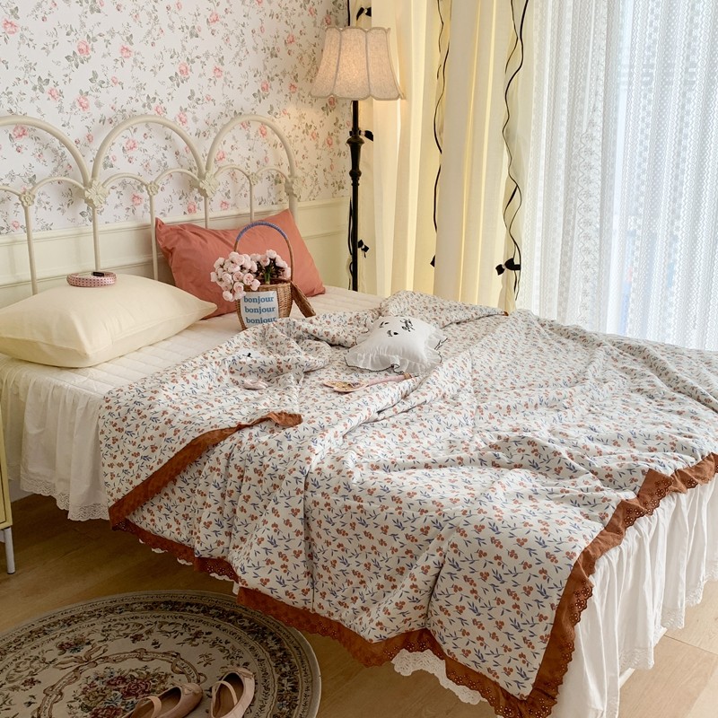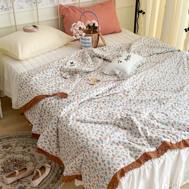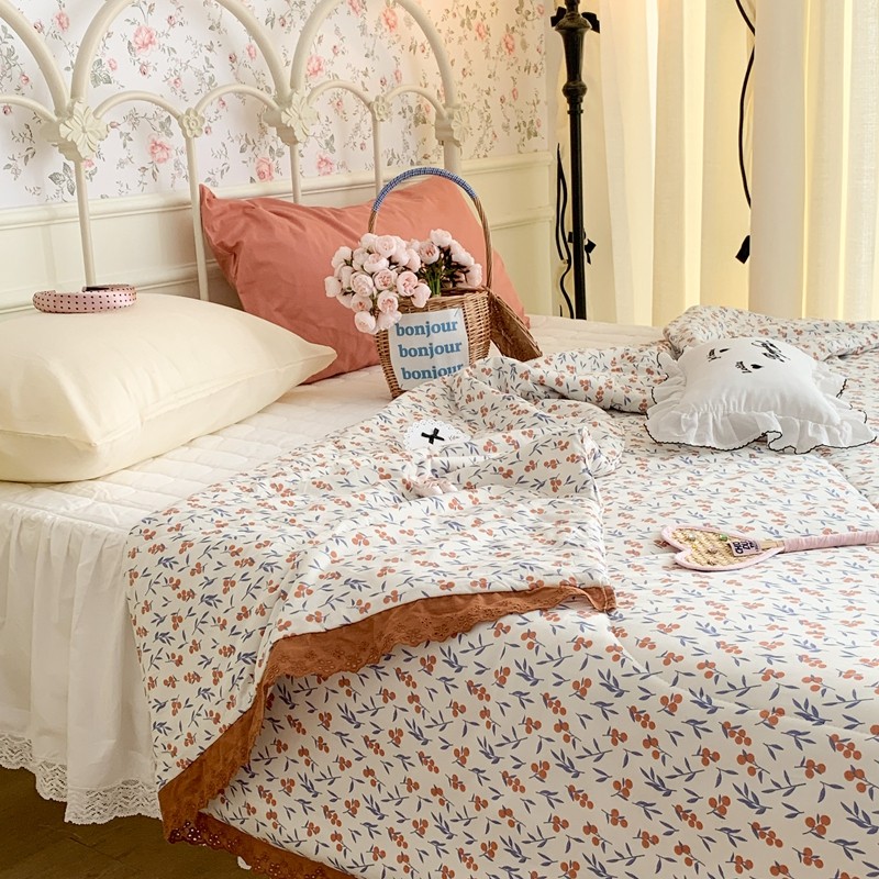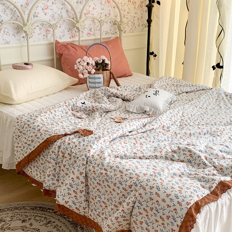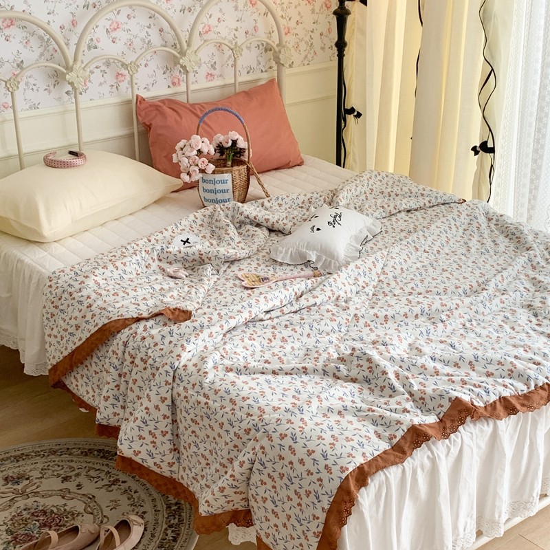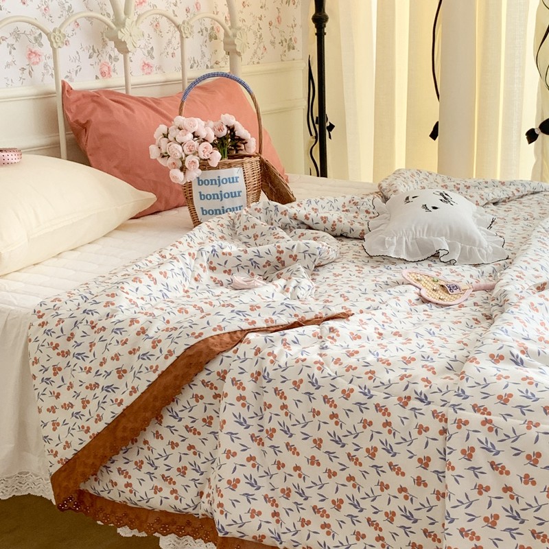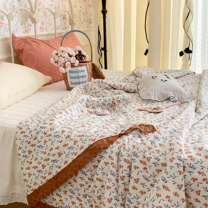 昔可 复古蕾丝花边针织夏被 果园假期
