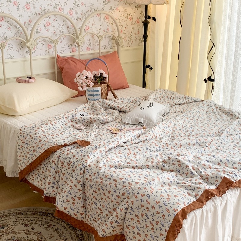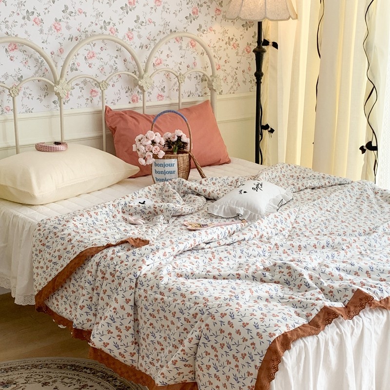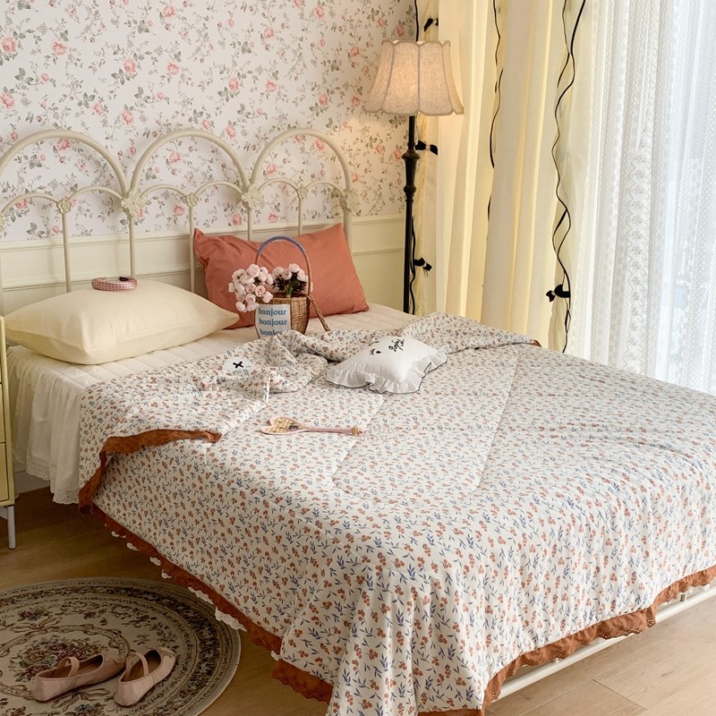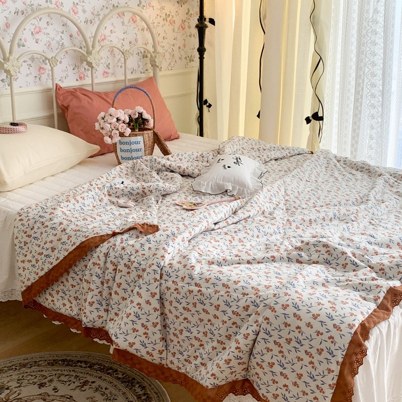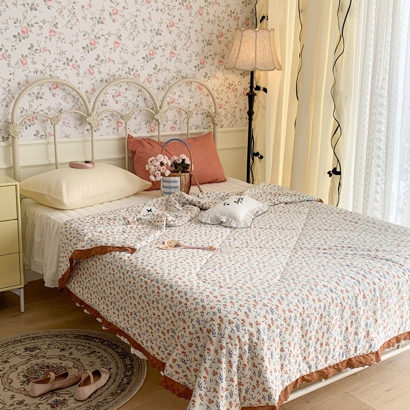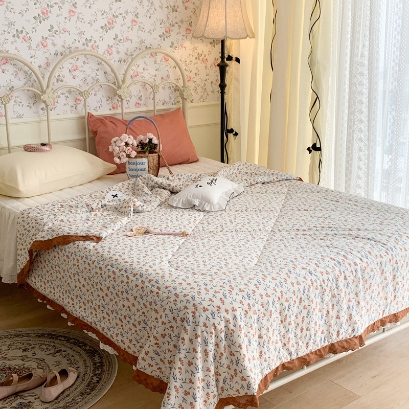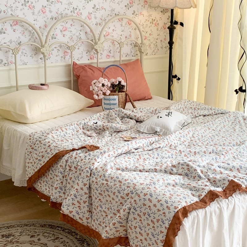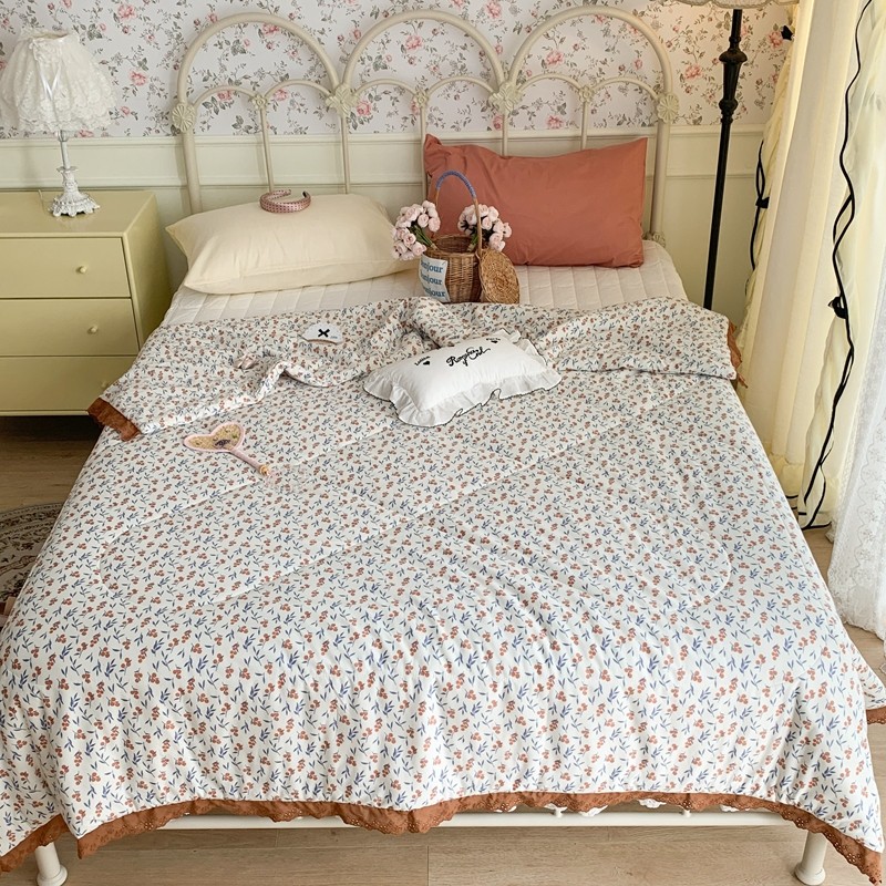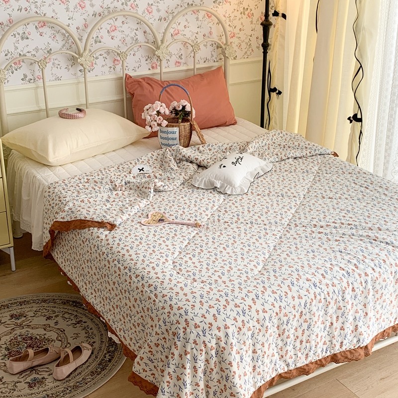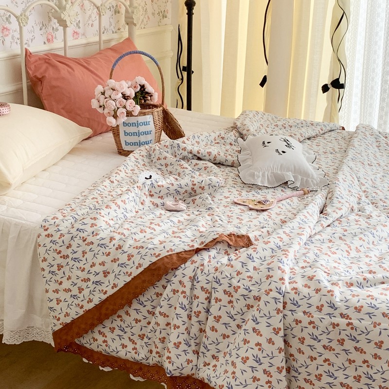 昔可 复古蕾丝花边针织夏被 果园假期