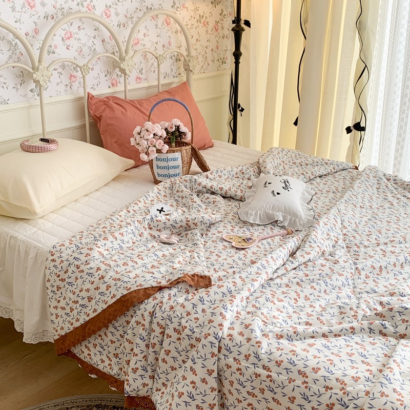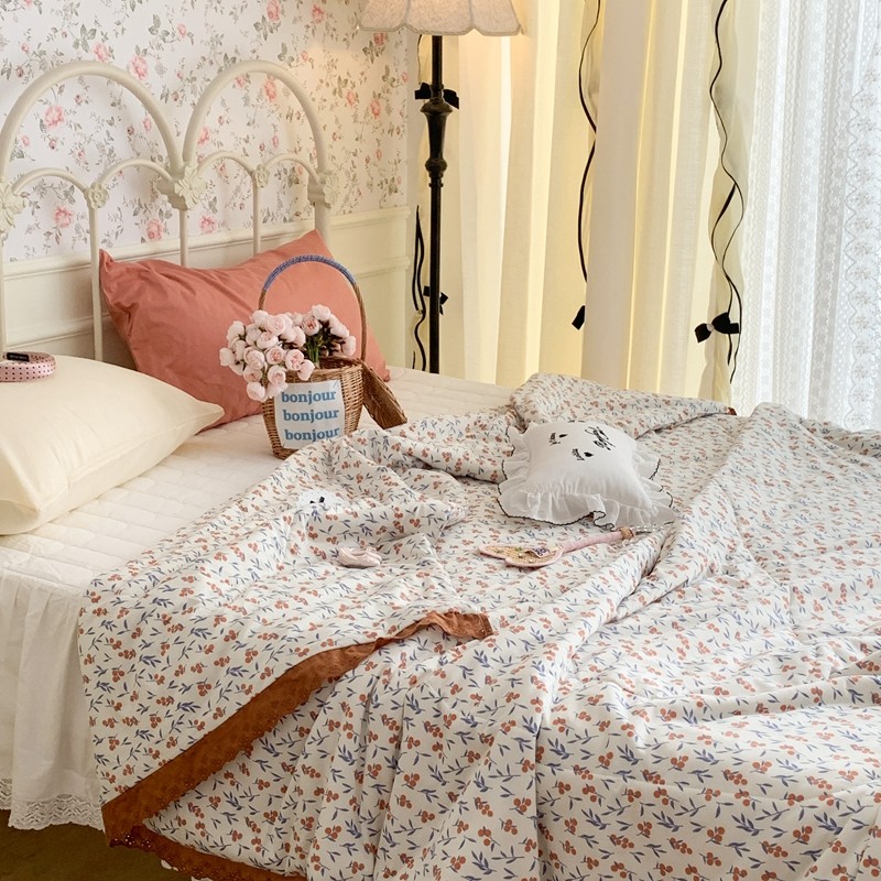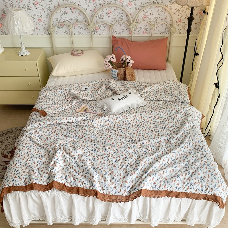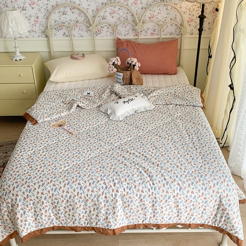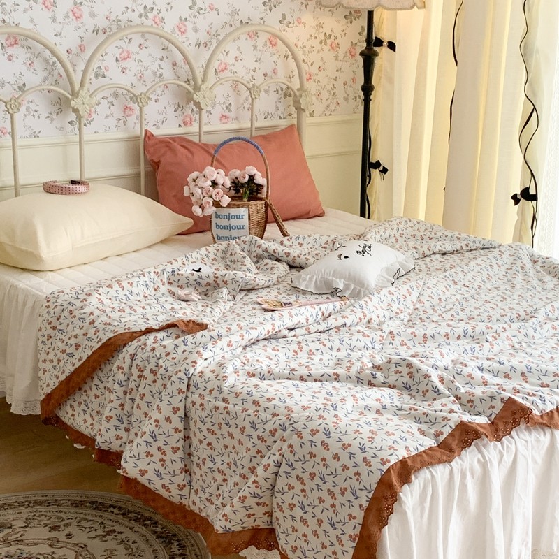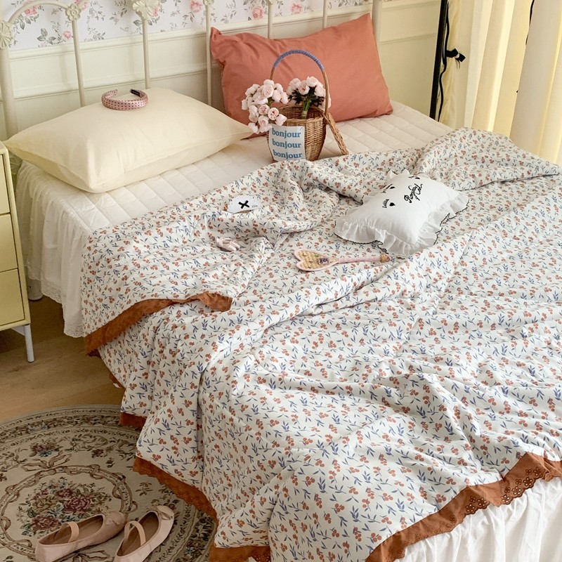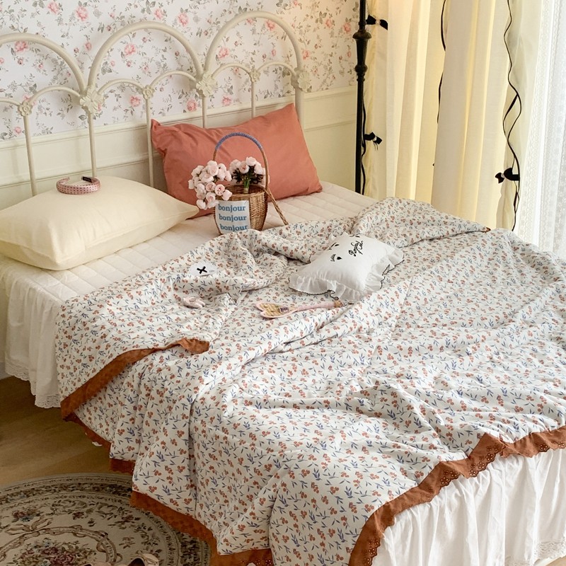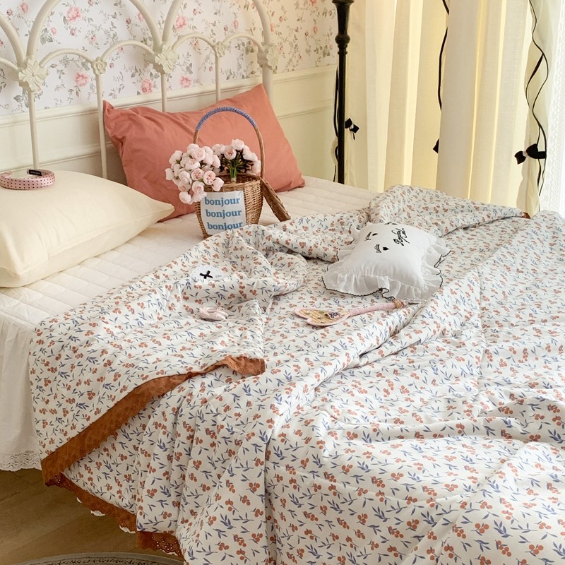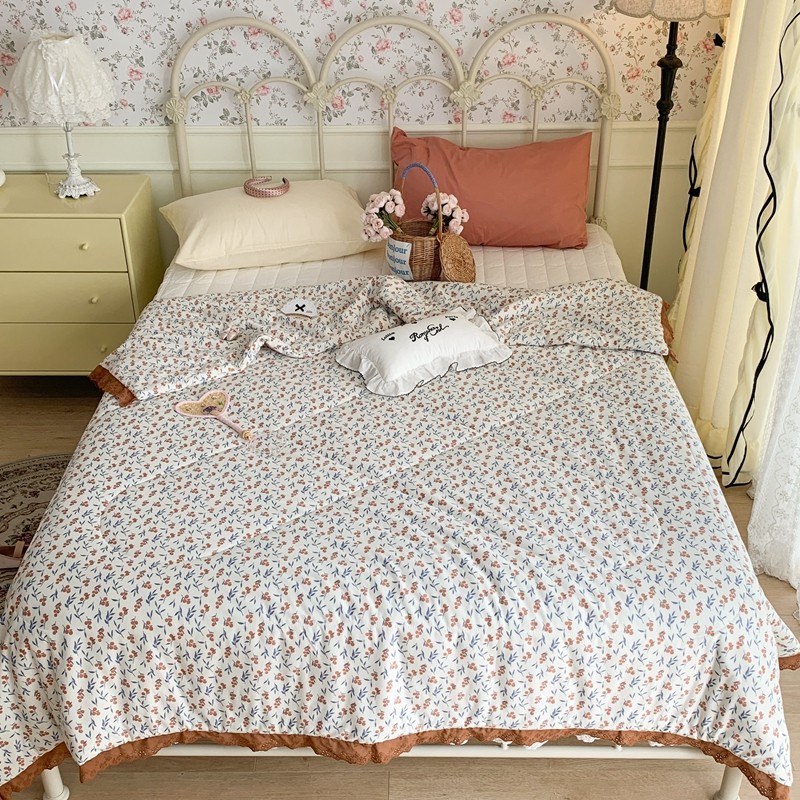 昔可 复古蕾丝花边针织夏被 果园假期