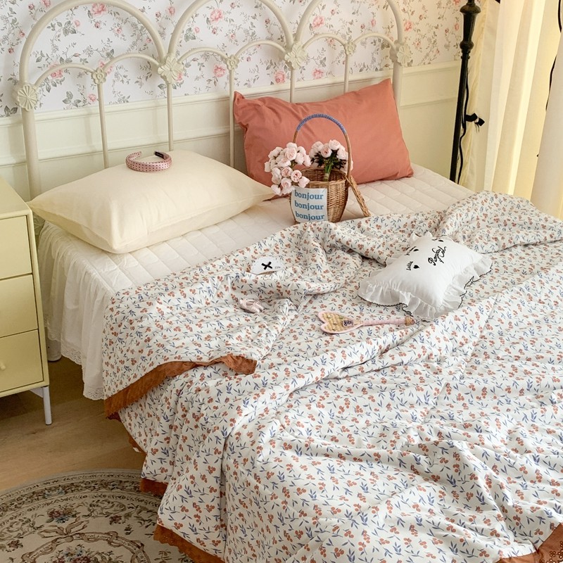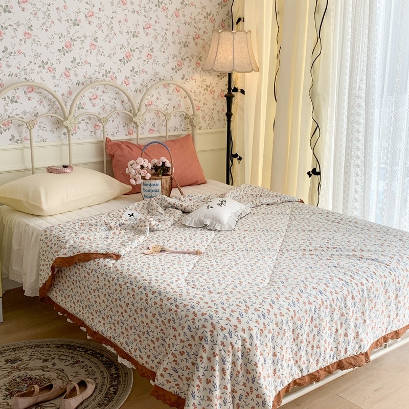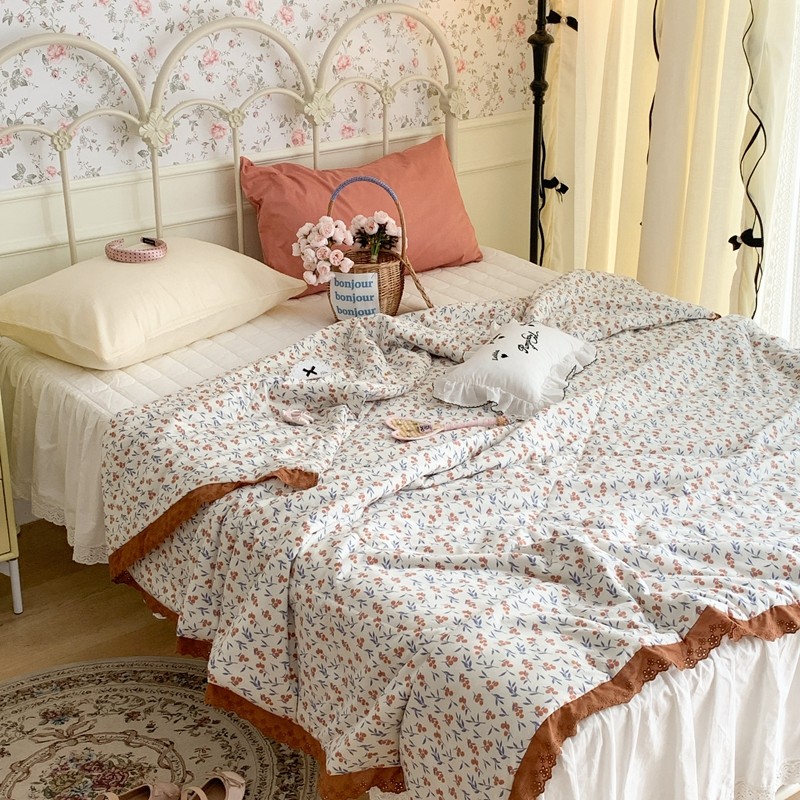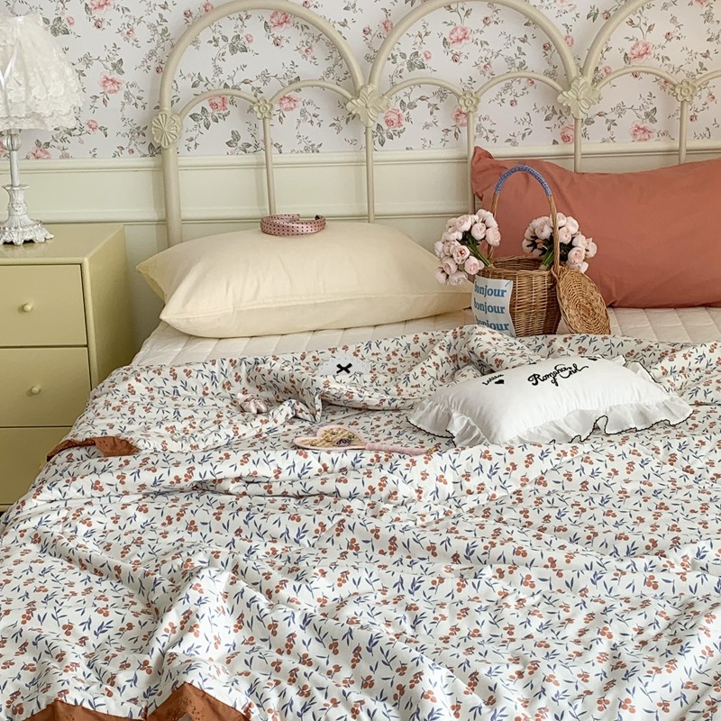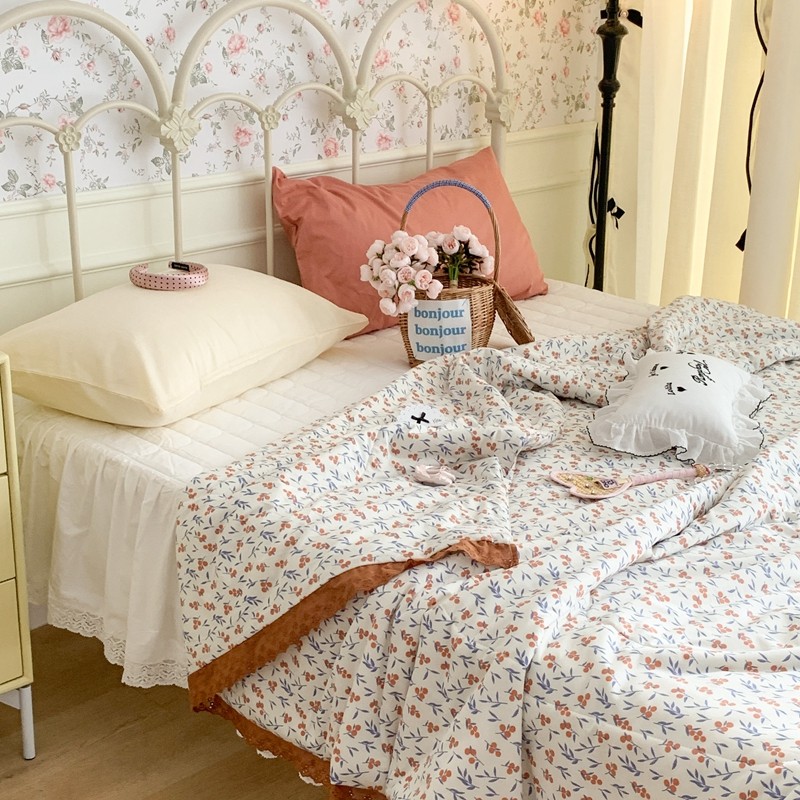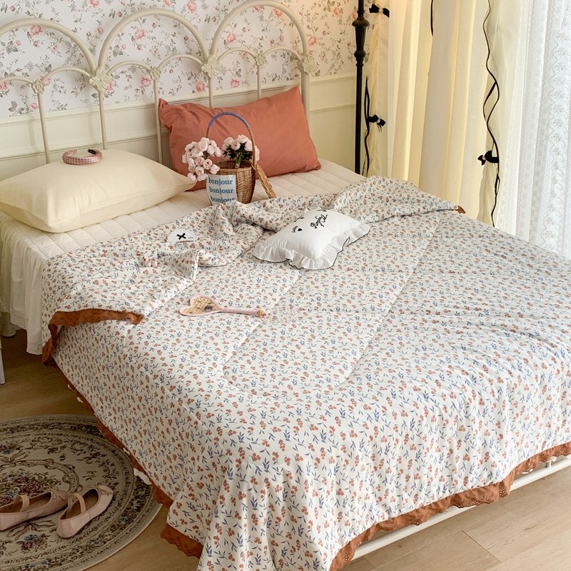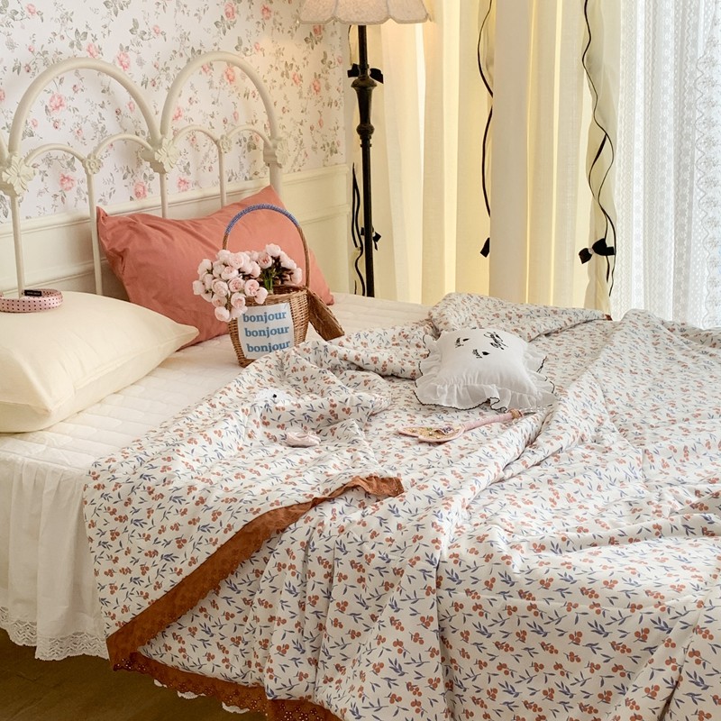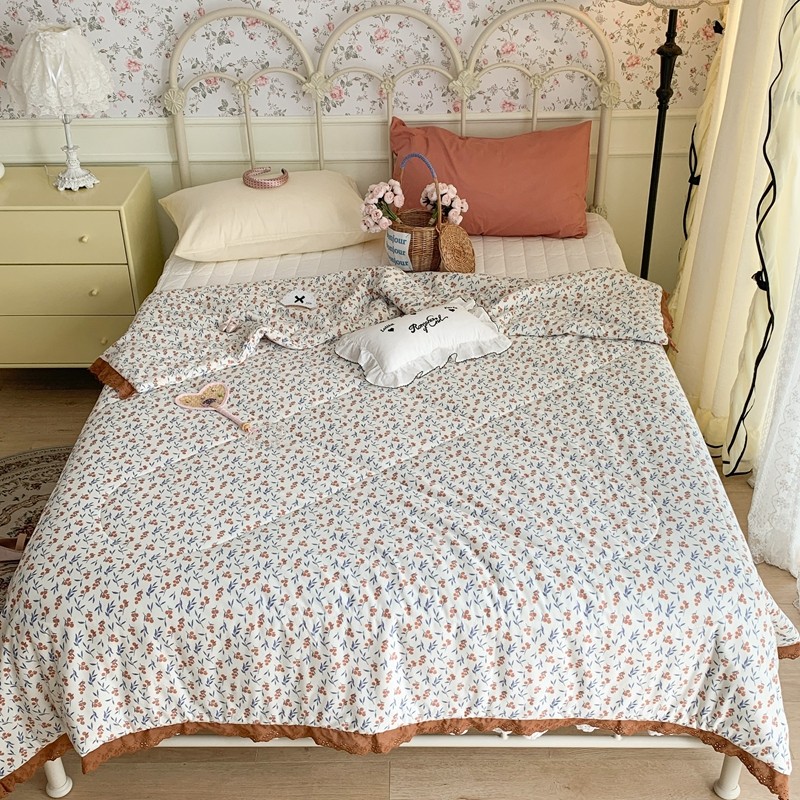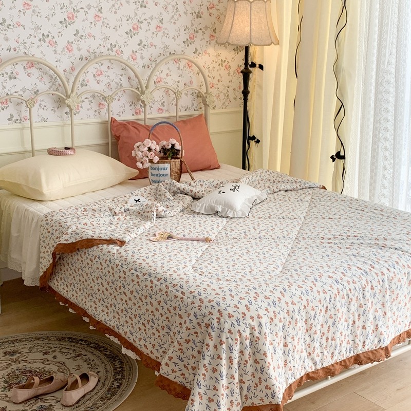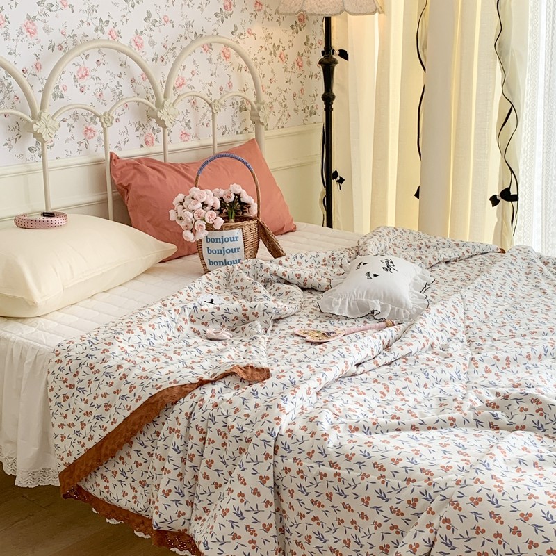昔可 复古蕾丝花边针织夏被 果园假期