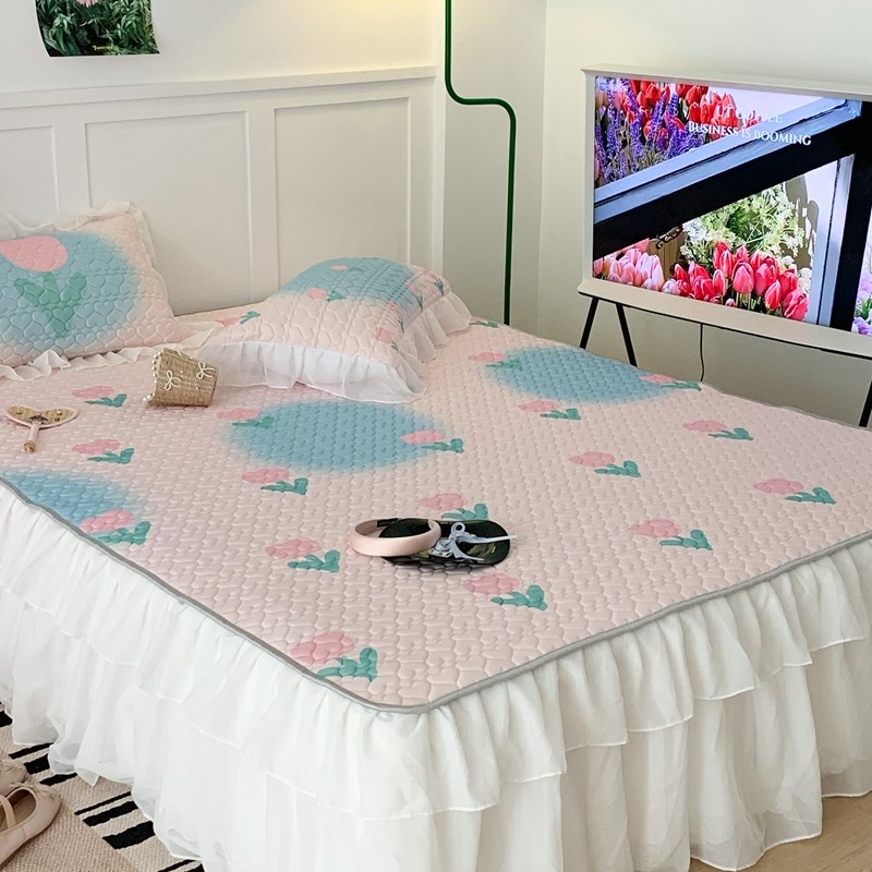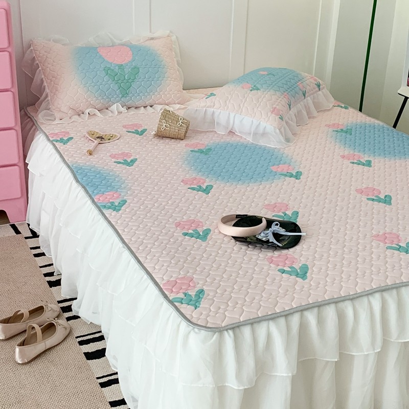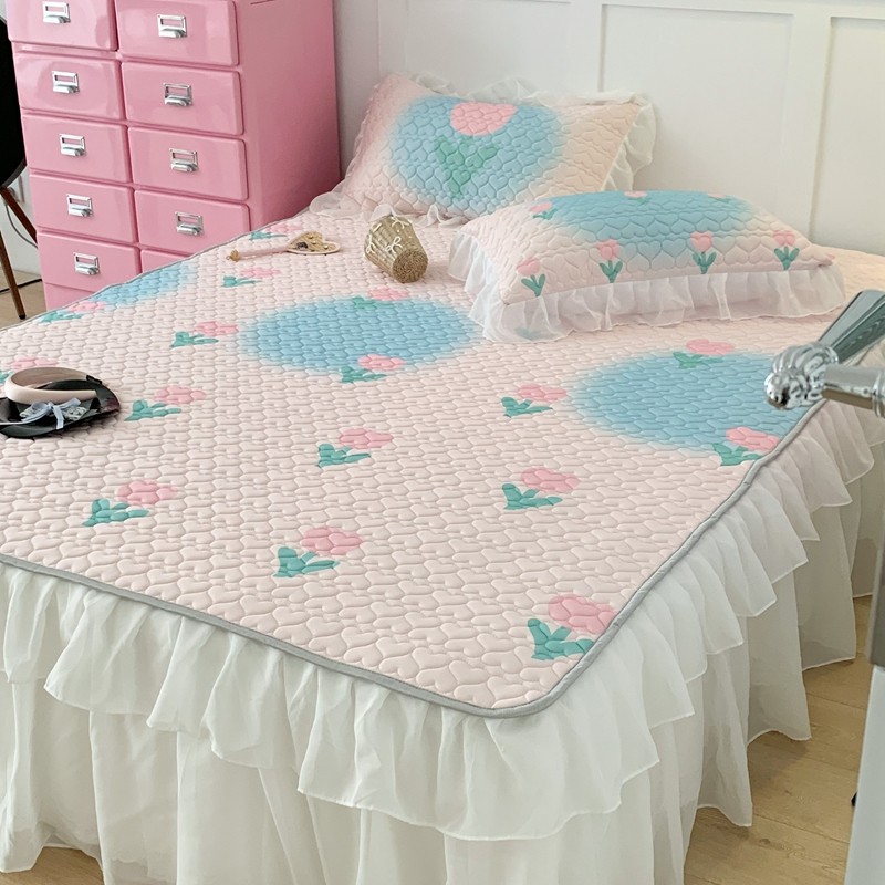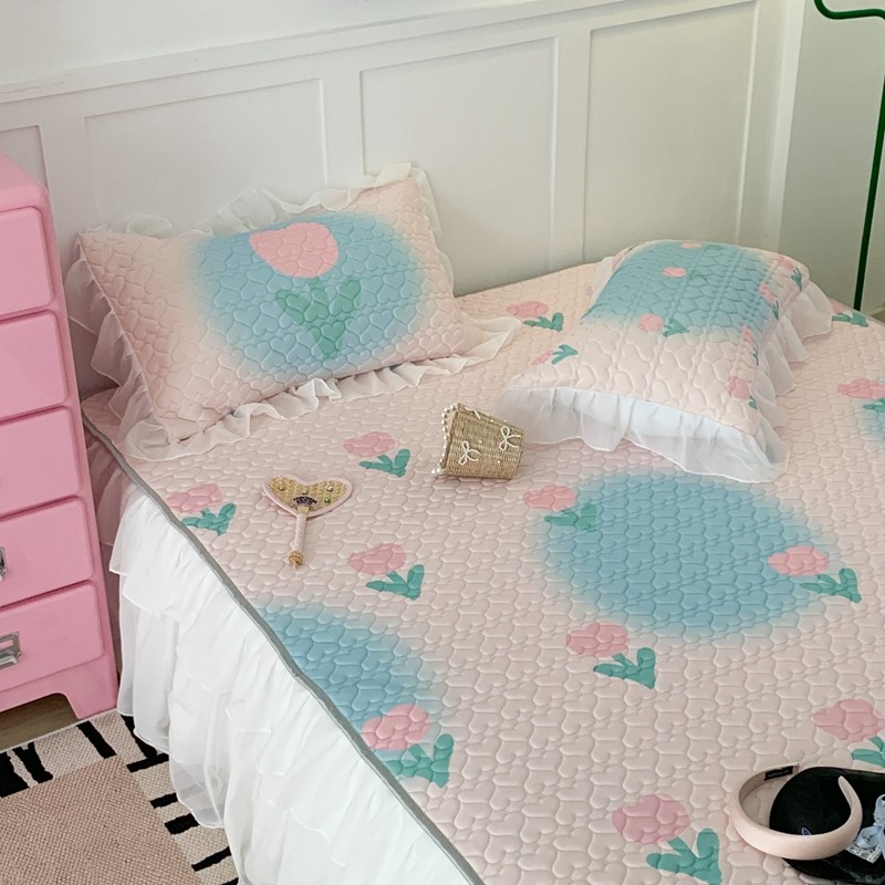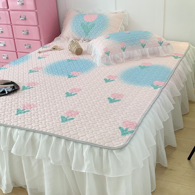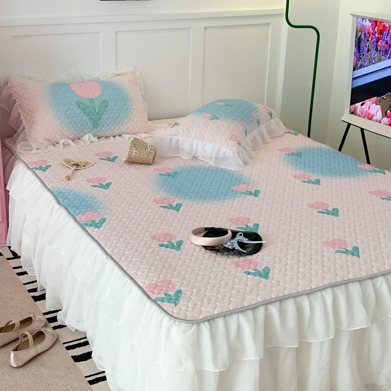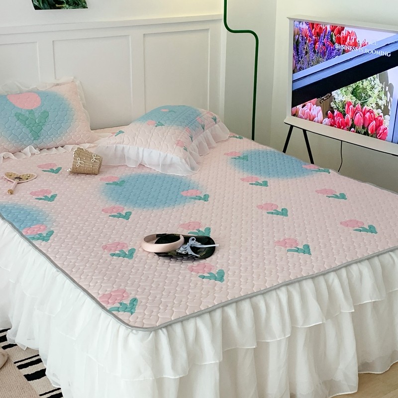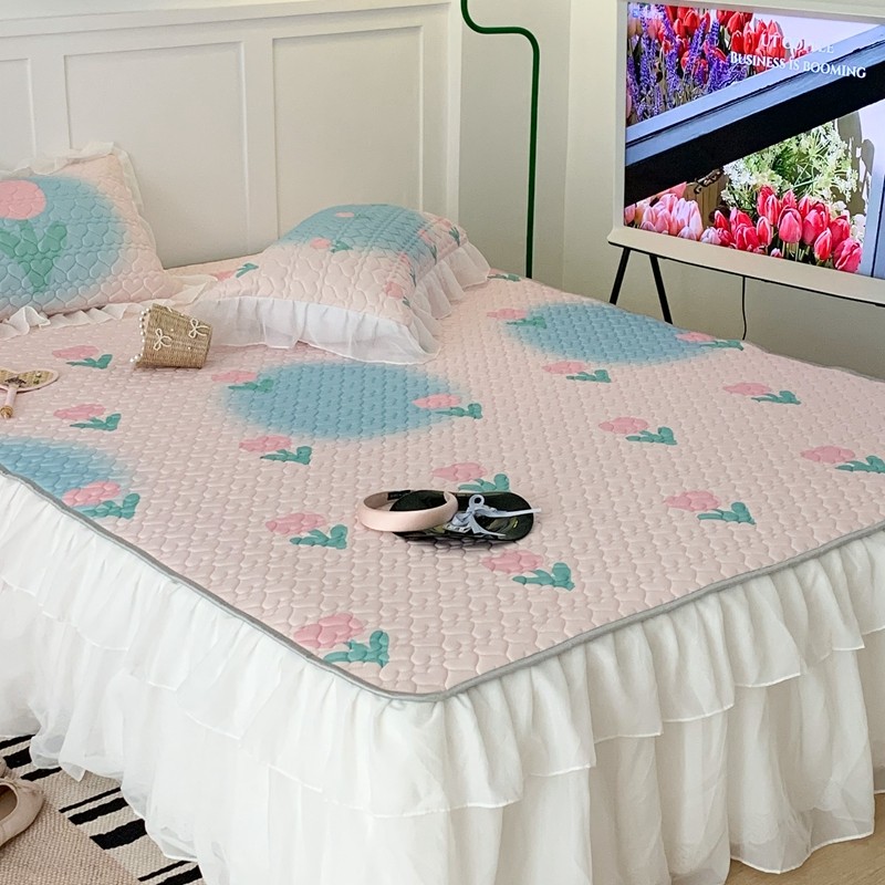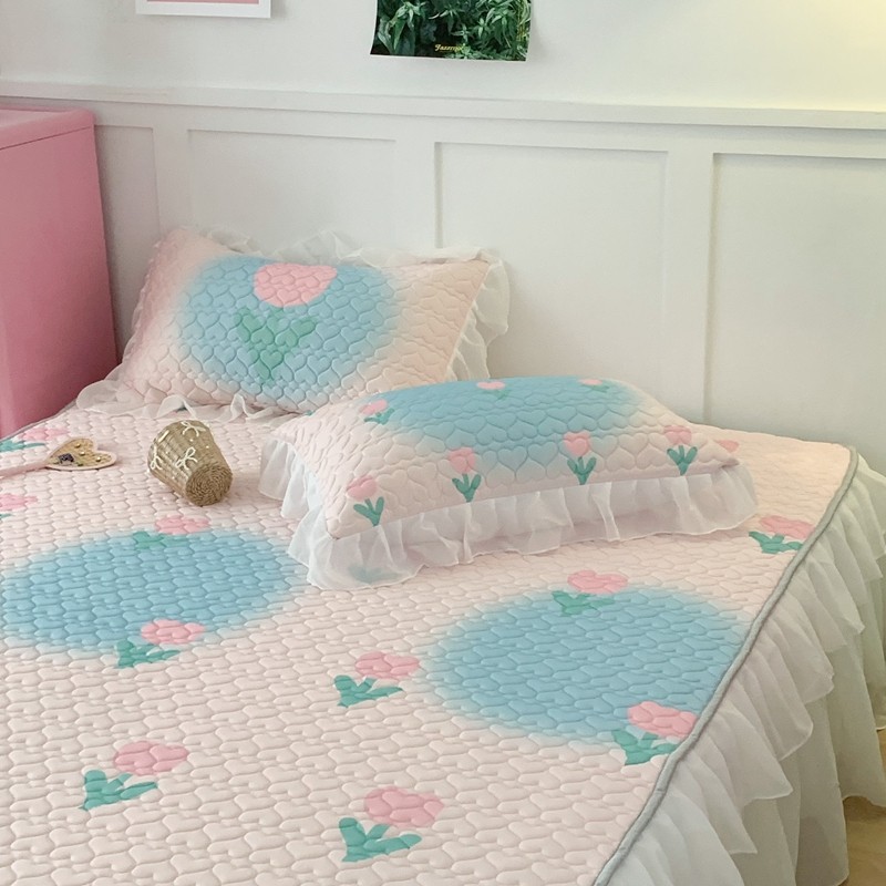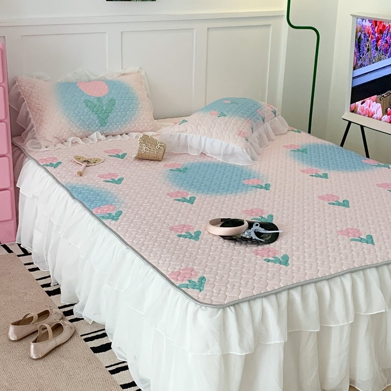 昔可 2023新款第二批双层床裙乳胶三件套 少女碎花风系列 粉蓝郁金香