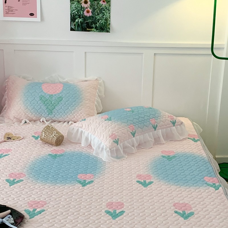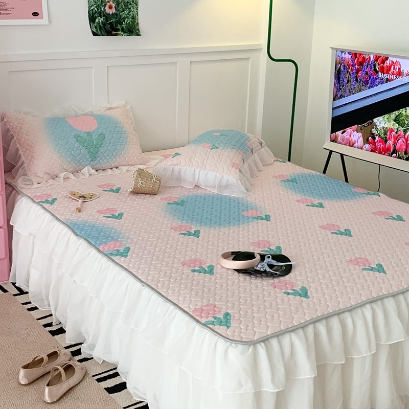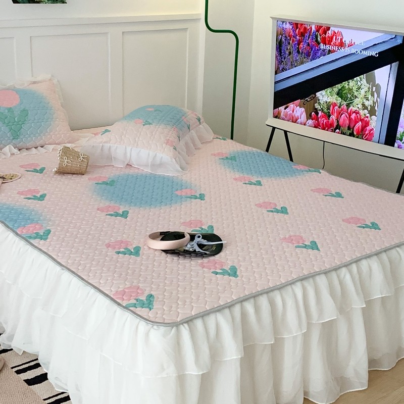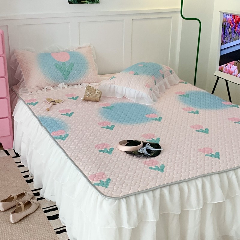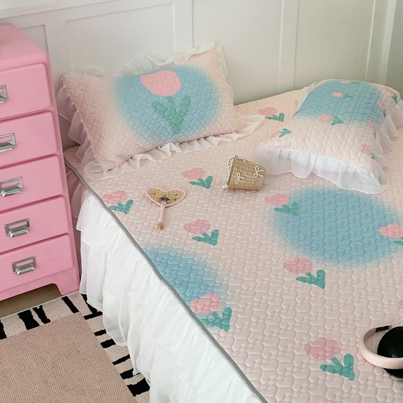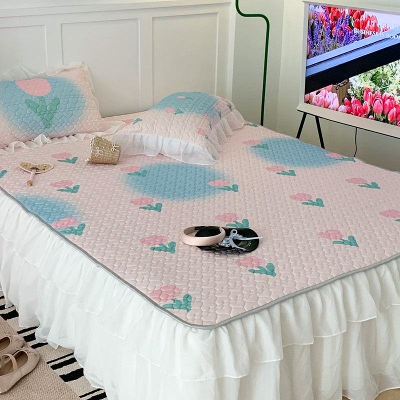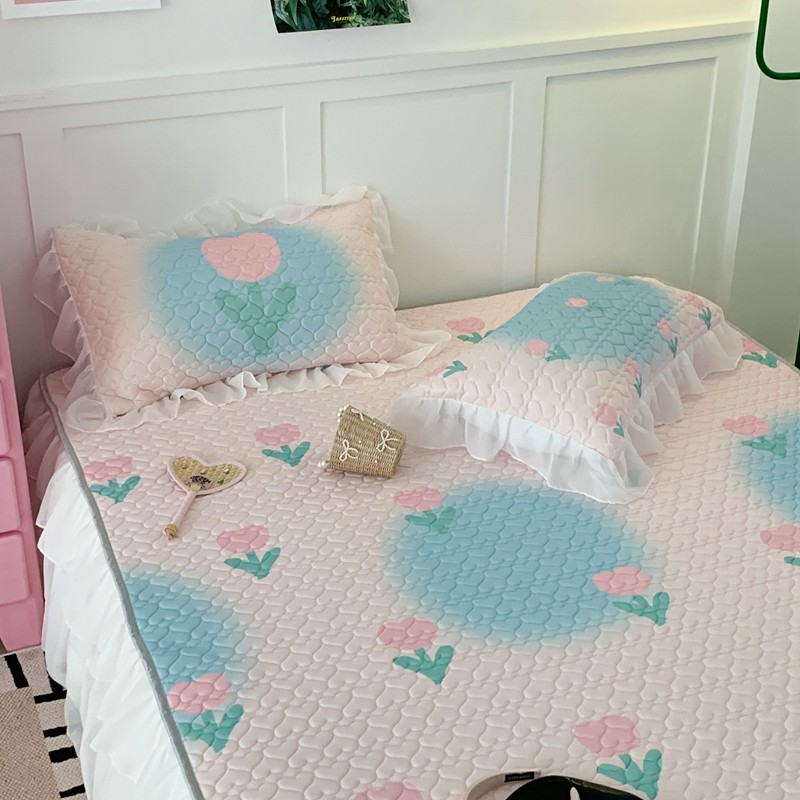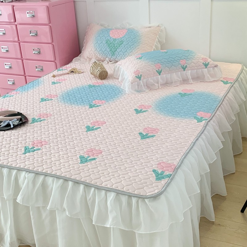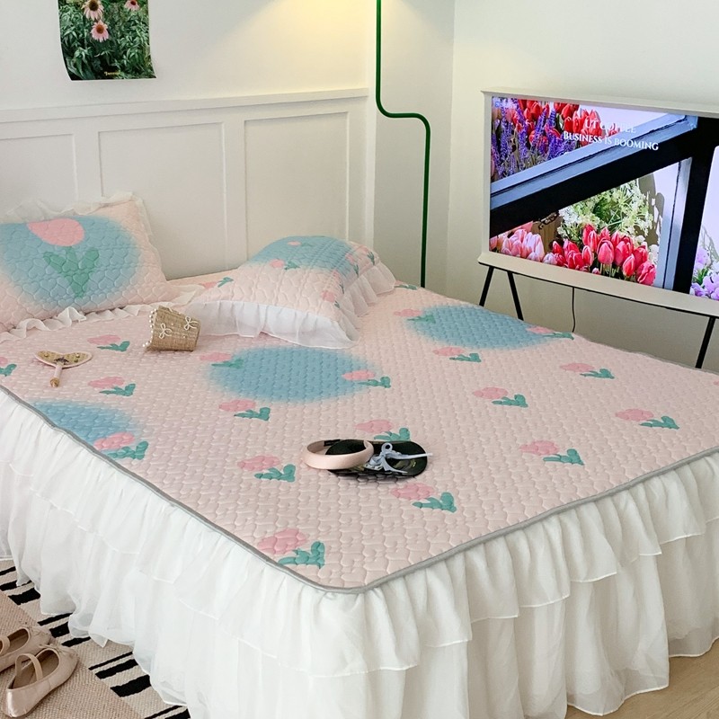 昔可 2023新款第二批双层床裙乳胶三件套 少女碎花风系列 粉蓝郁金香