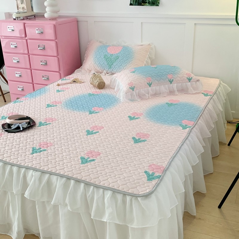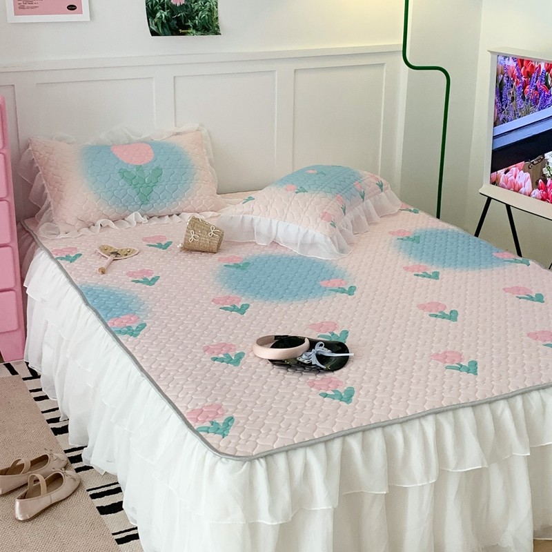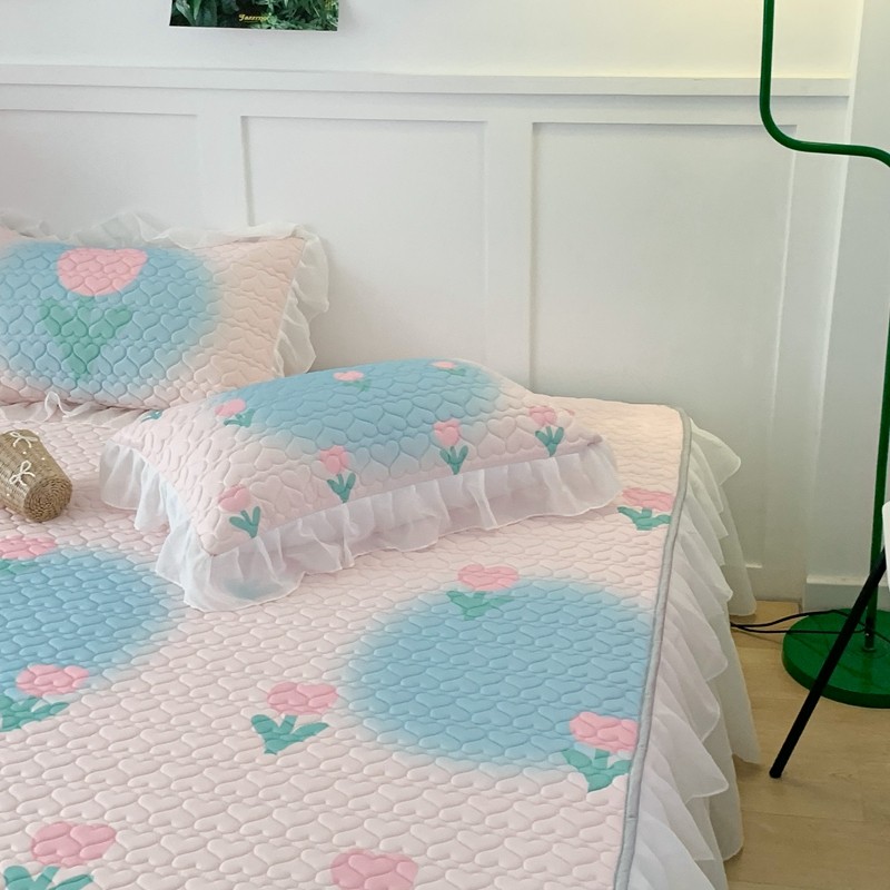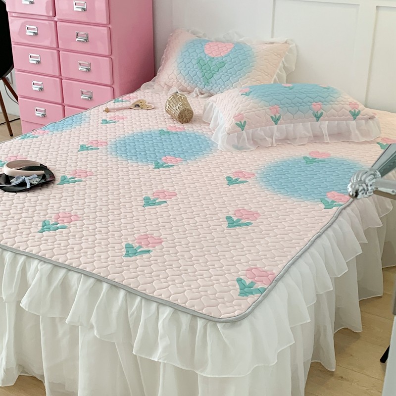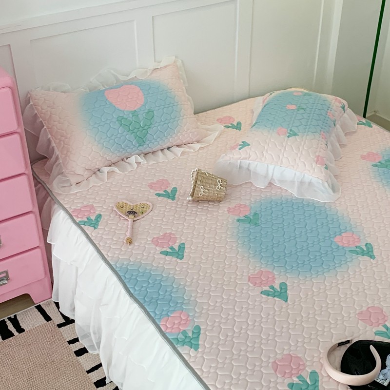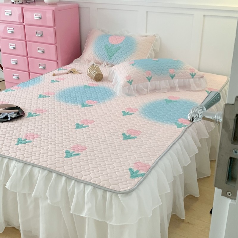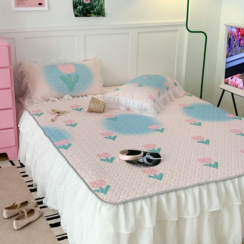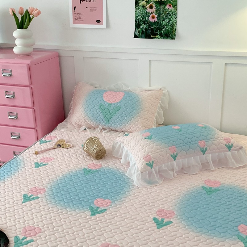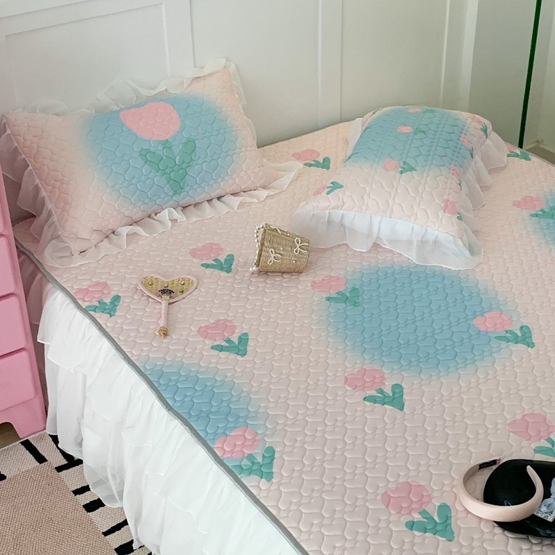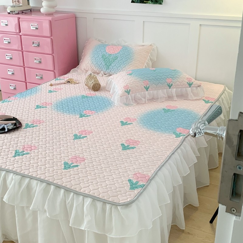 昔可 2023新款第二批双层床裙乳胶三件套 少女碎花风系列 粉蓝郁金香