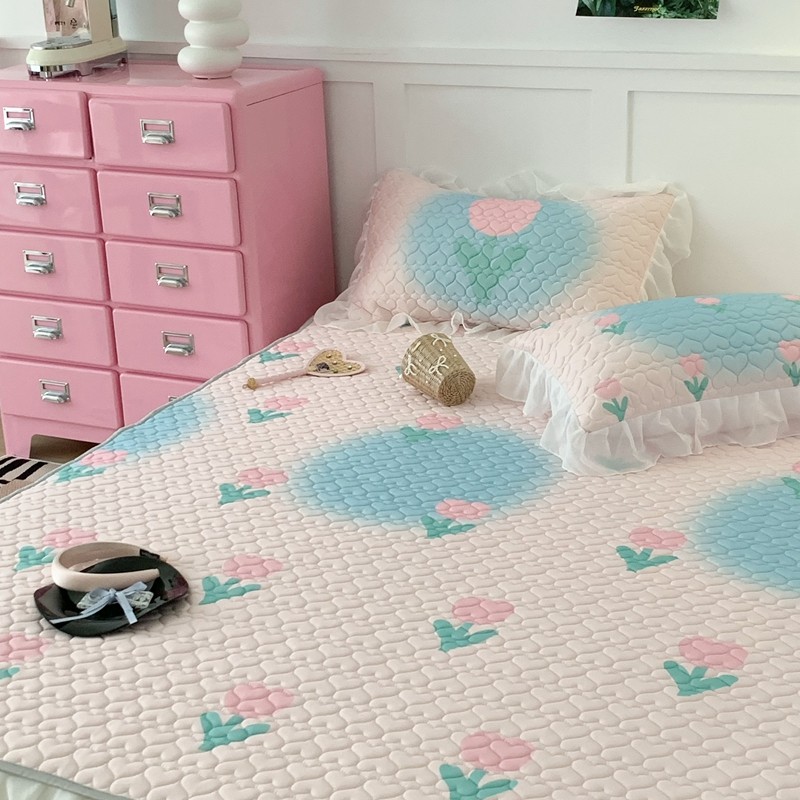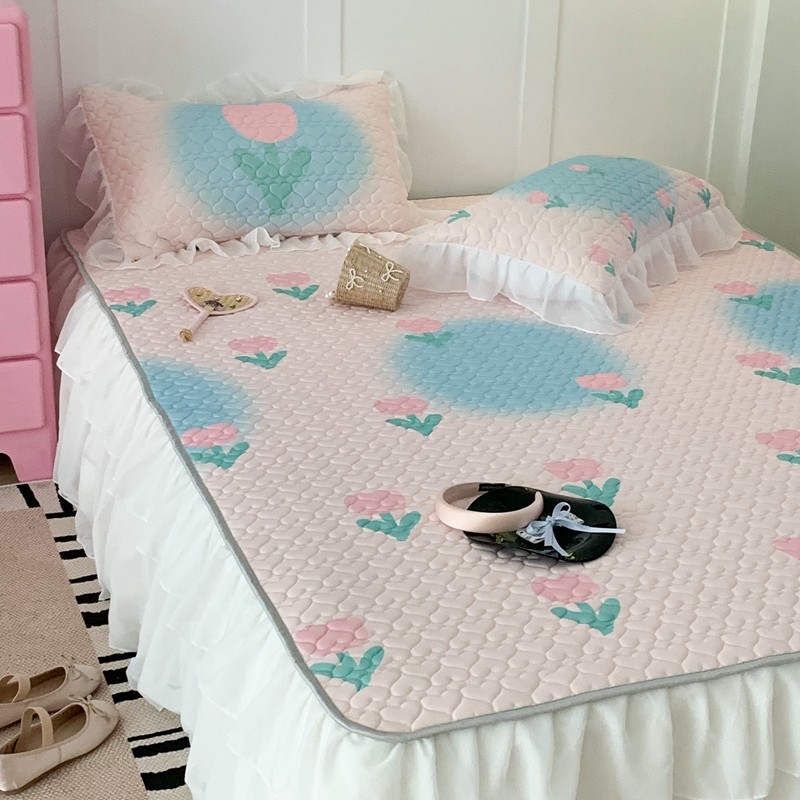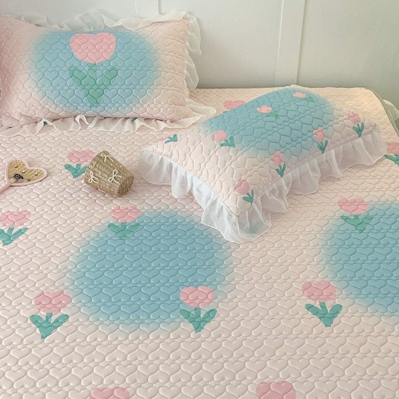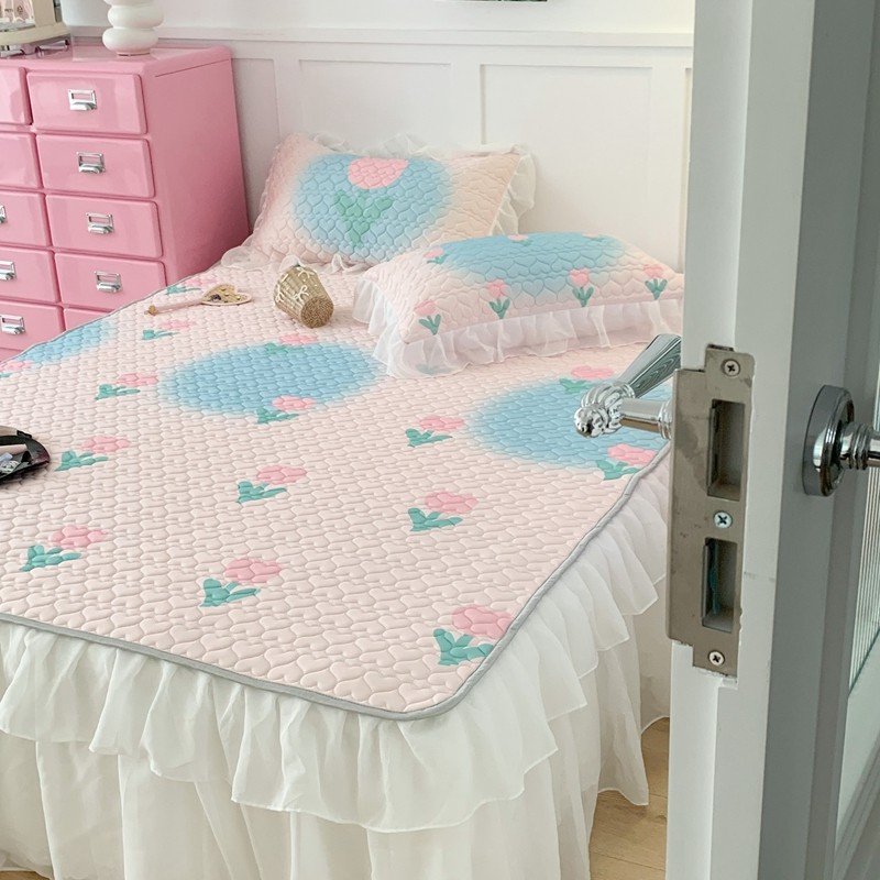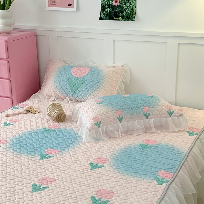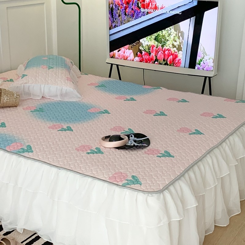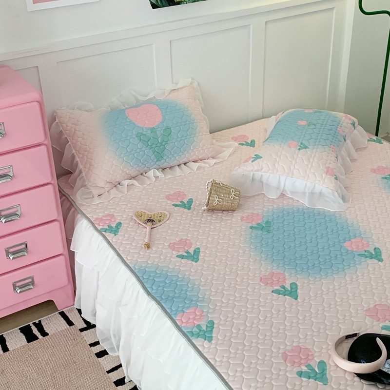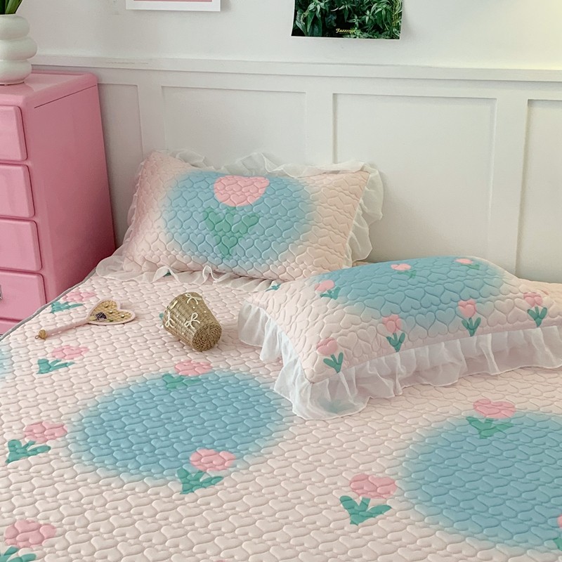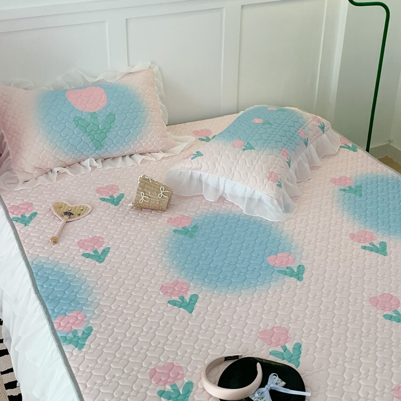 昔可 2023新款第二批双层床裙乳胶三件套 少女碎花风系列 粉蓝郁金香