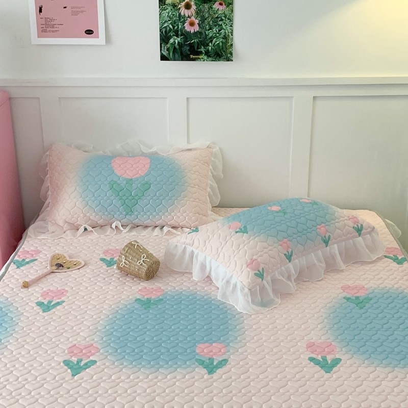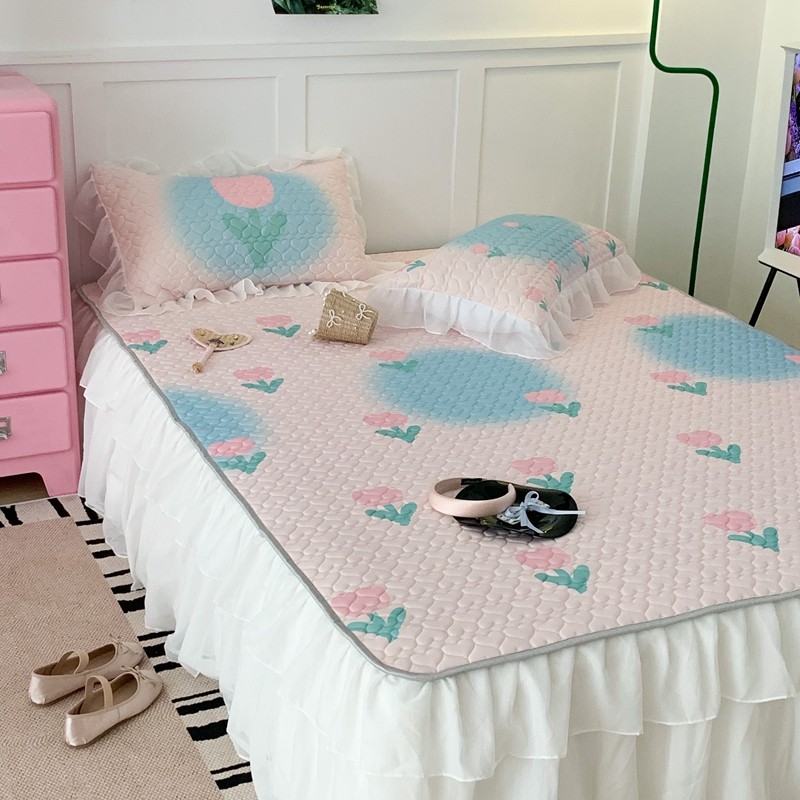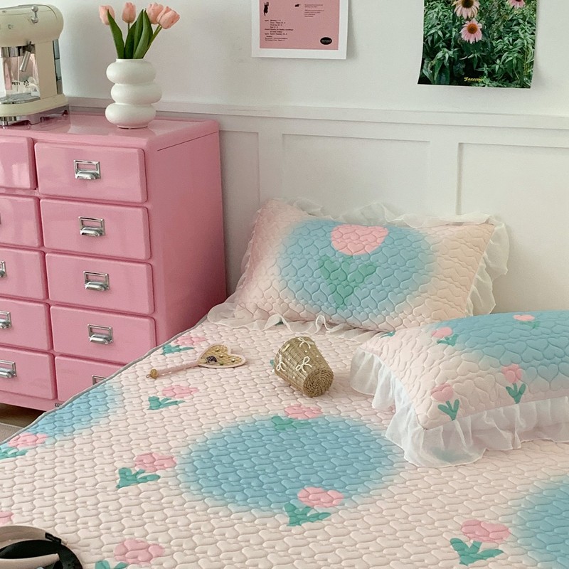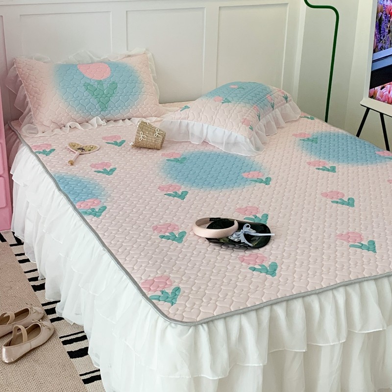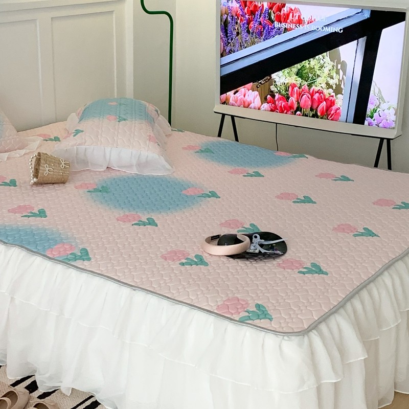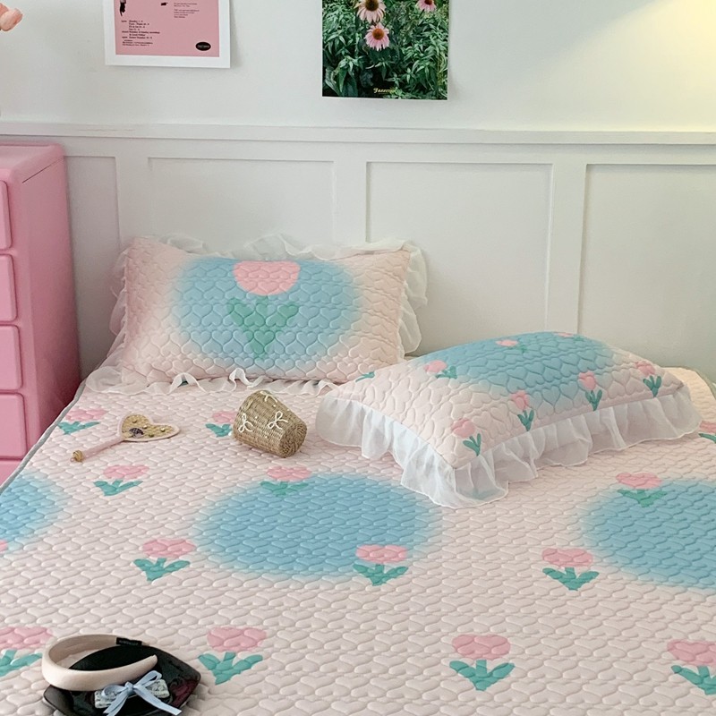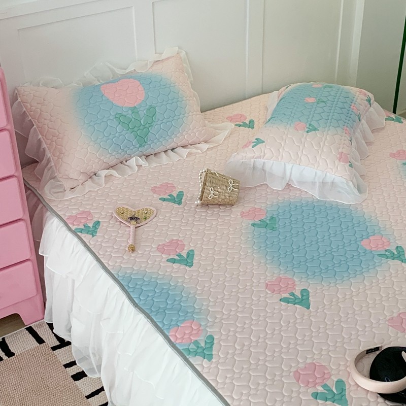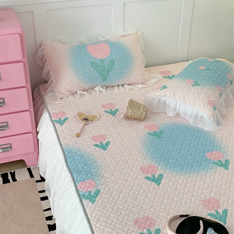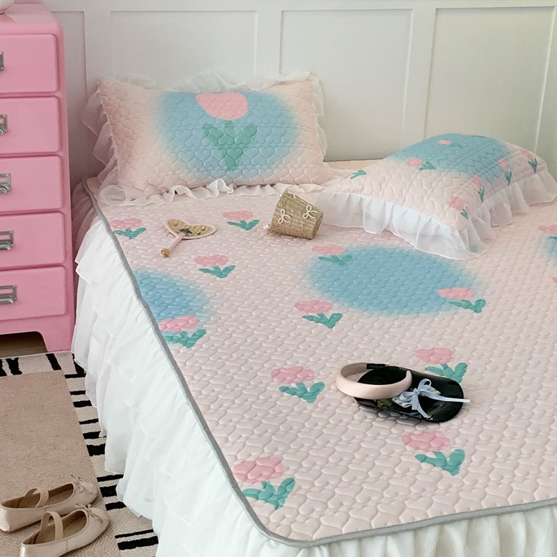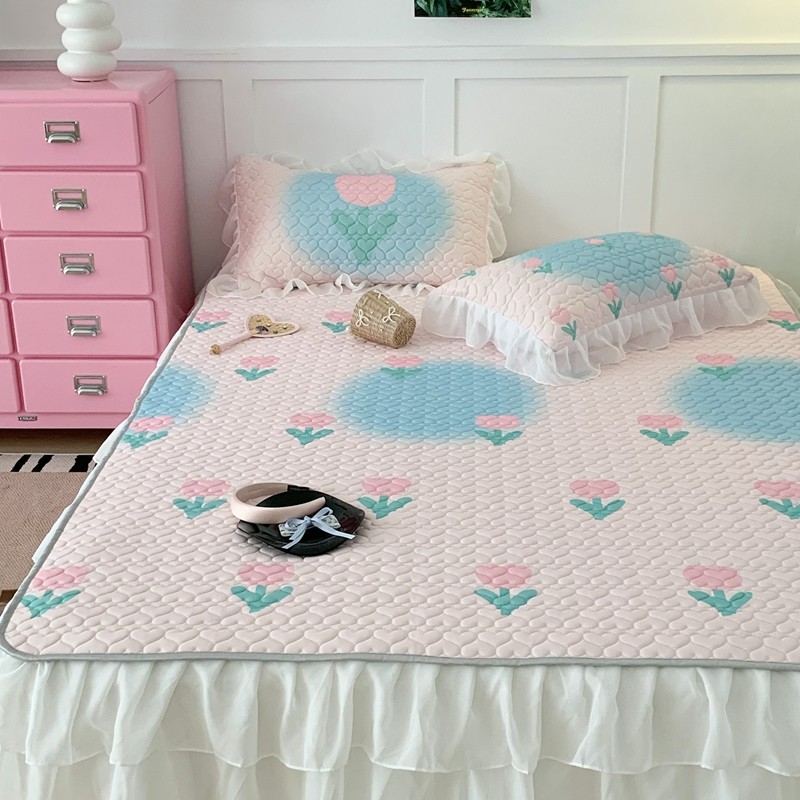 昔可 2023新款第二批双层床裙乳胶三件套 少女碎花风系列 粉蓝郁金香