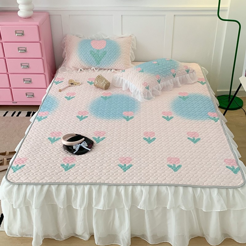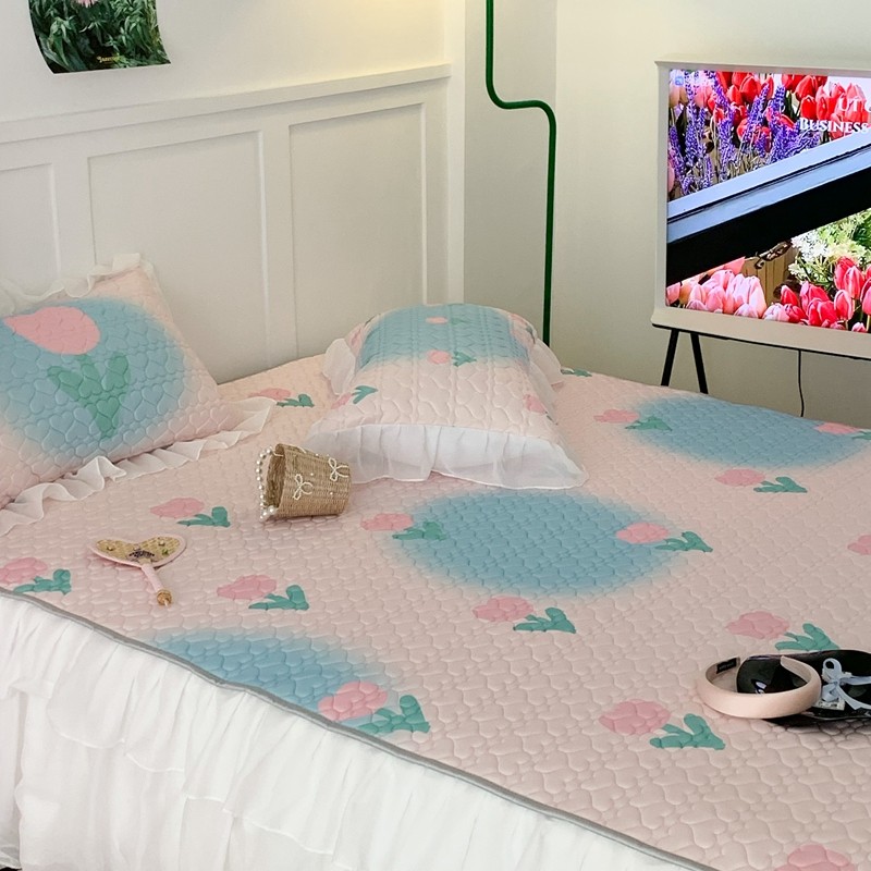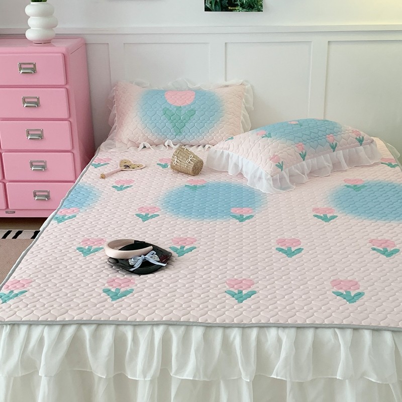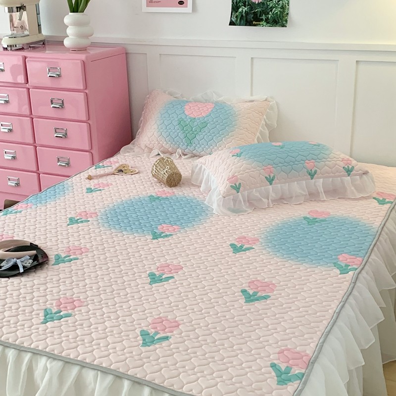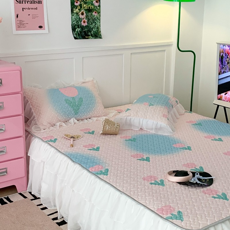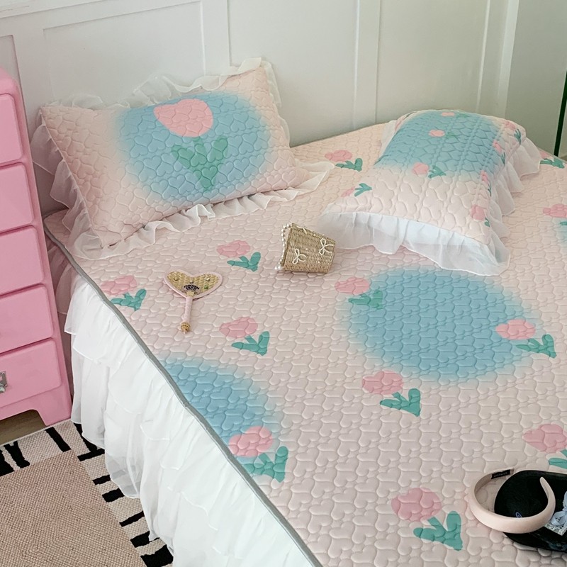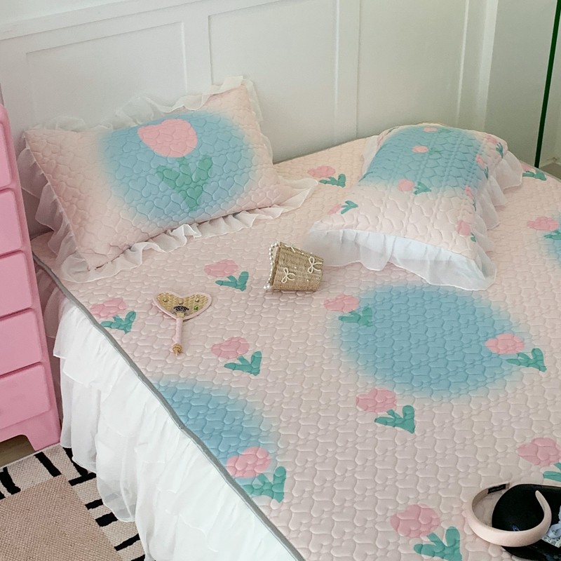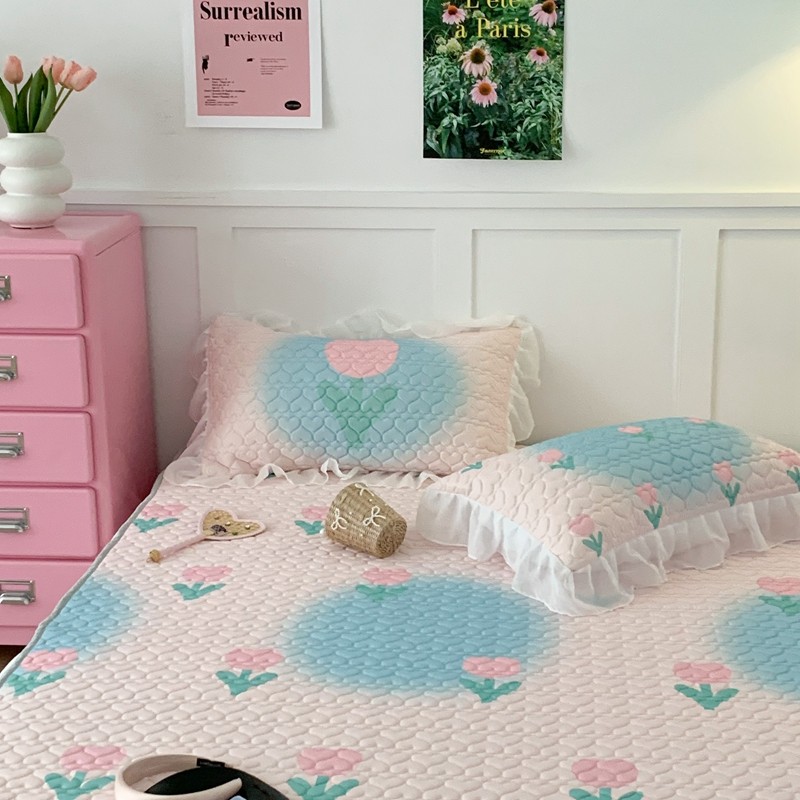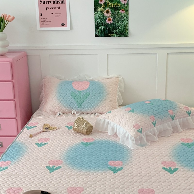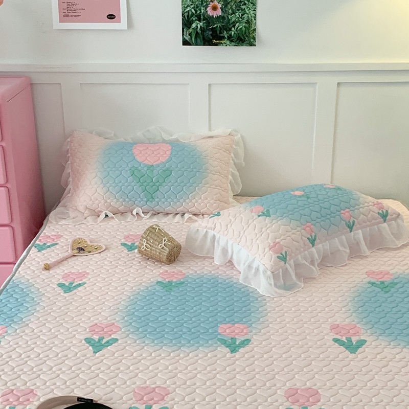 昔可 2023新款第二批双层床裙乳胶三件套 少女碎花风系列 粉蓝郁金香