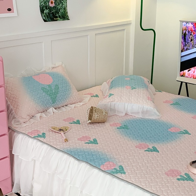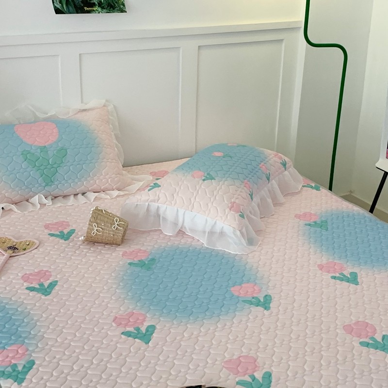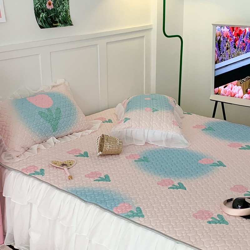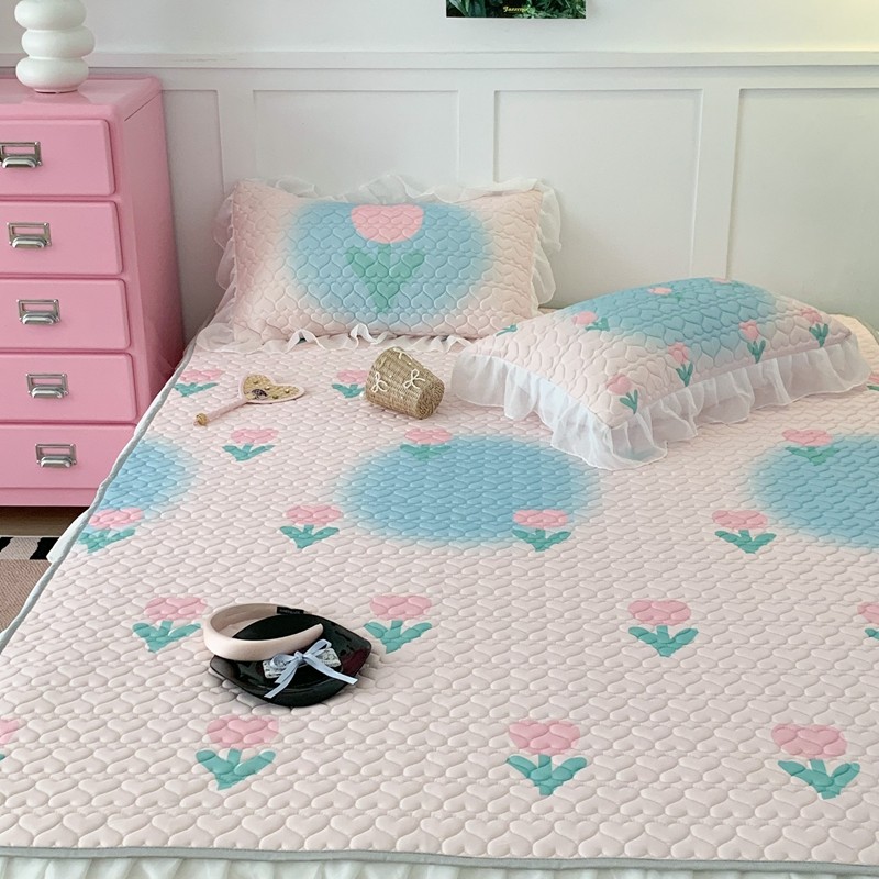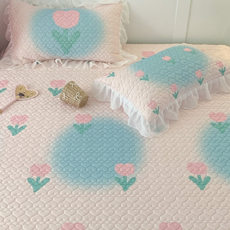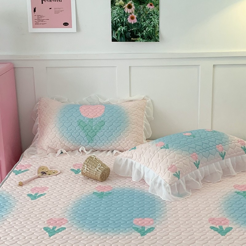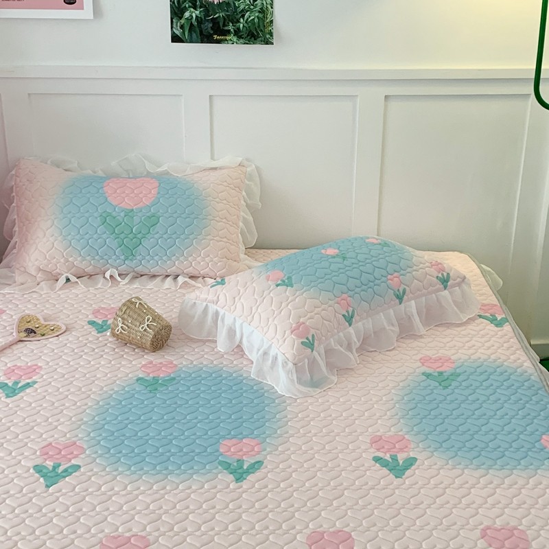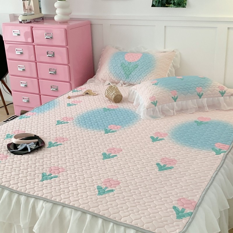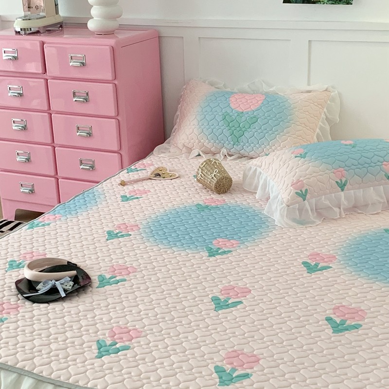 昔可 2023新款第二批双层床裙乳胶三件套 少女碎花风系列 粉蓝郁金香