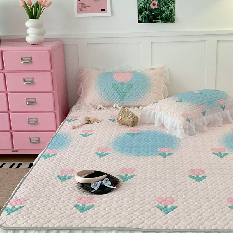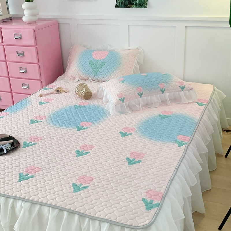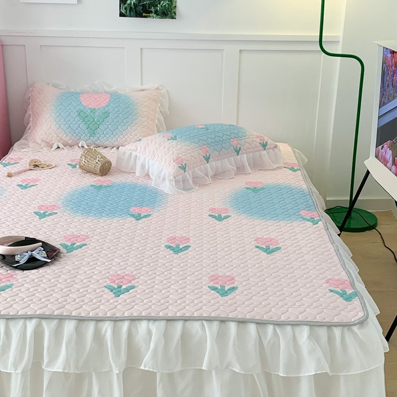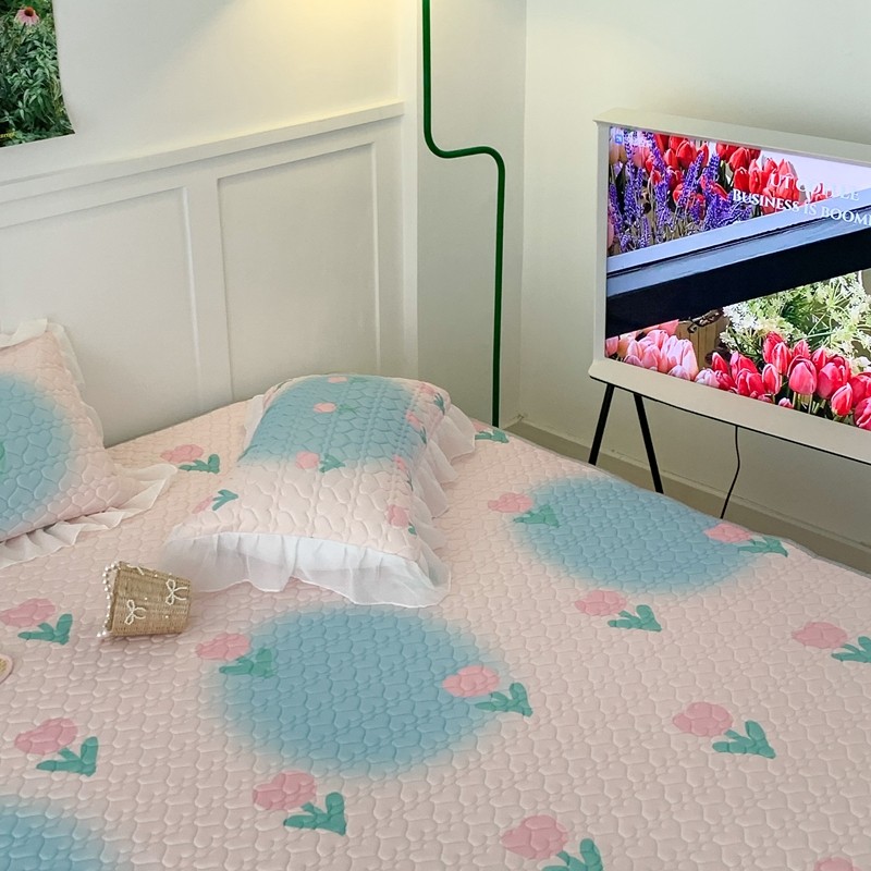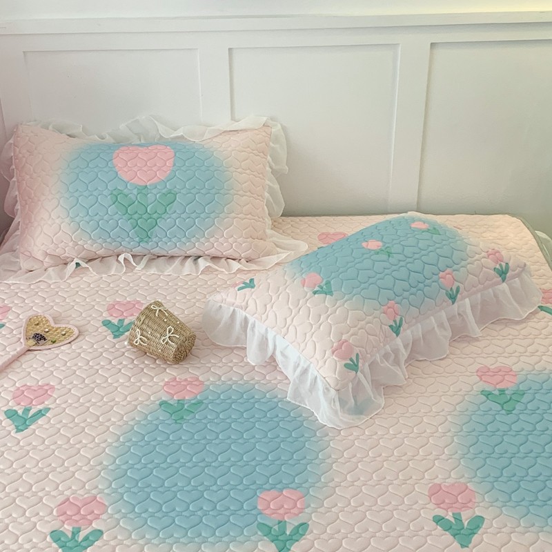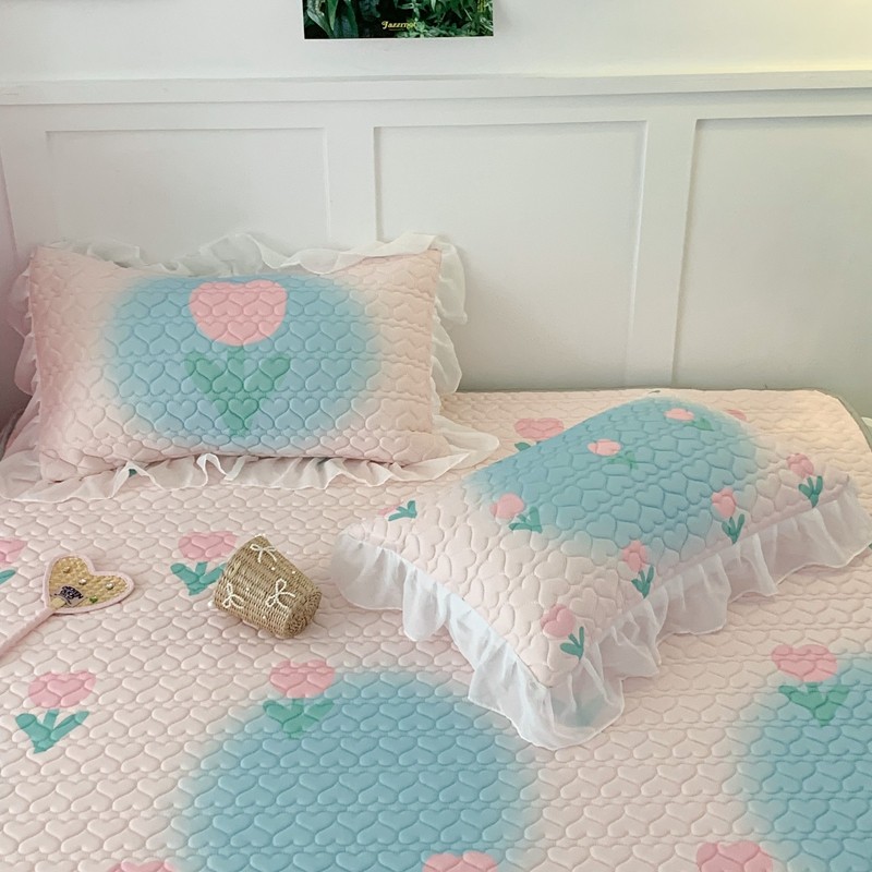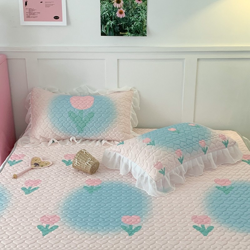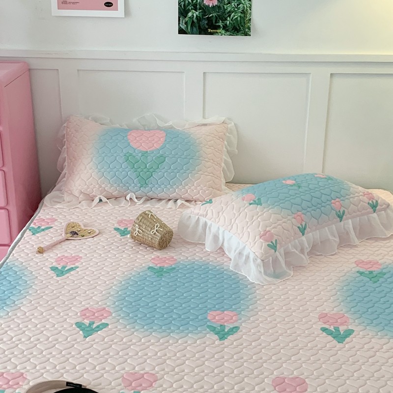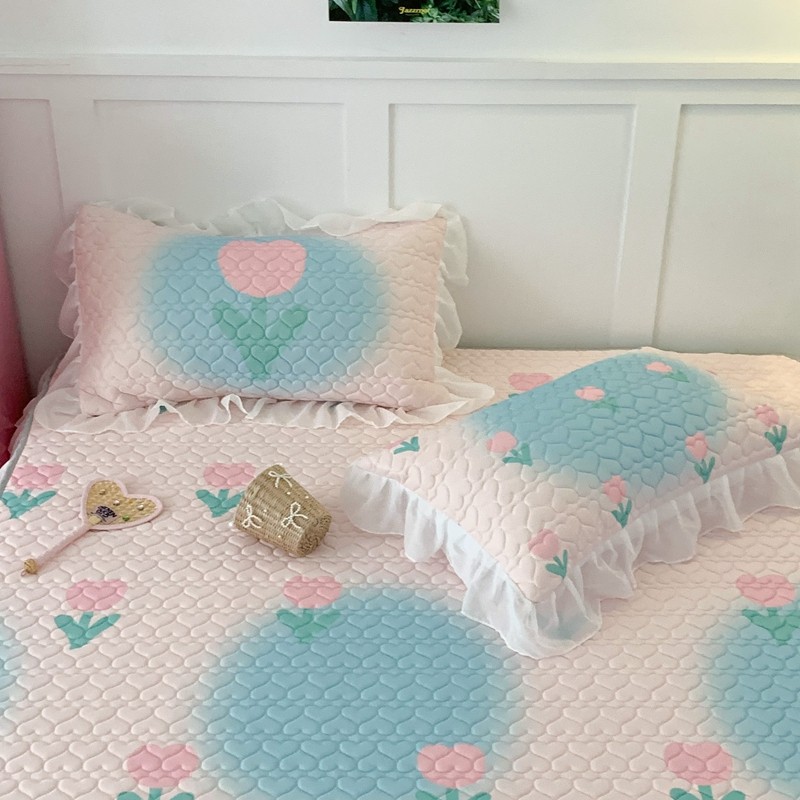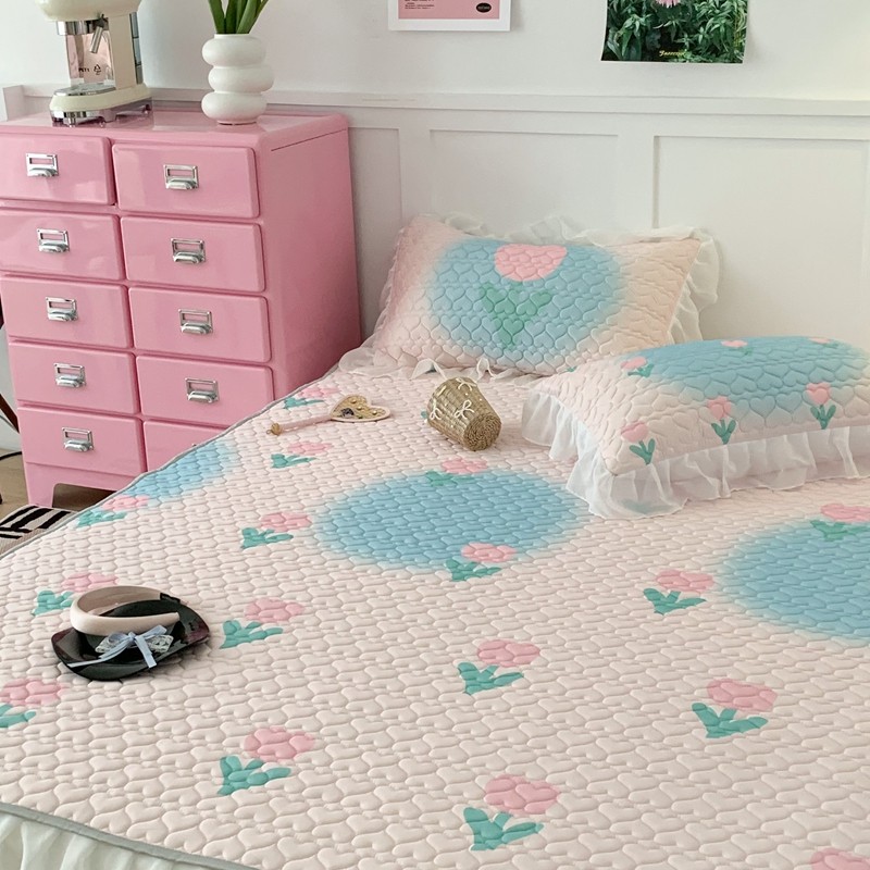 昔可 2023新款第二批双层床裙乳胶三件套 少女碎花风系列 粉蓝郁金香