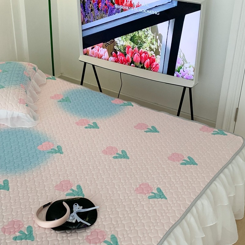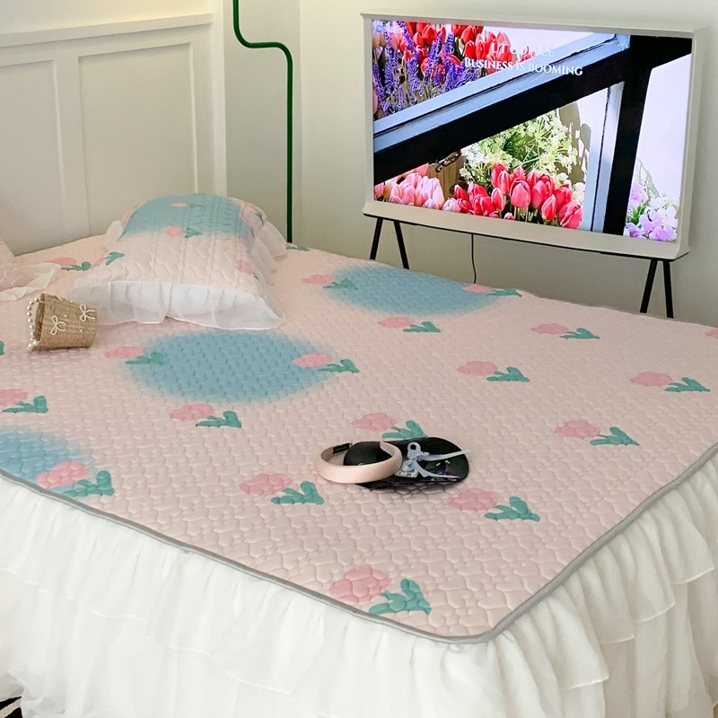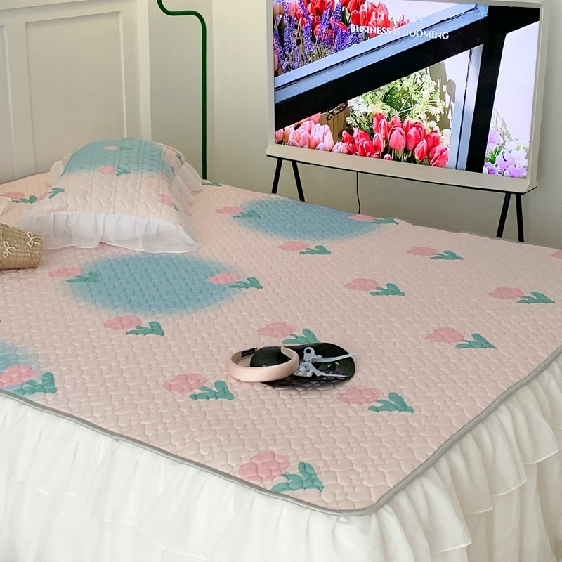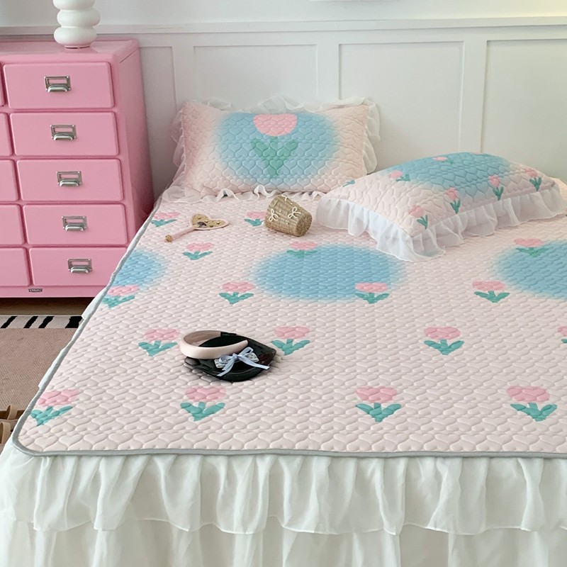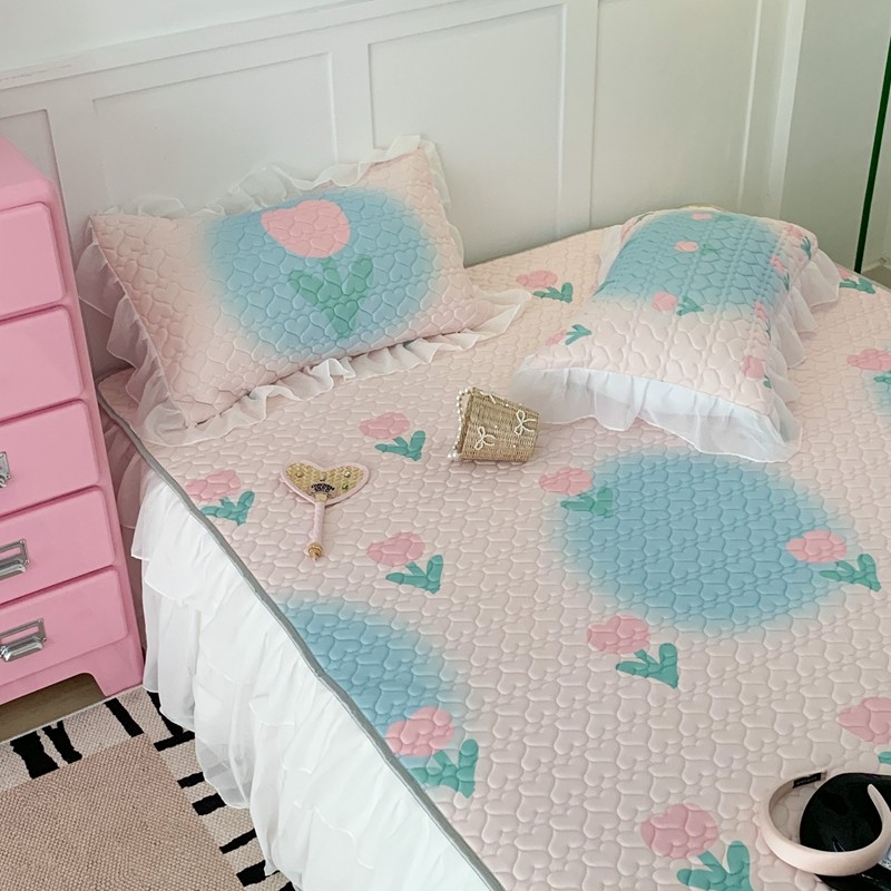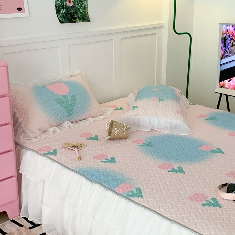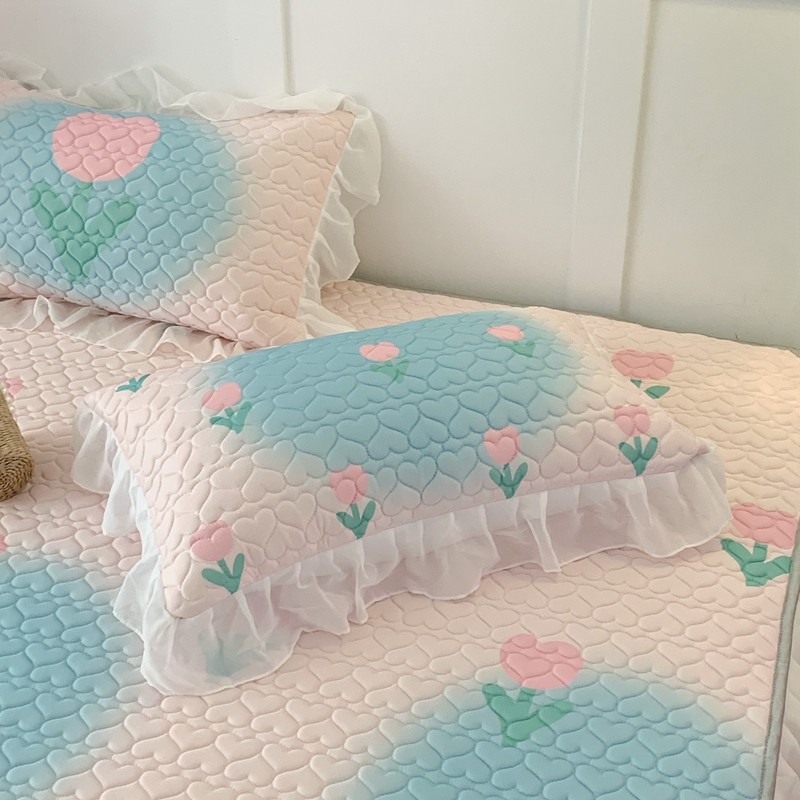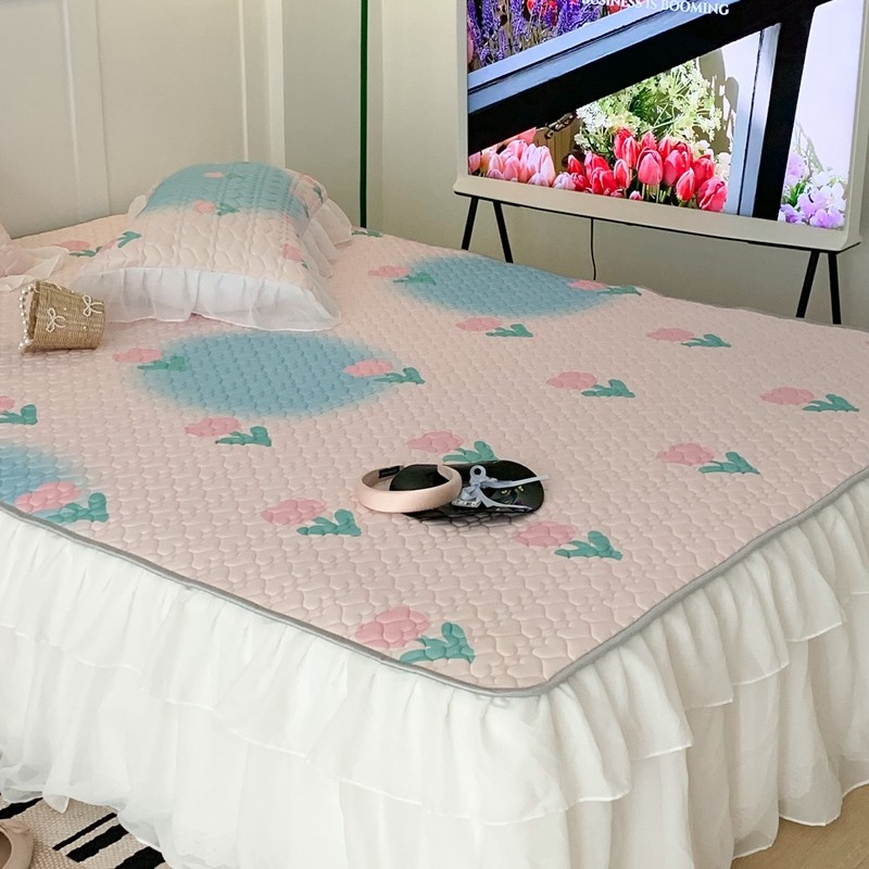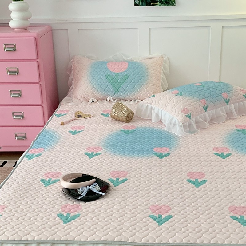 昔可 2023新款第二批双层床裙乳胶三件套 少女碎花风系列 粉蓝郁金香