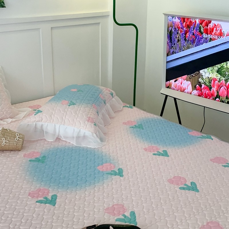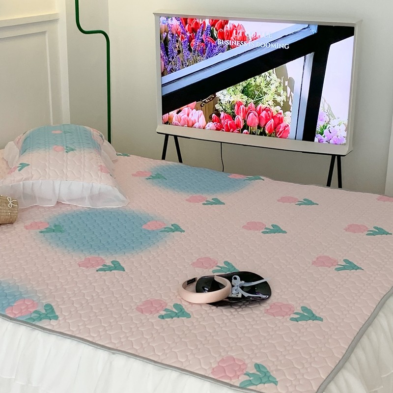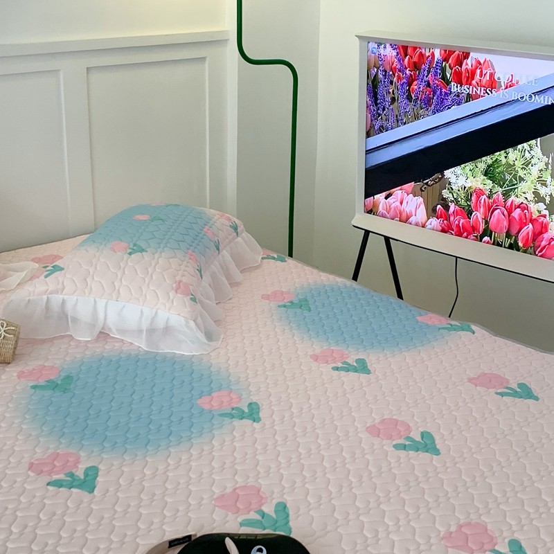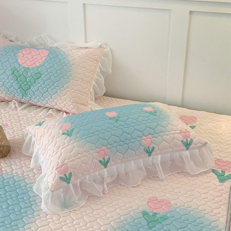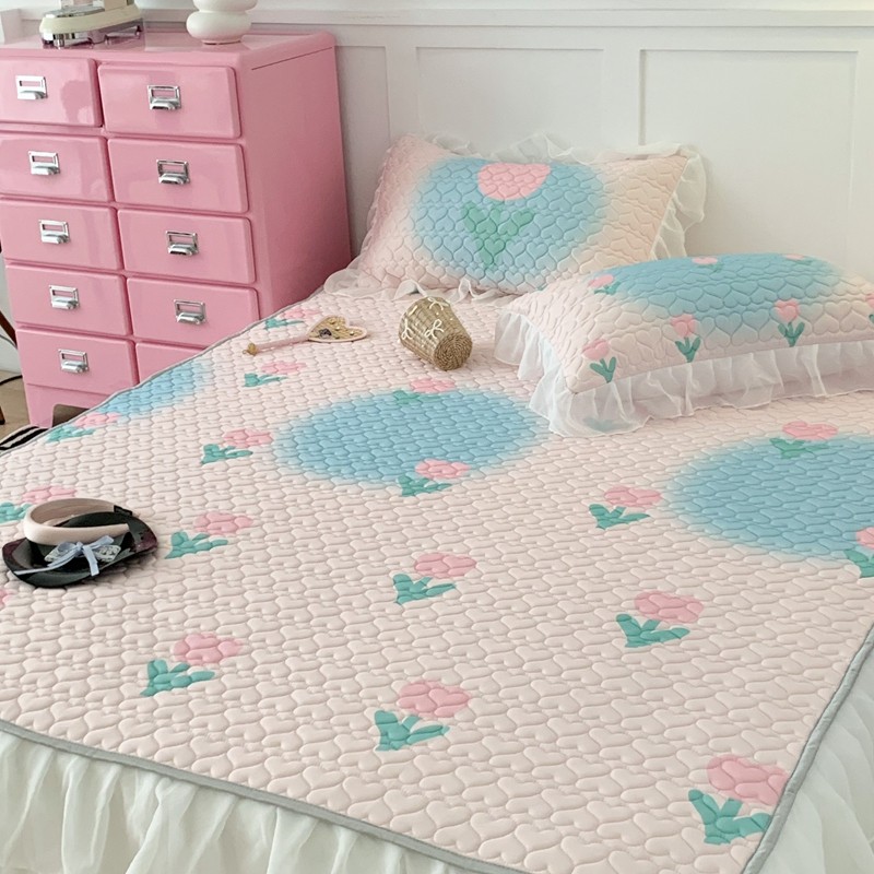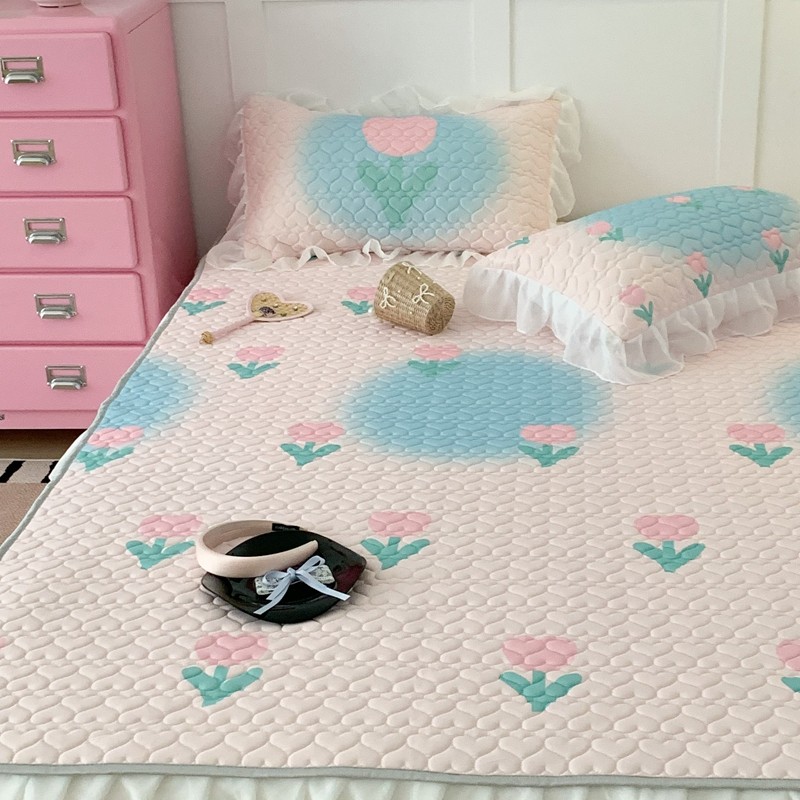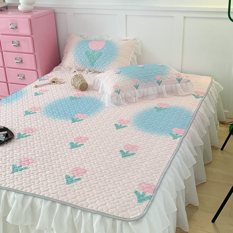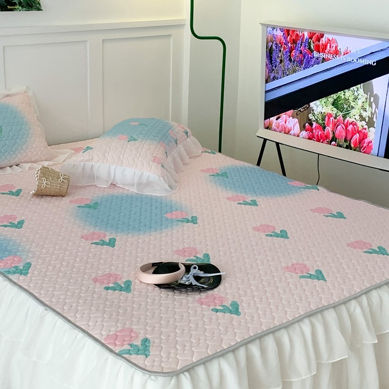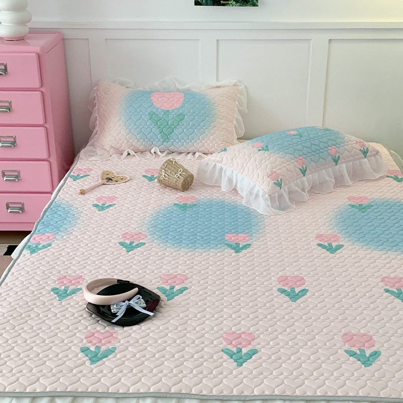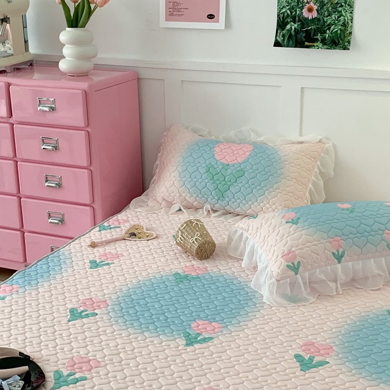 昔可 2023新款第二批双层床裙乳胶三件套 少女碎花风系列 粉蓝郁金香