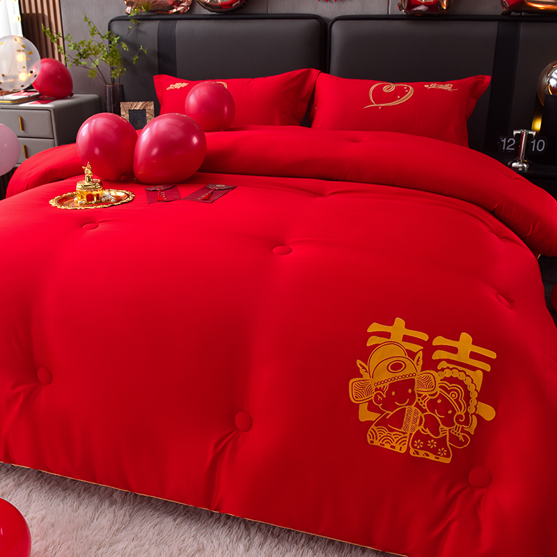 (总)壹张床2025新款婚庆水洗棉大豆冬被,大喜日子