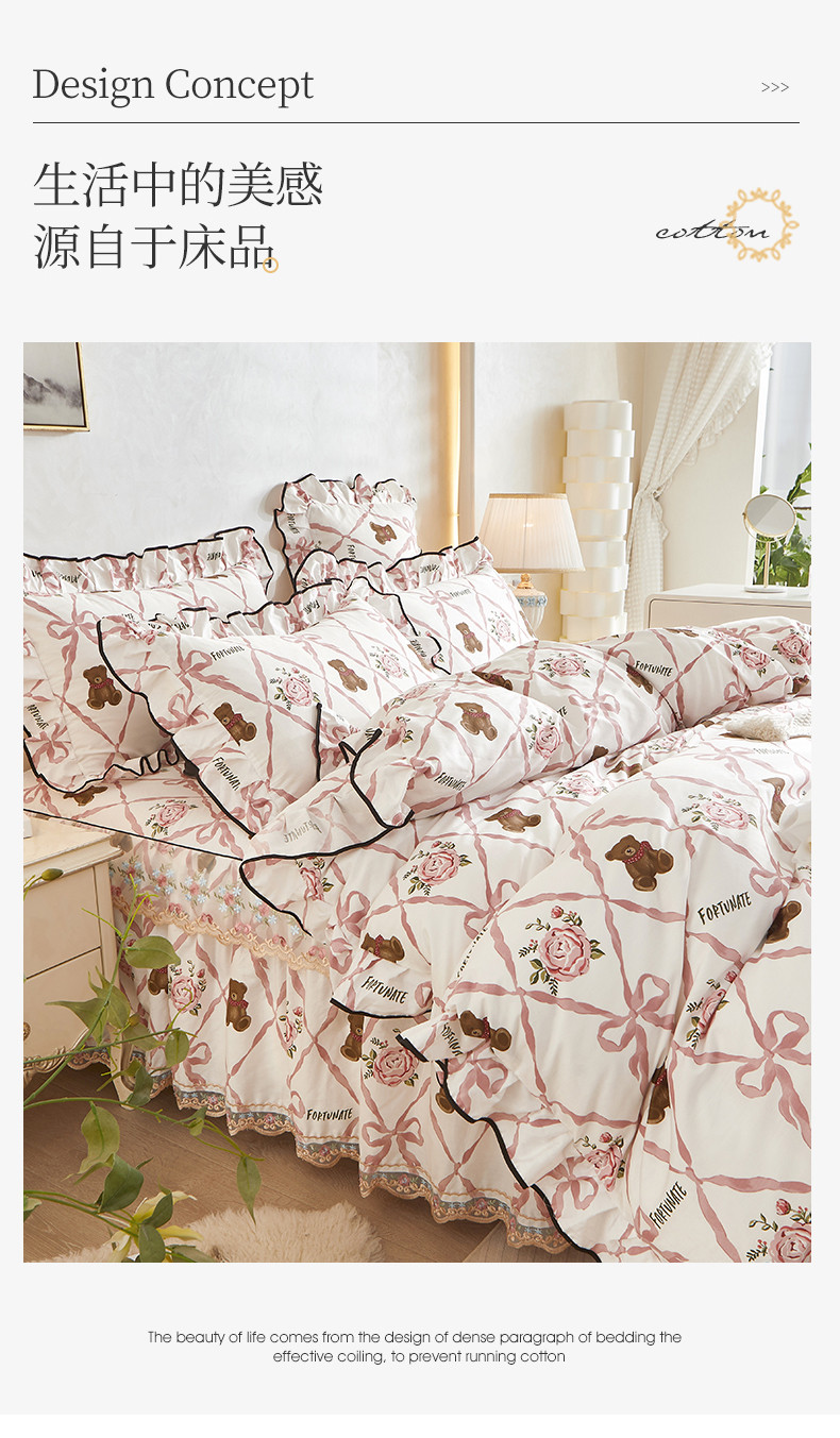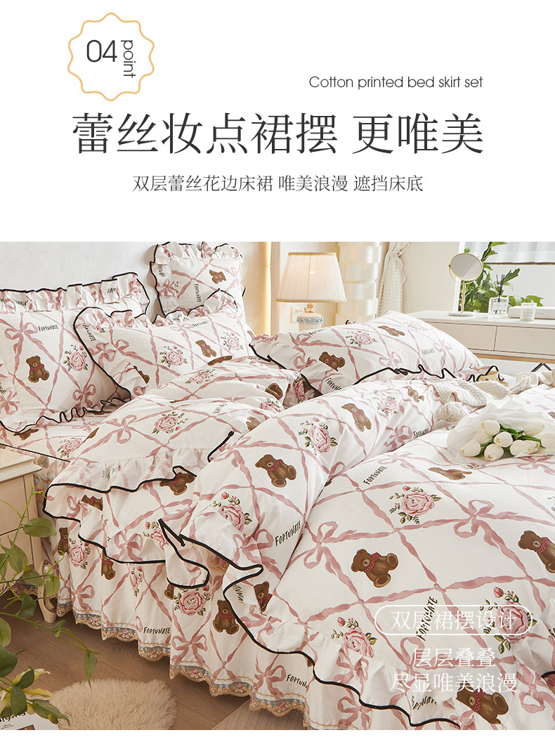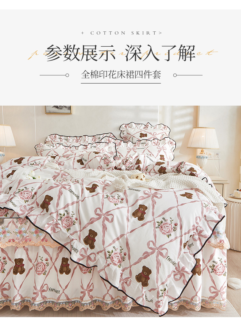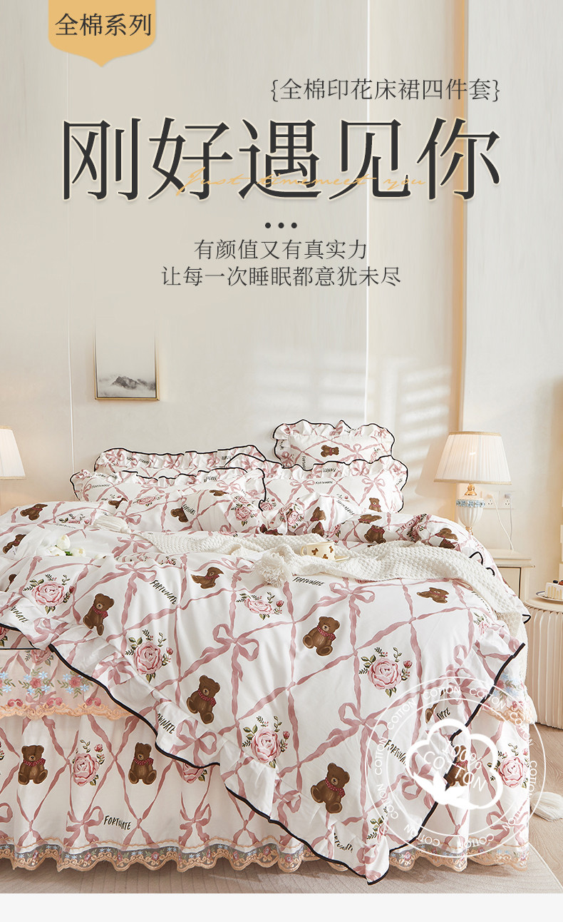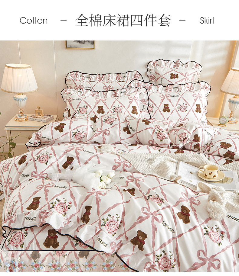 当前位置: 91家纺网 > 商品网购 > 床品套件 > 四件套 > 全棉普通四件套 > 宜凡 2023新款 全棉韩版床裙四件套 维也纳熊