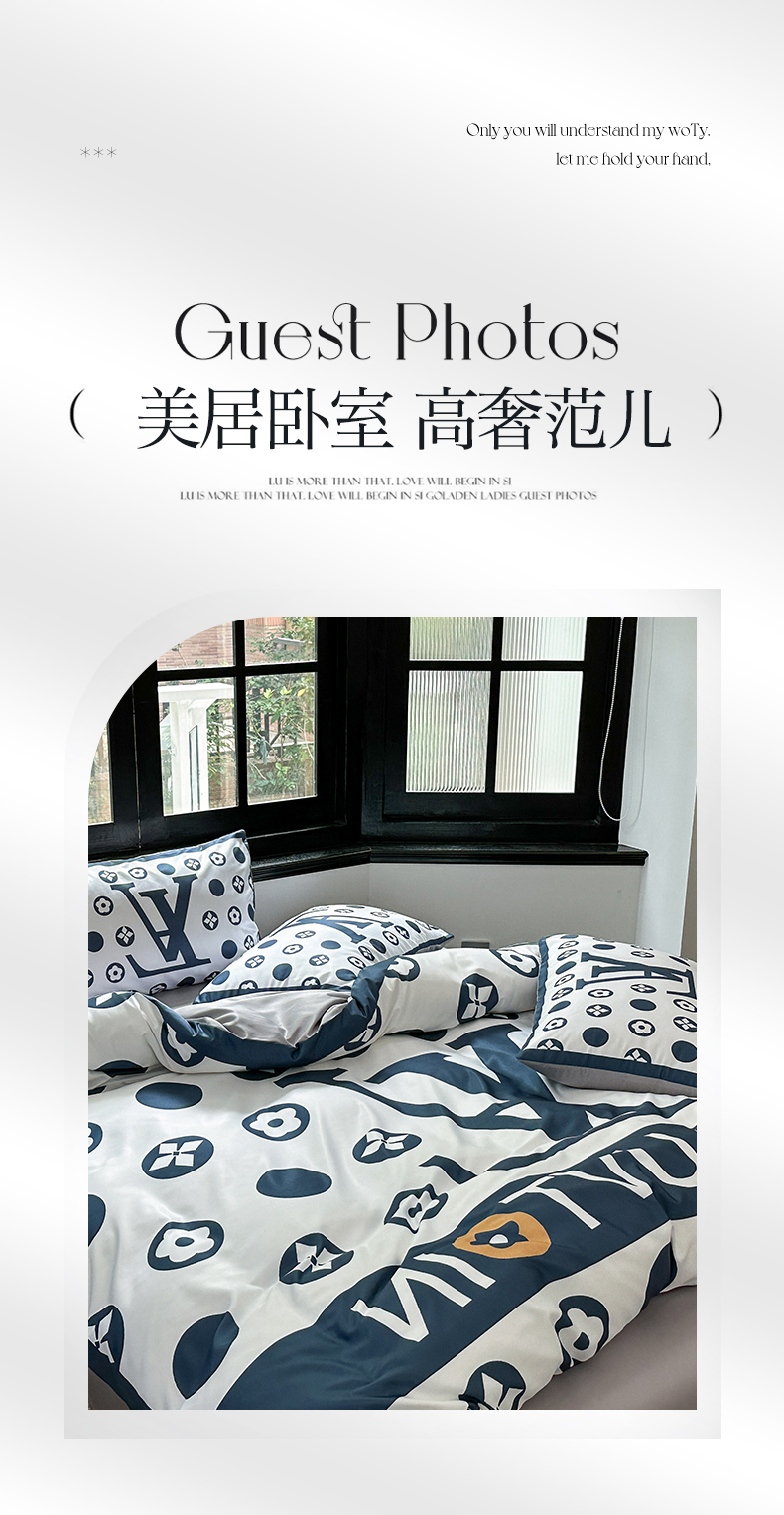 (总)色鬼布艺高端家居主号 2025新款轻奢亲肤纯棉数码印花网红热款四件套,豹纹香,白金V,白香花,大H,黑白迪,黑白V,灰迪,咖古,克莱因,慕斯小姐,山茶花,星空
