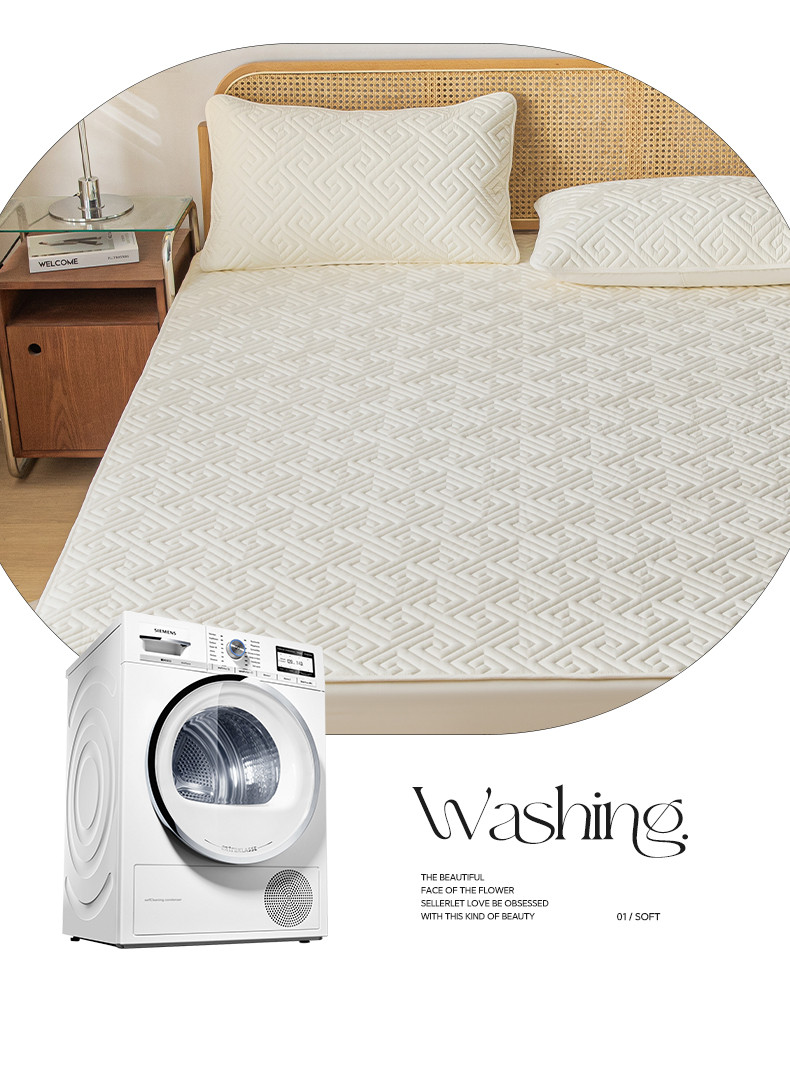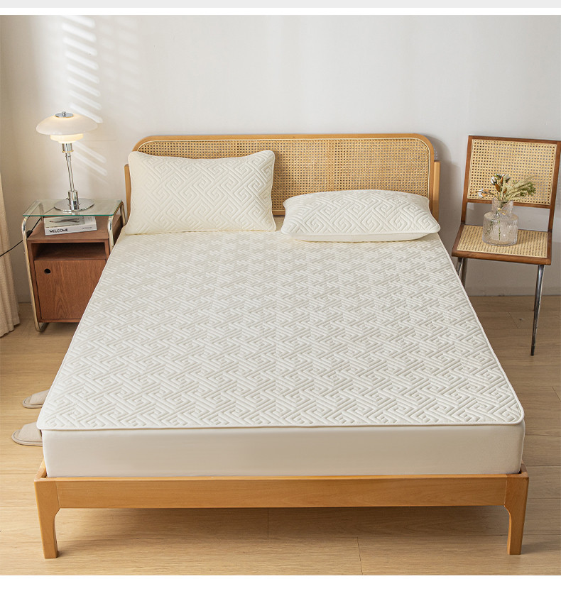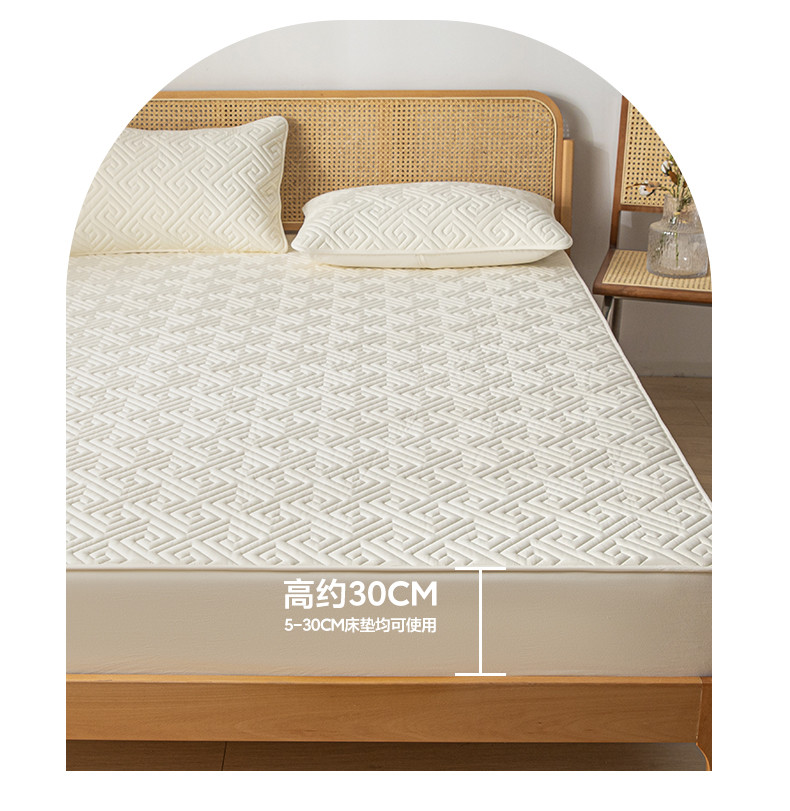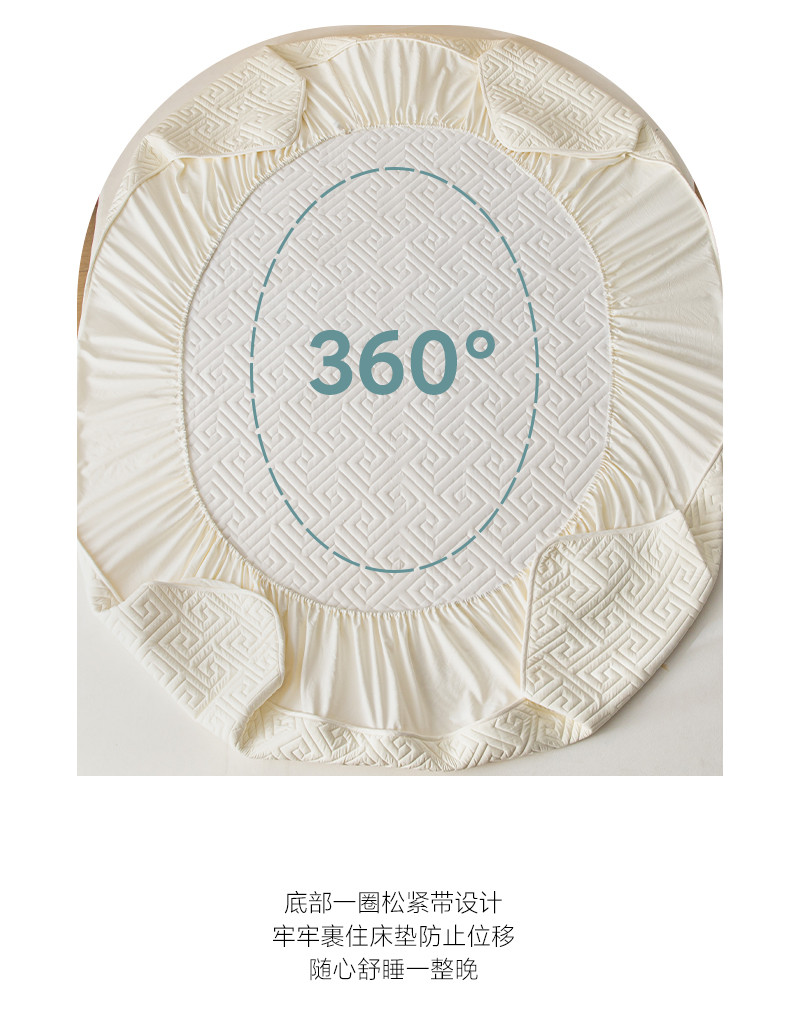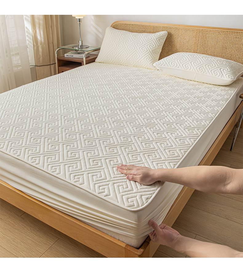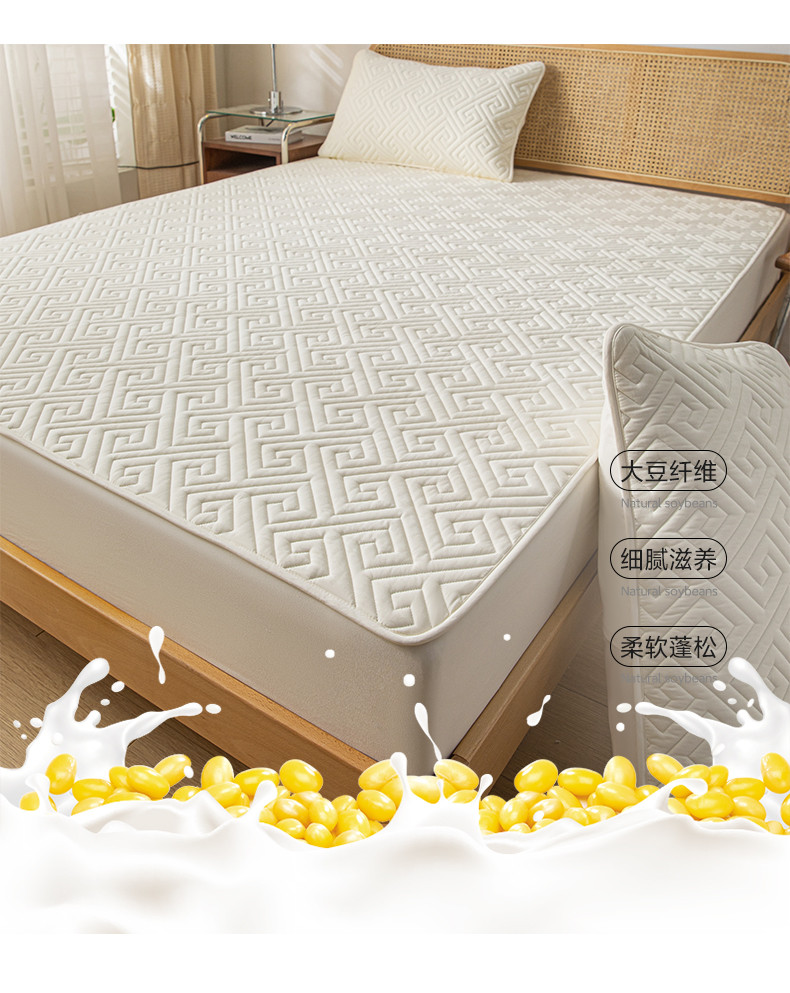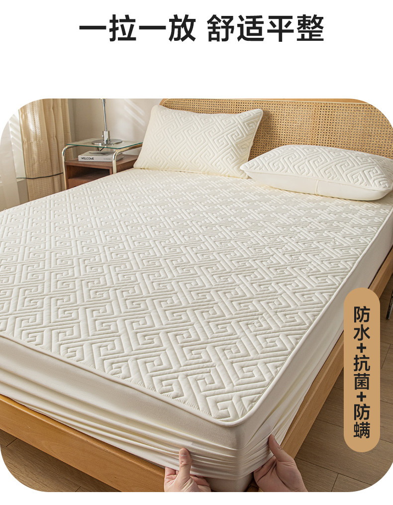 居眠2023新款防水大豆夹棉床笠 回行格-奶白