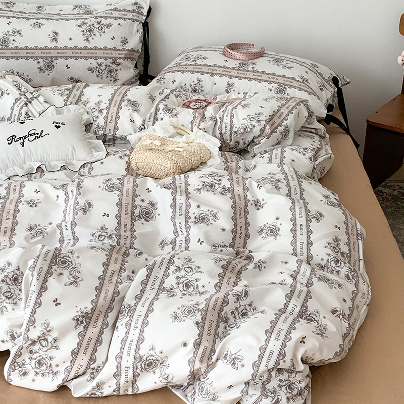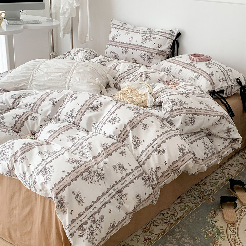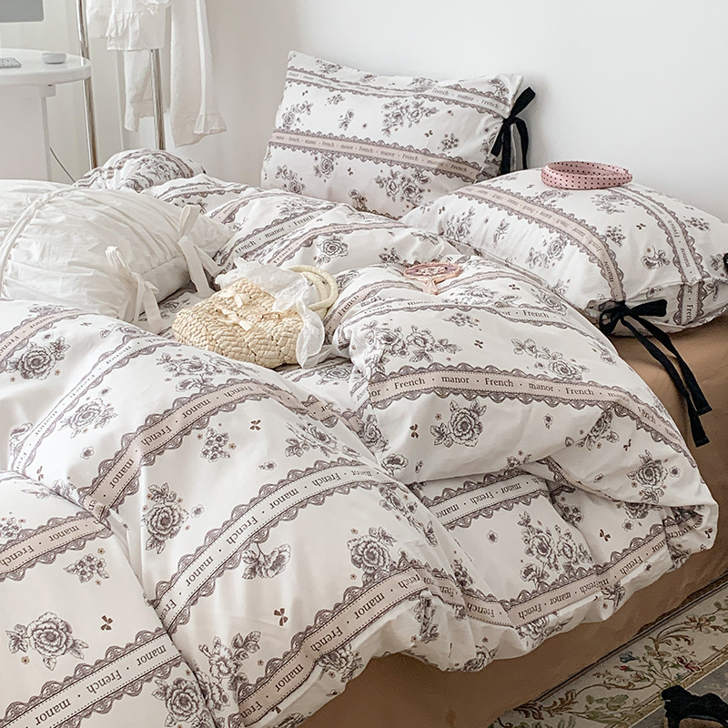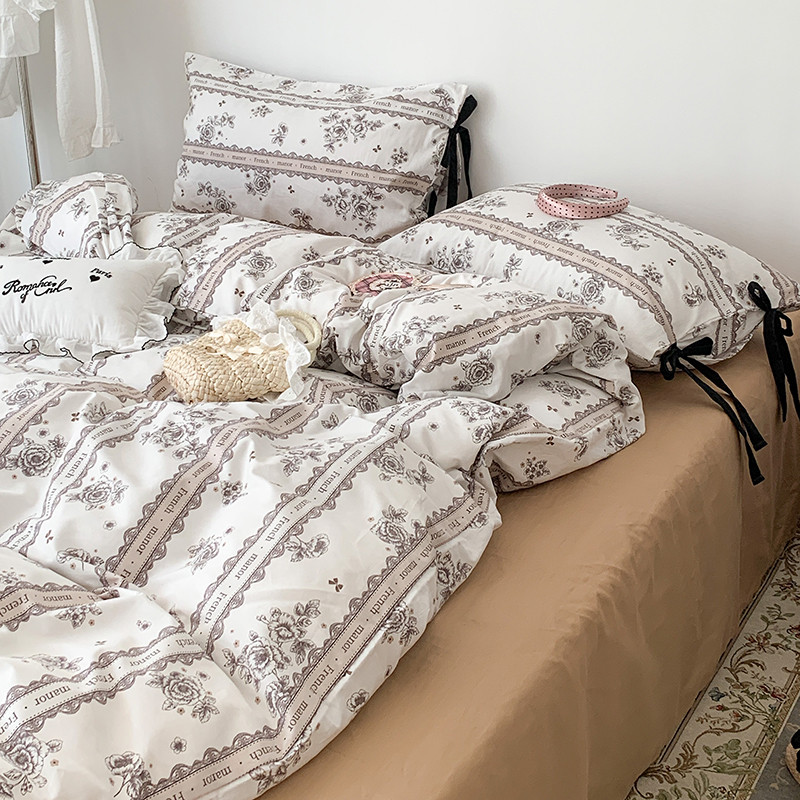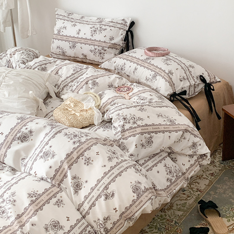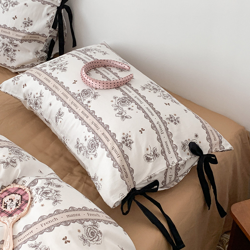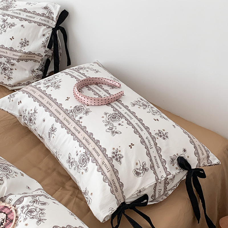 商品名称:昔可家纺 2023新款全棉蝴蝶结枕套普通款四件套 水墨山茶