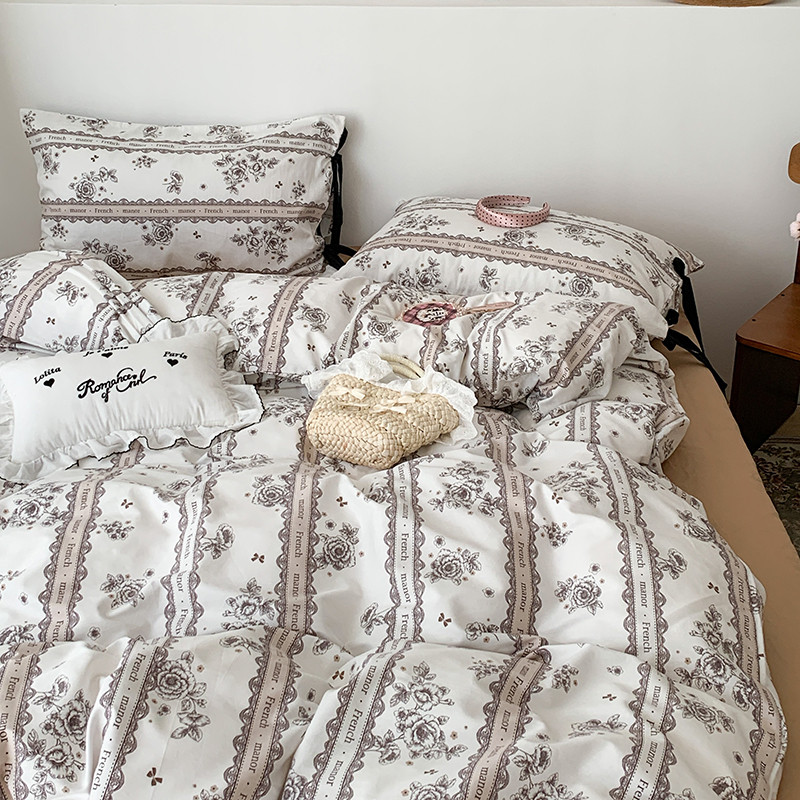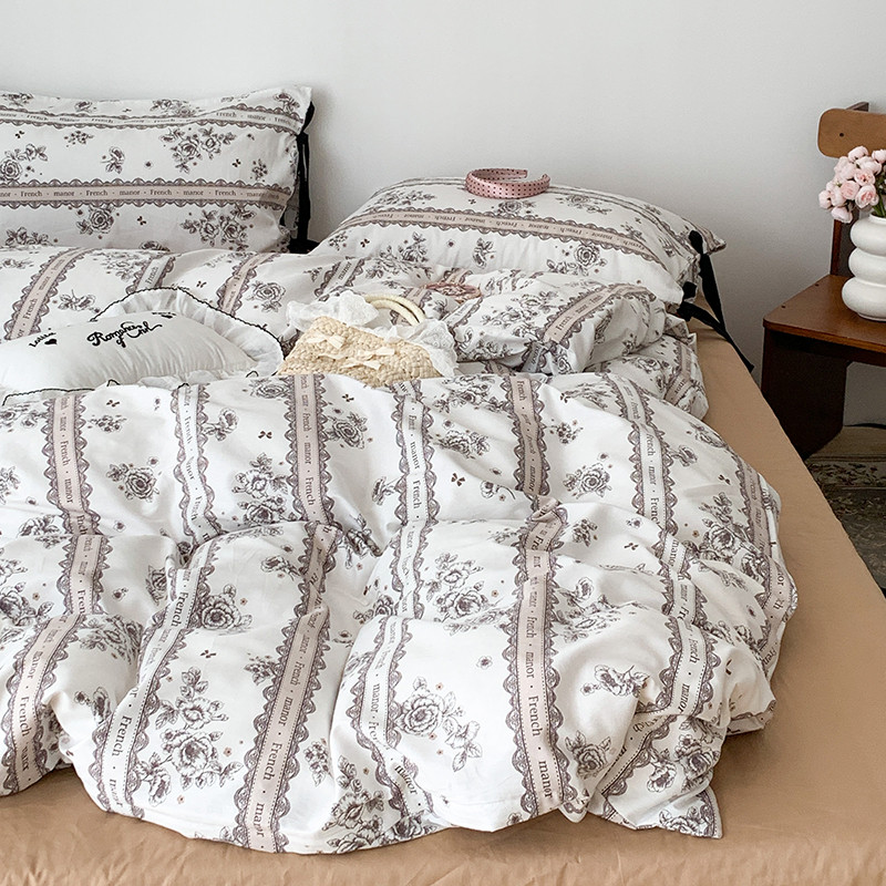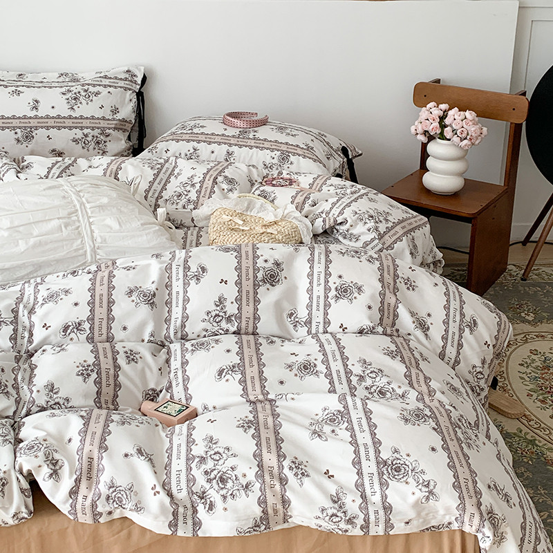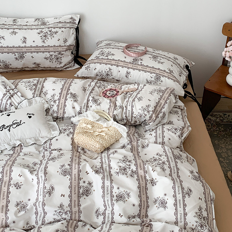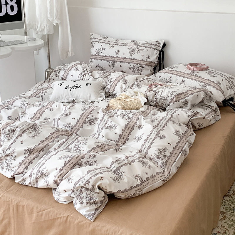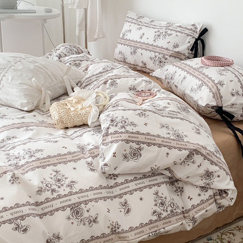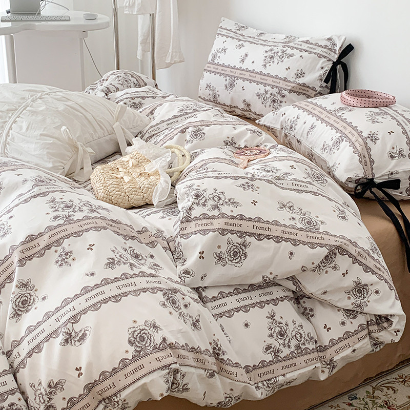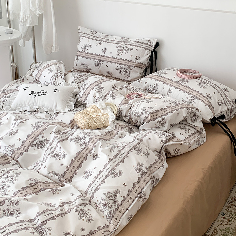 商品名称:昔可家纺 2023新款全棉蝴蝶结枕套普通款四件套 水墨山茶