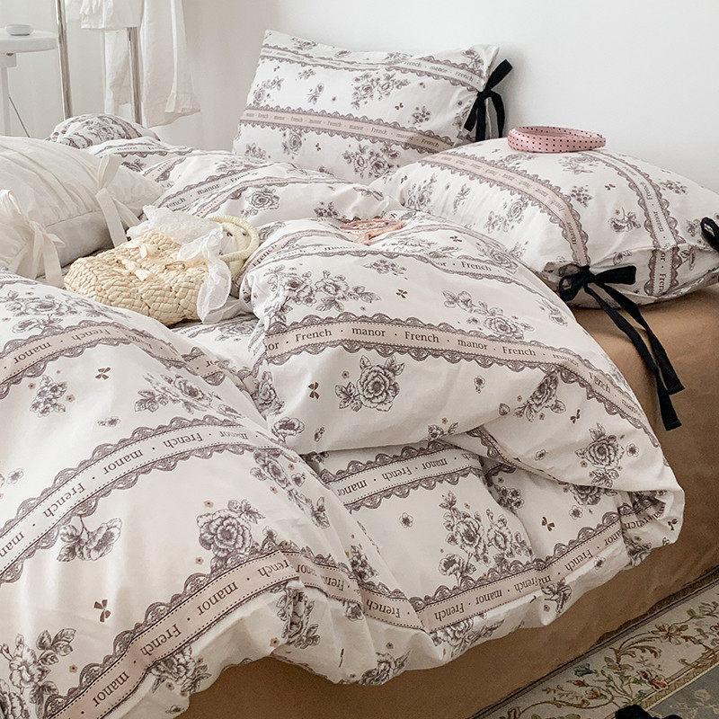 昔可家纺 2023新款全棉蝴蝶结枕套普通款四件套 水墨山茶