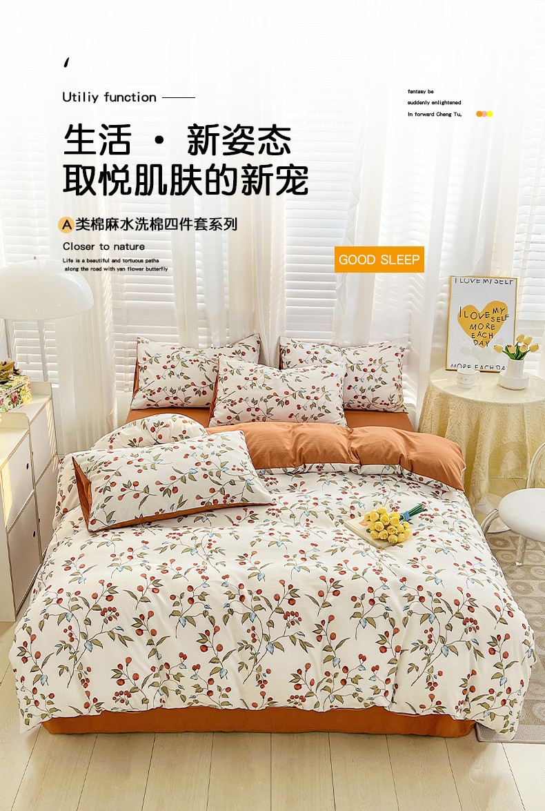 当前位置: 91家纺网 > 商品网购 > 床品套件 > 四件套 > 水洗棉四件套 > 直播爆款法式风双层纱棉麻水洗棉四件套 枇杷树