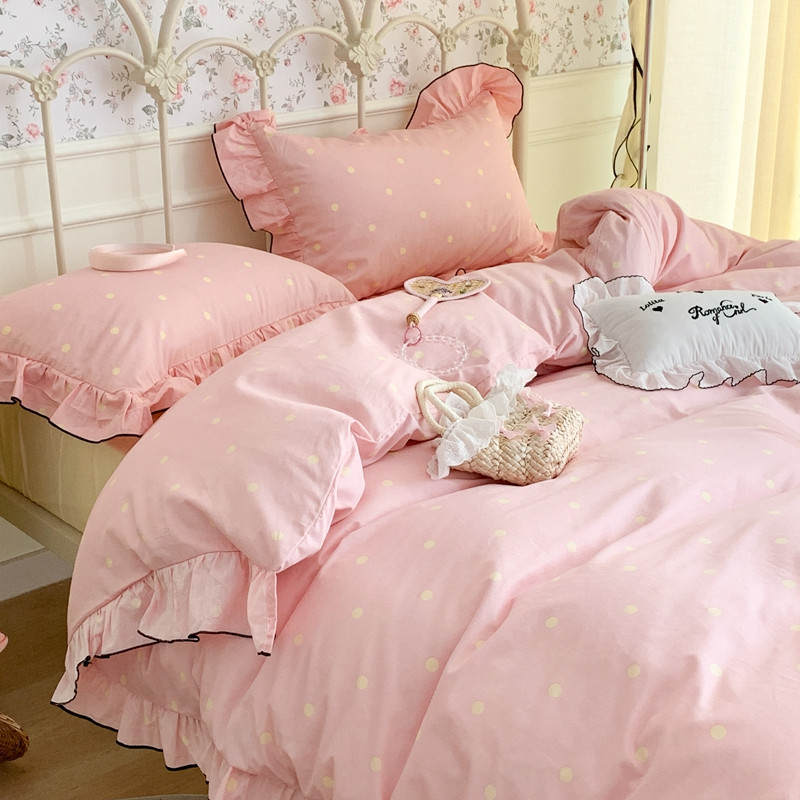 昔可 2023新款复古波点花边系列四件套 粉玉波点