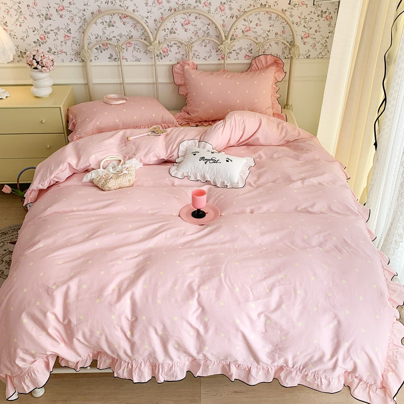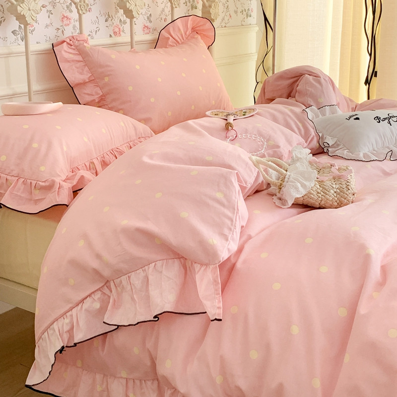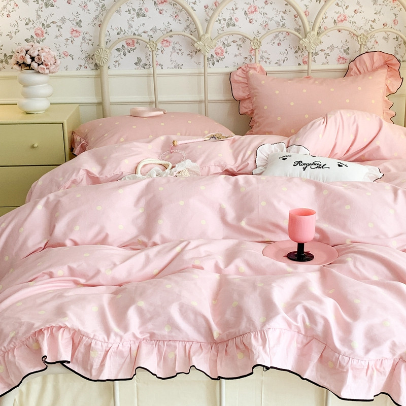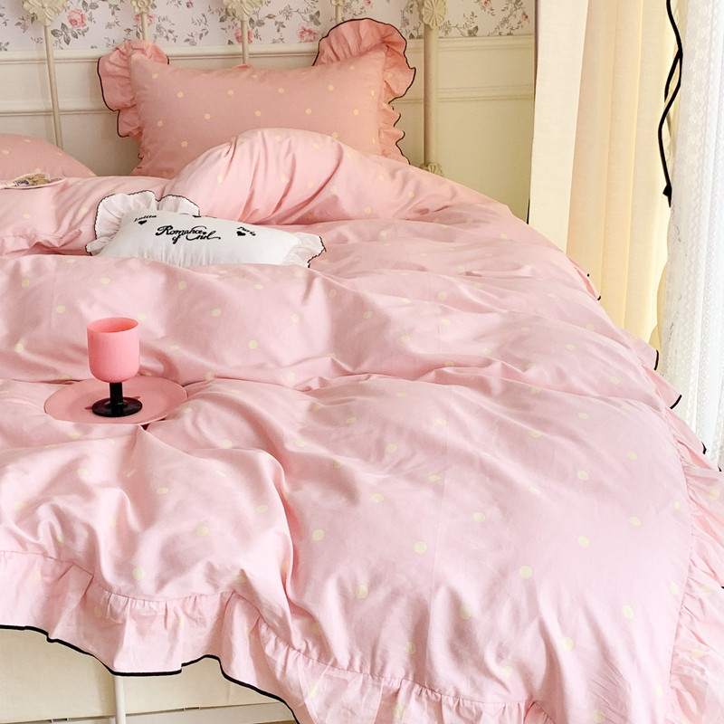 商品名称:昔可 2023新款复古波点花边系列四件套 粉玉波点