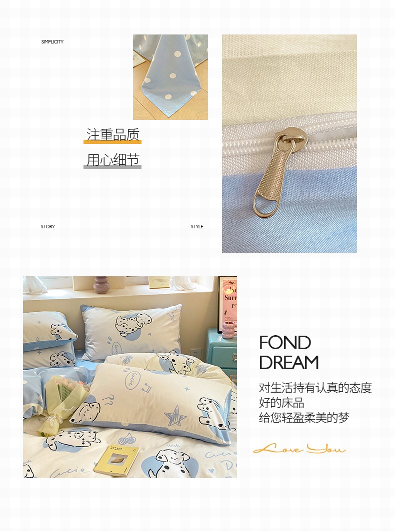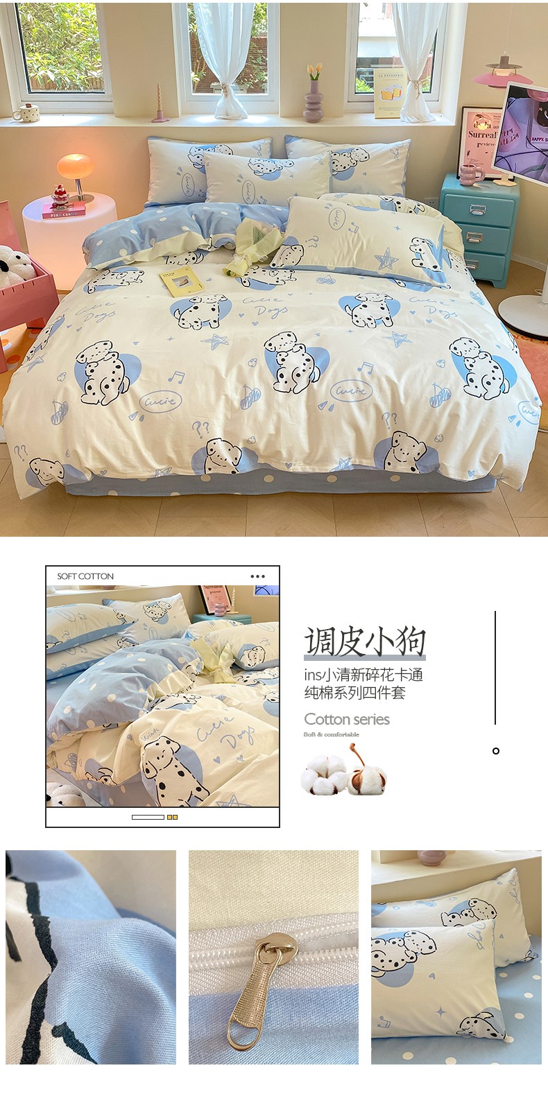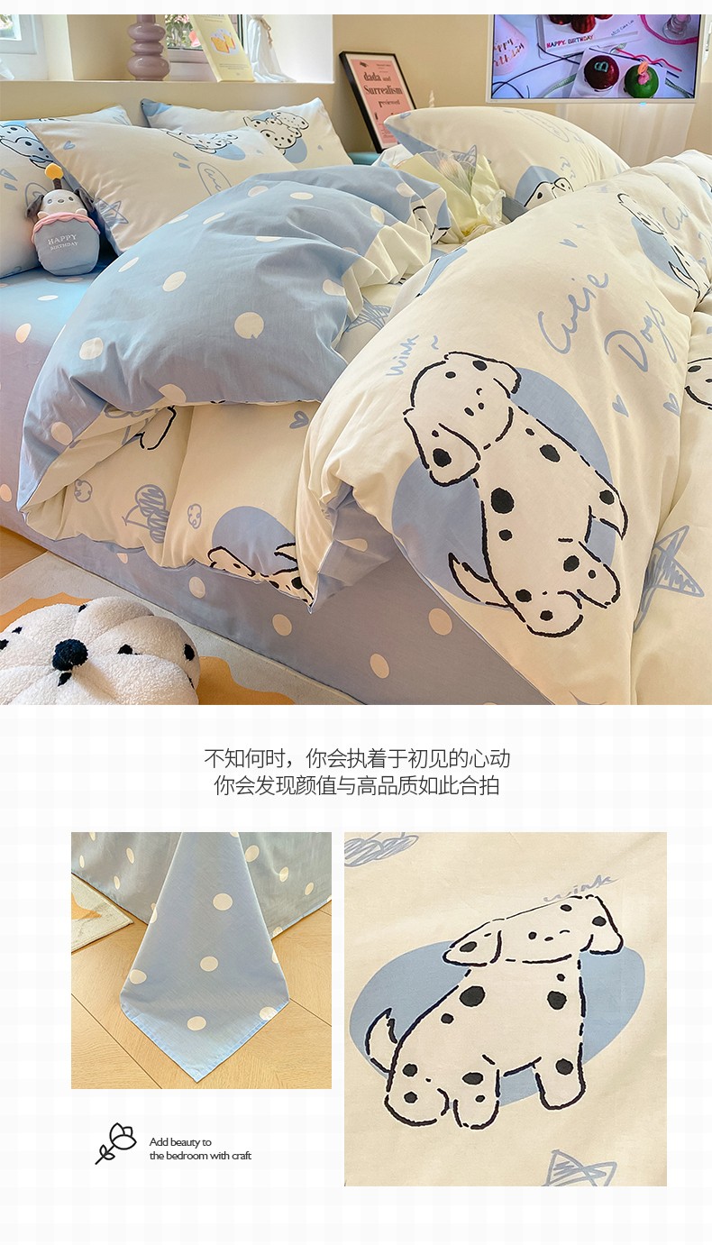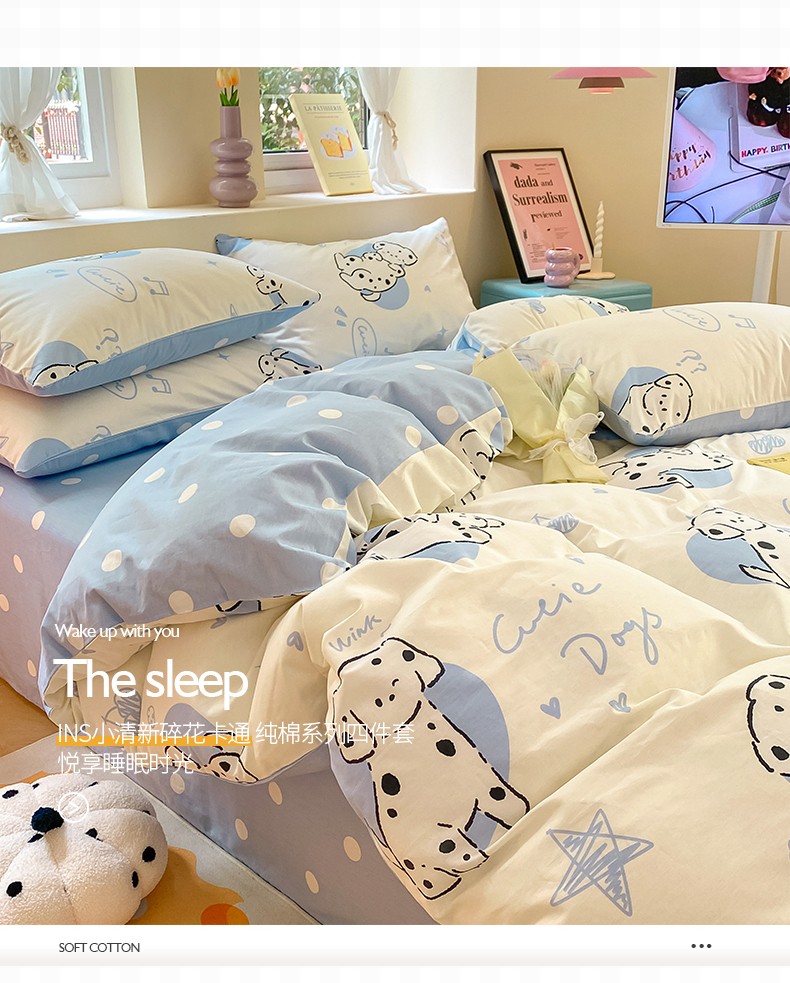 商品名称:桃子 2023新款ins小清新碎花卡通纯棉系列四件套 棉-调皮小狗